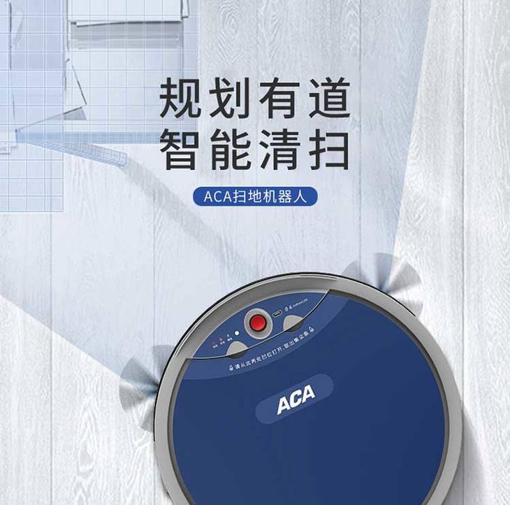 【授权商品】ACA/北美电器ALY-15SD00D扫地机器人蓝色 全自动扫地500ML集尘吸尘JPY带授权招加盟代理