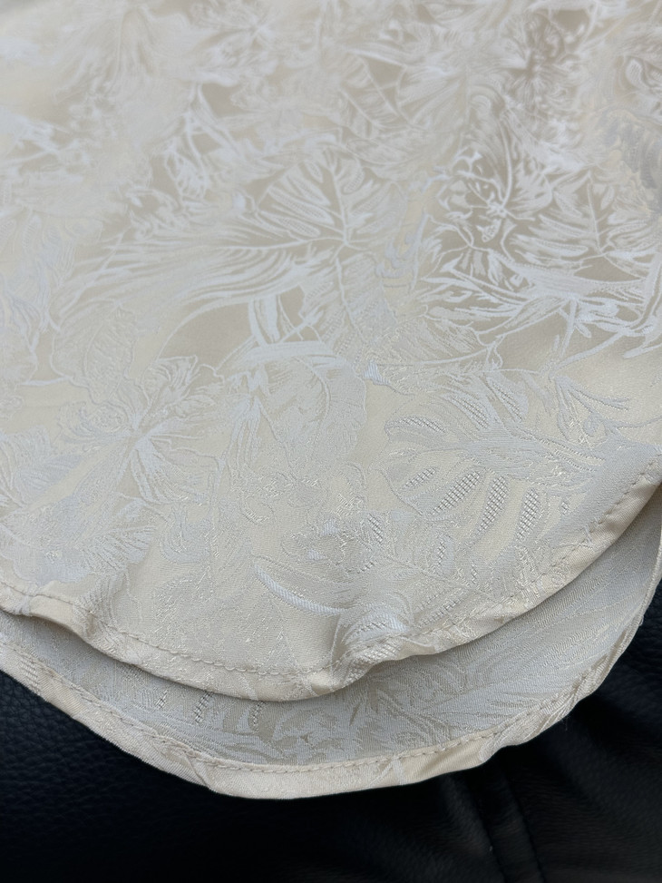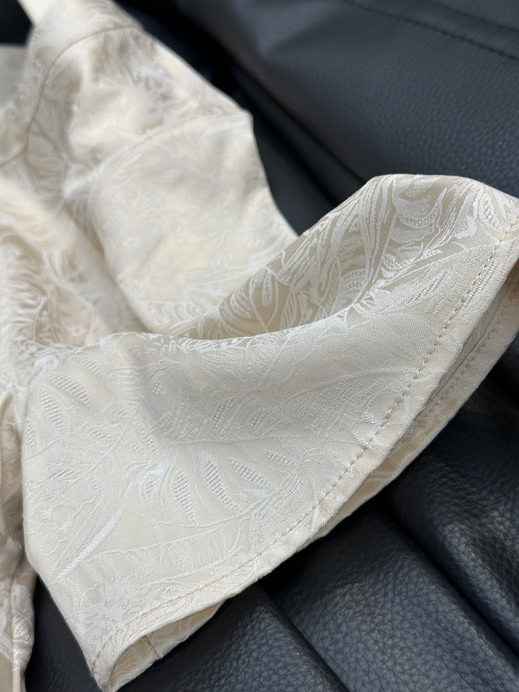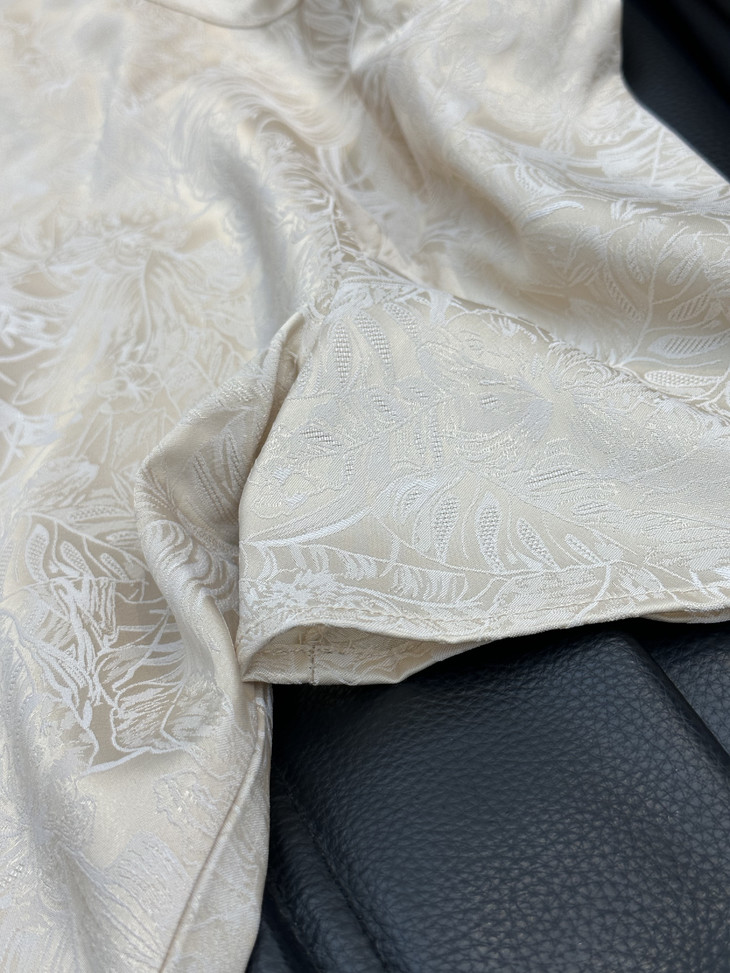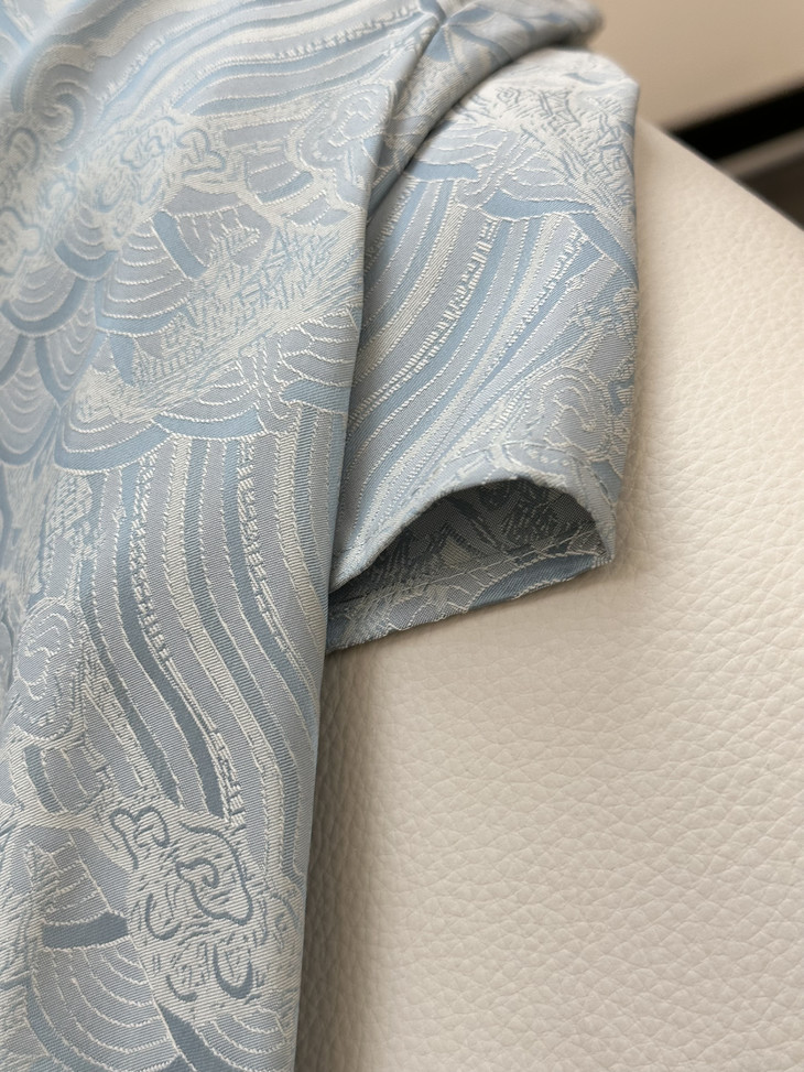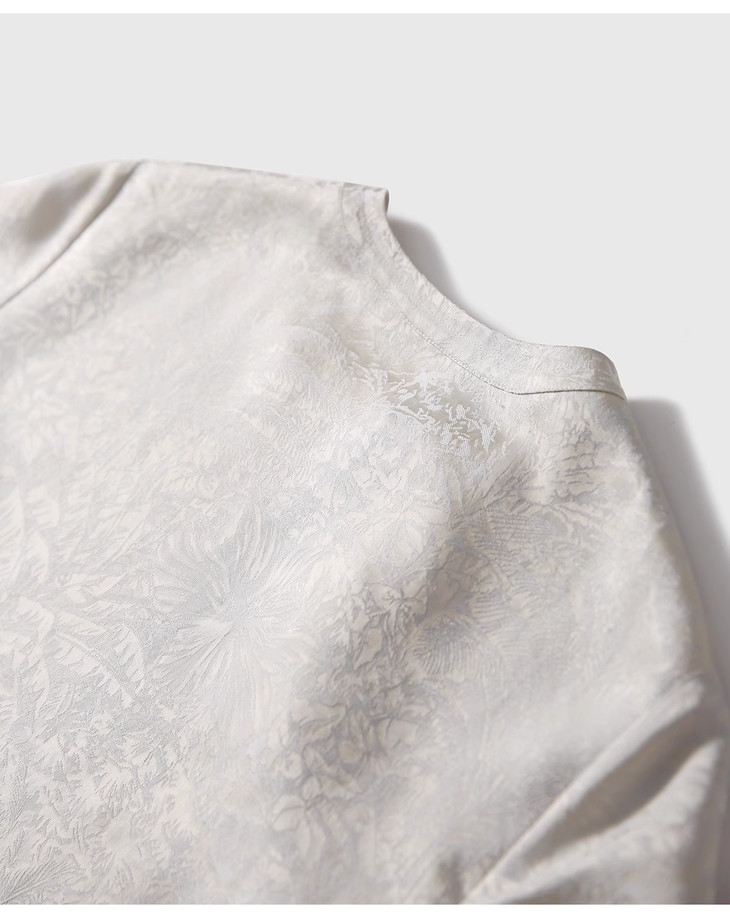 宽松版型包容各种身材, 不用纠结身材短板, 配牛仔裤是松弛感日常, 搭亚麻裤秒变中式文艺, 早上赶时间抓起来就穿, 省事儿又有品味❗️ 精致暗纹提花, 不张扬却自带高级感, 远看是简约纯色, 近看藏着细腻东方美学, 行走间若隐若现,为穿搭增添“细节杀”, 彰显独特品味❗️