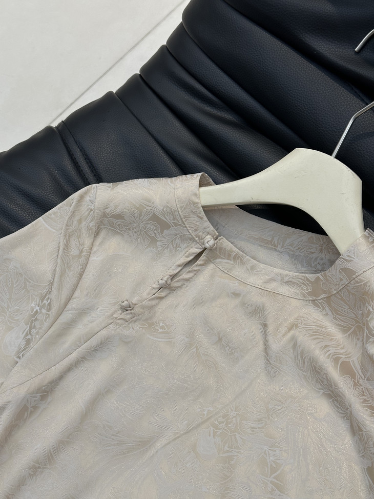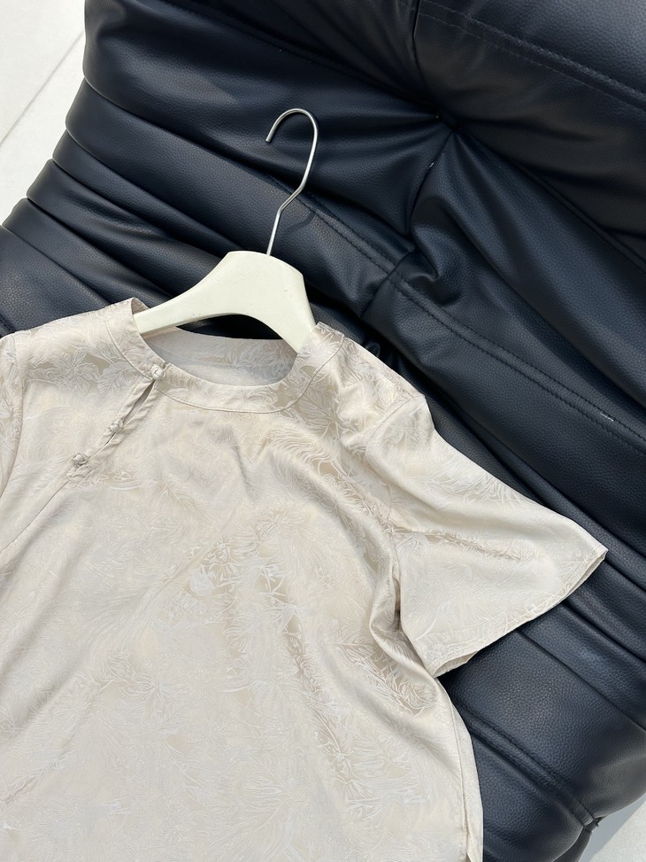高级感的尽头是Clean fit❗️ 盛夏穿搭有这款就够了 东方颂雅提花斜襟盘扣宽松短袖 3D立体剪裁从配色到面料 全部是经过设计师精挑细选❗️ ✅Dior同款刺绣面料舒适,做工精细 质地非常舒适, 打造透气舒适的穿着体验 ✅祥瑞的提花图案+斜襟盘扣 精致又典雅入眼满满是中式韵味 无处不彰显东方之美,尤其适合节日氛围穿着