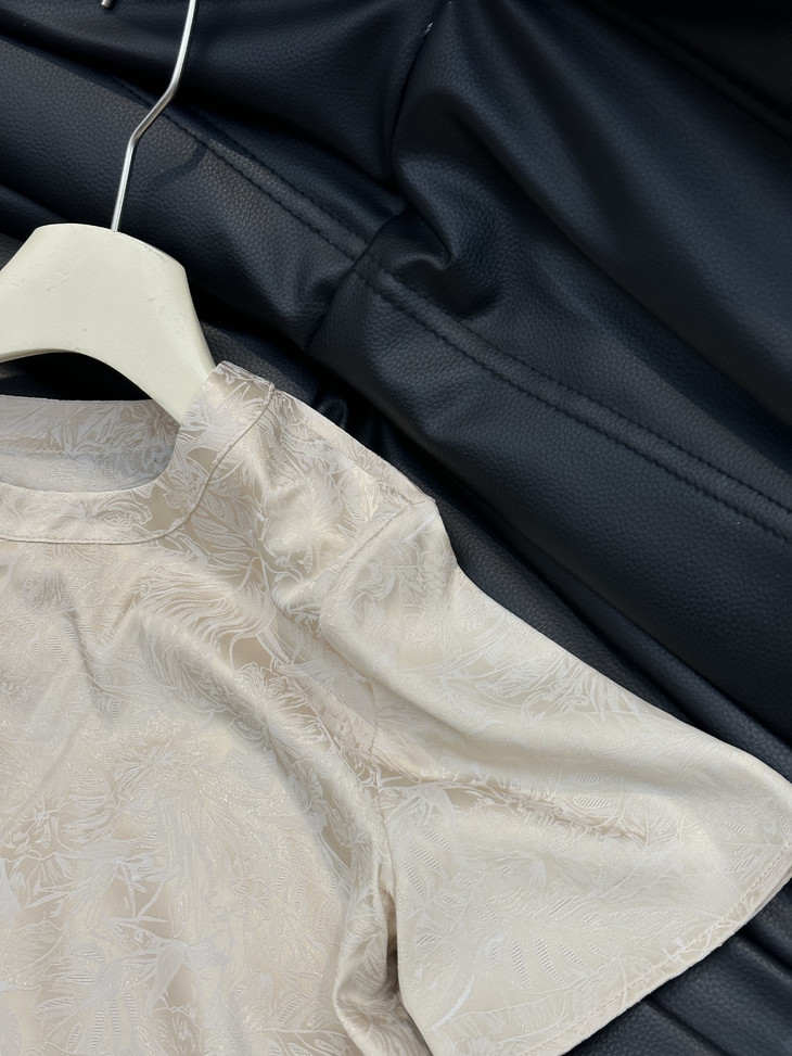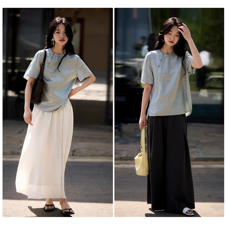 夏日法式轻奢新品❗️贵感上分❗️Dior同款面料🔥高级彰显品味❗️【新中式提花斜襟盘扣宽松短袖】体感绝绝子!不挑人的好穿好搭配👍