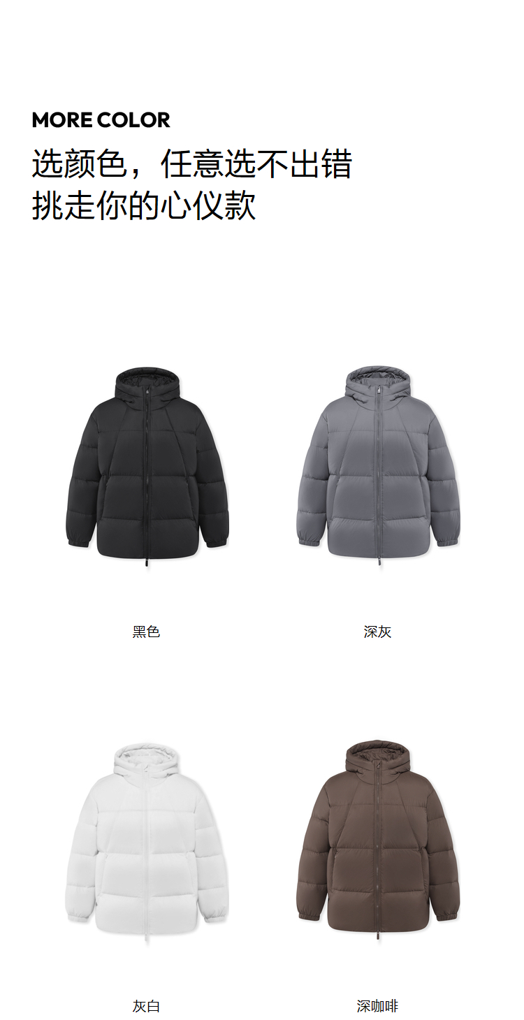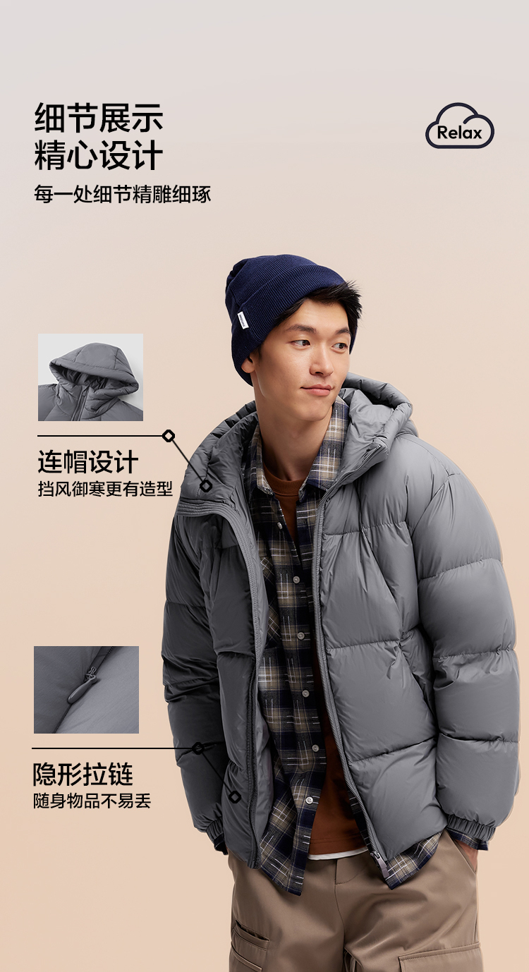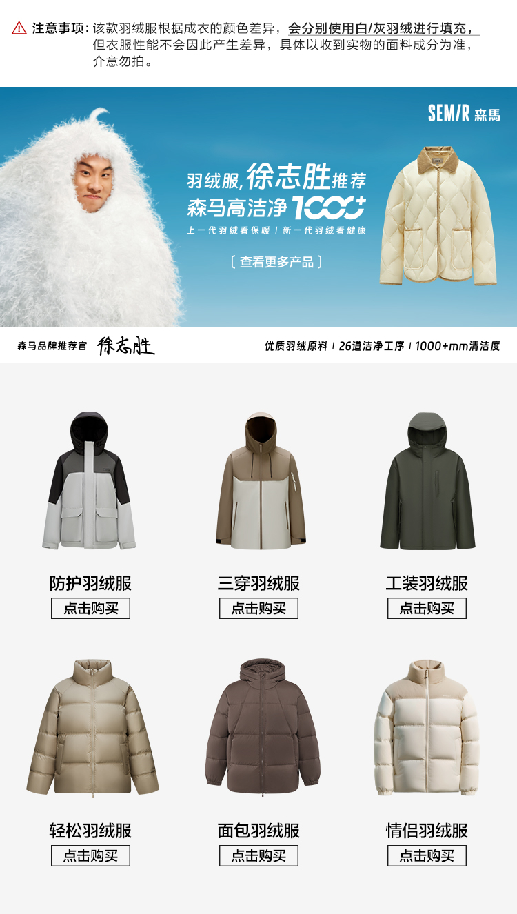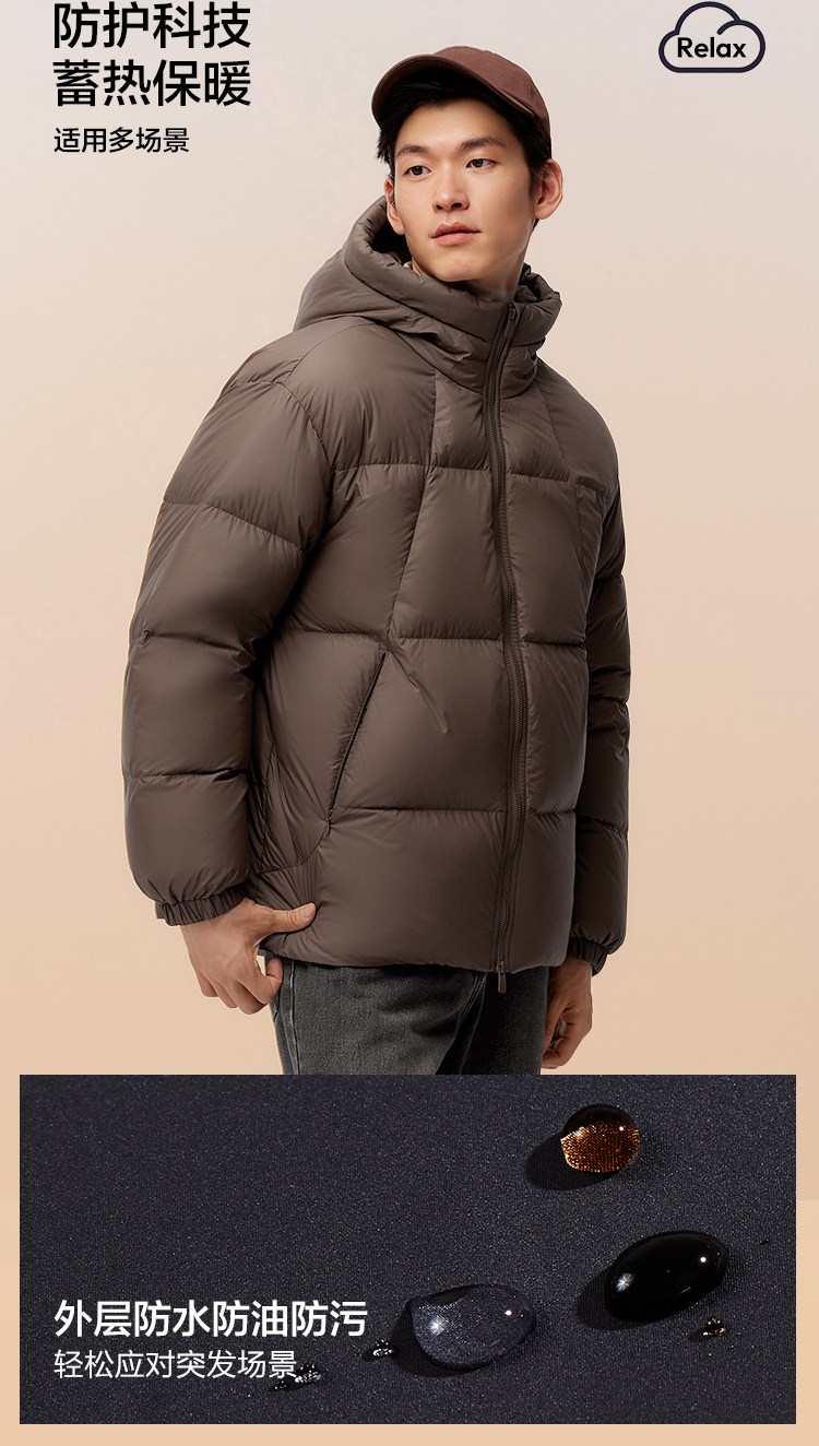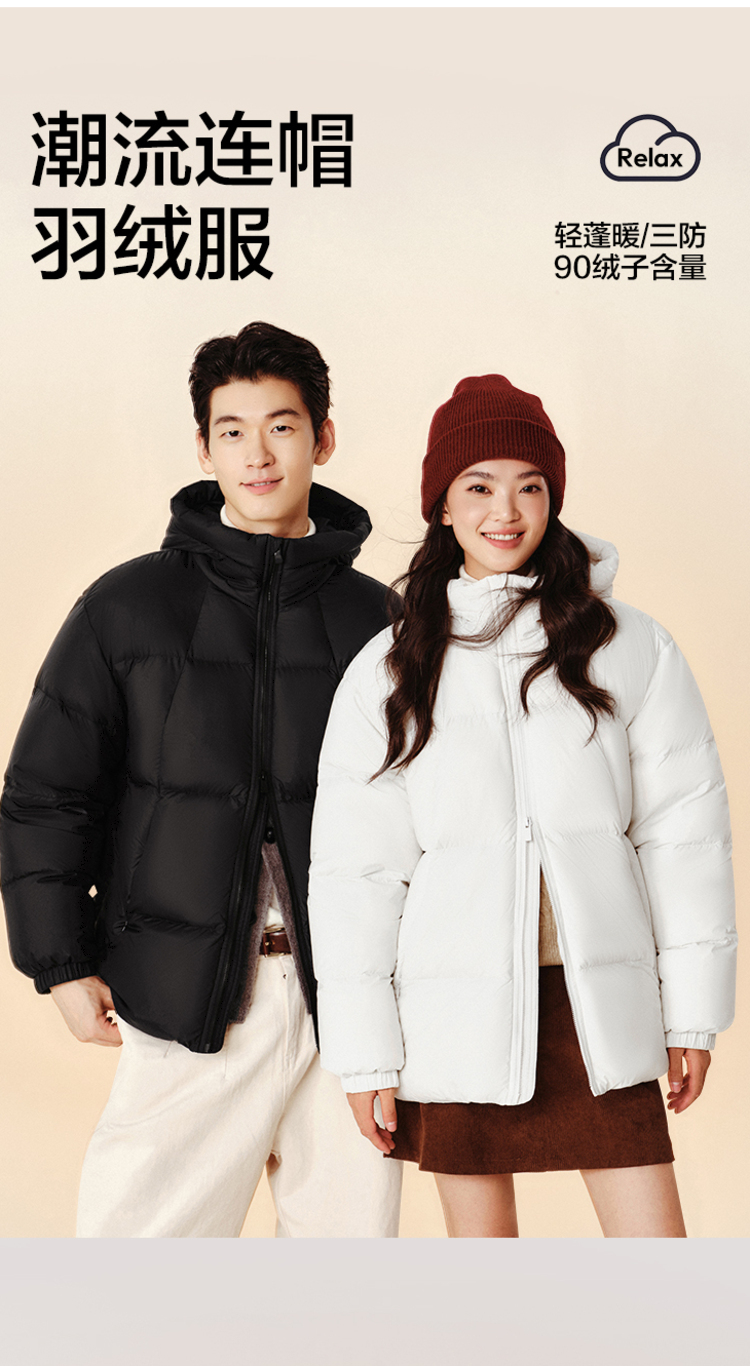 轻松羽绒|森马羽绒服男冬新款发热三防情侣连帽外套纯色百搭