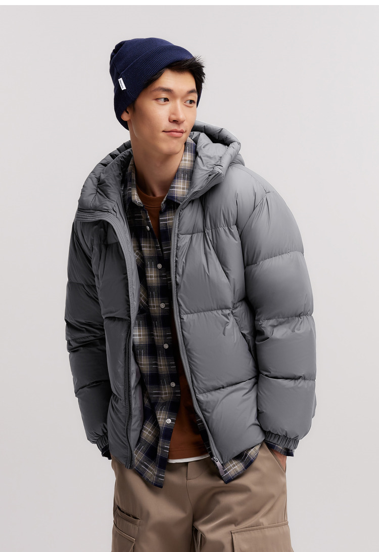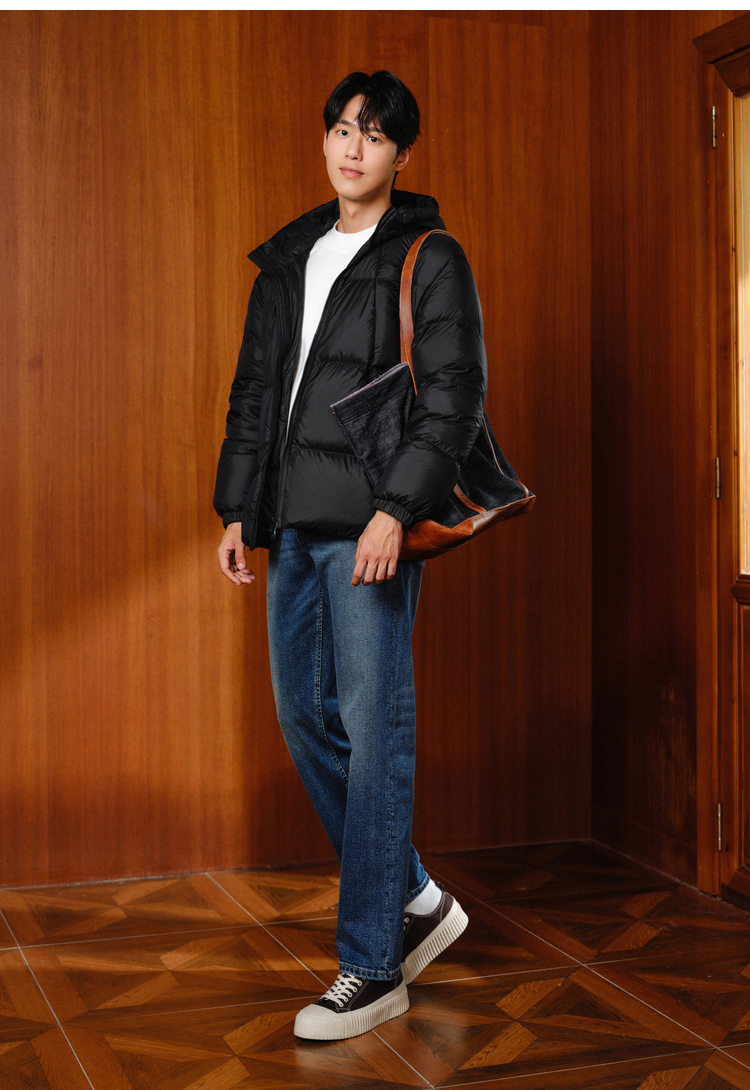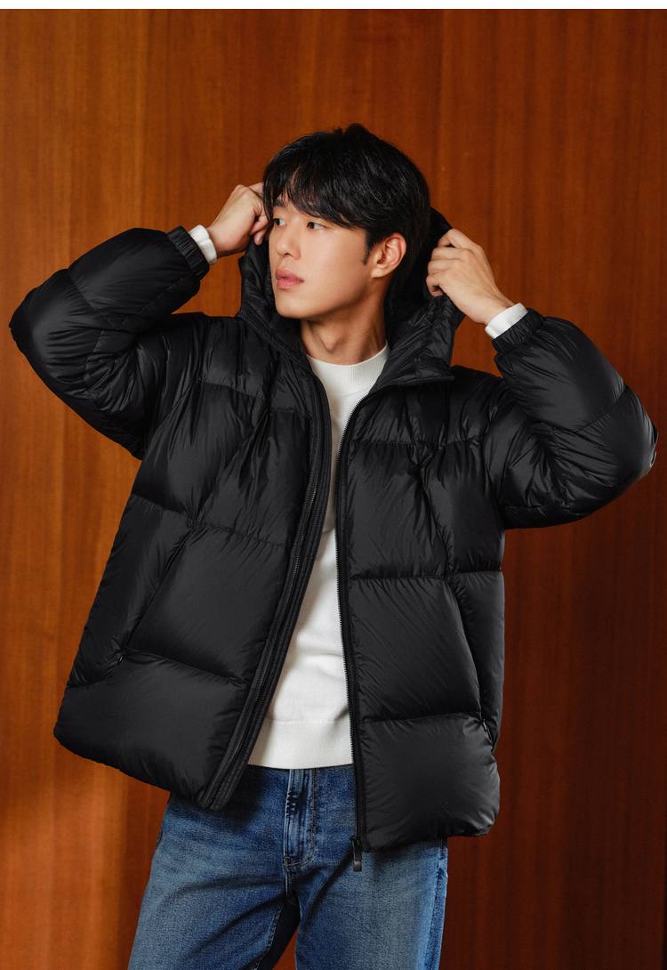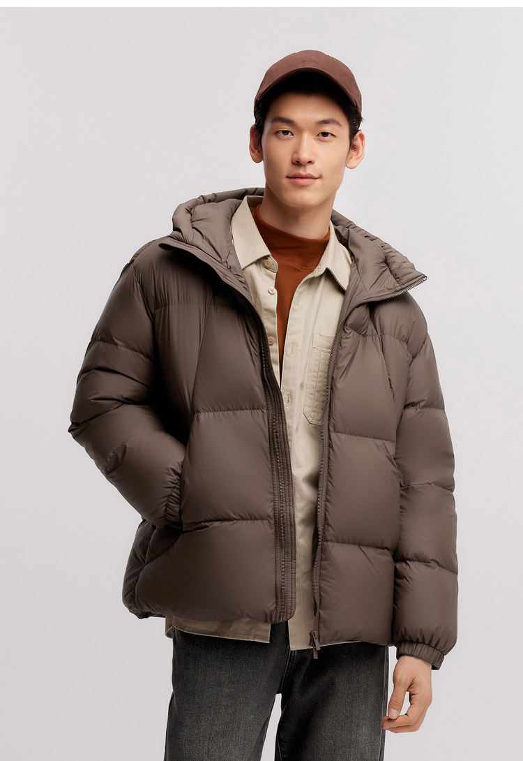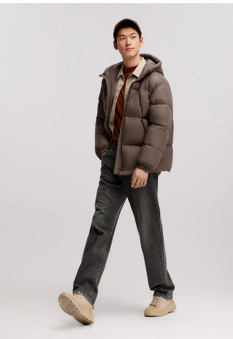 轻松羽绒|森马羽绒服男冬新款发热三防情侣连帽外套纯色百搭