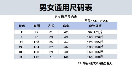 3XL(150-165斤)4XL(165-180斤)