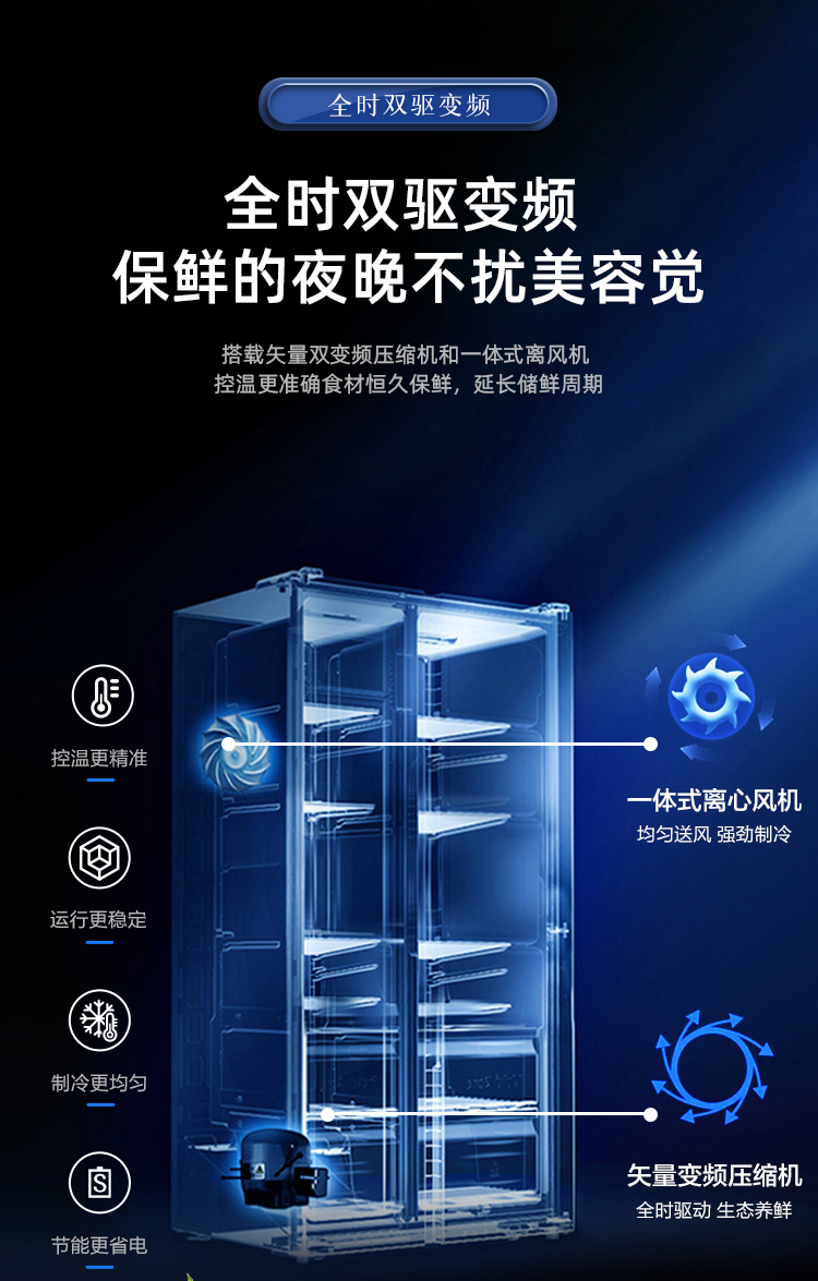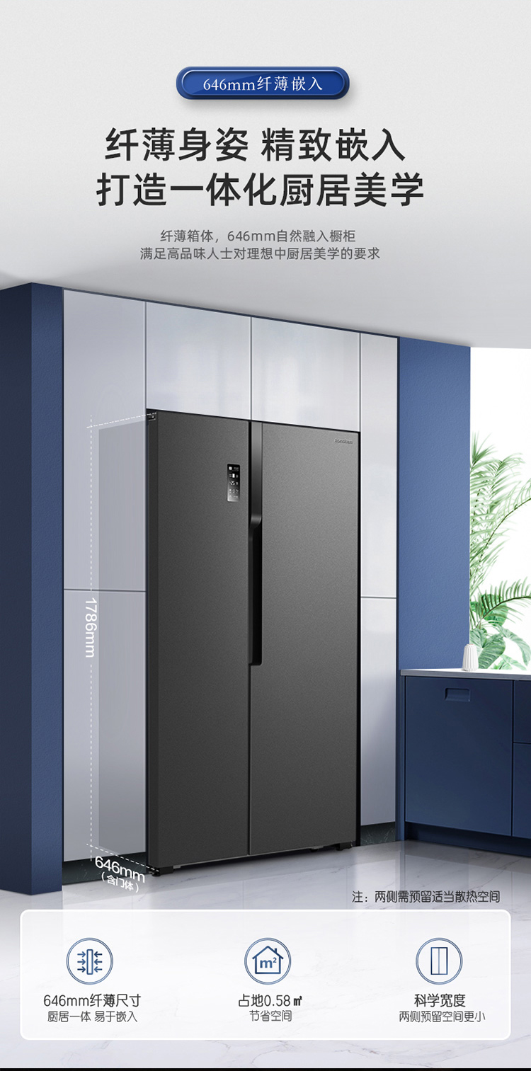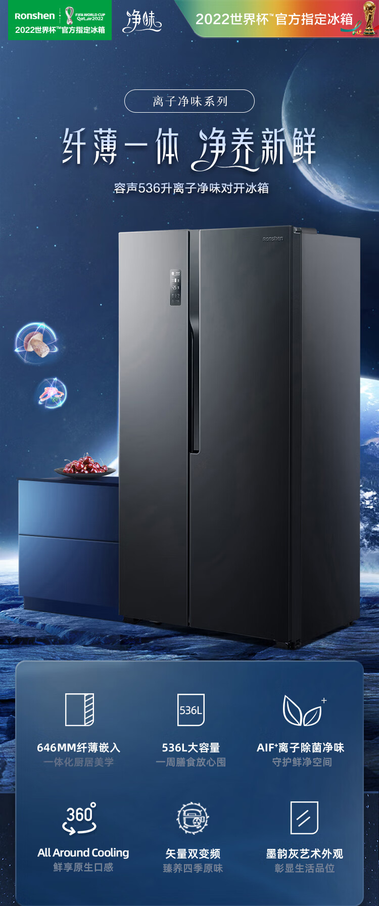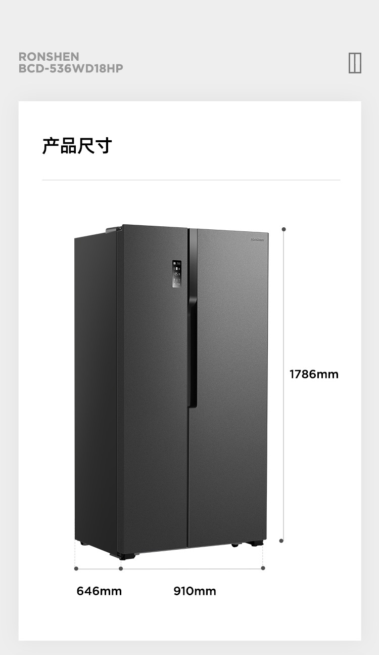 容声(Ronshen)536升 双变频 双开门 家用风冷无霜 大容量 离子净味BCD-536WD18HP超薄嵌入
