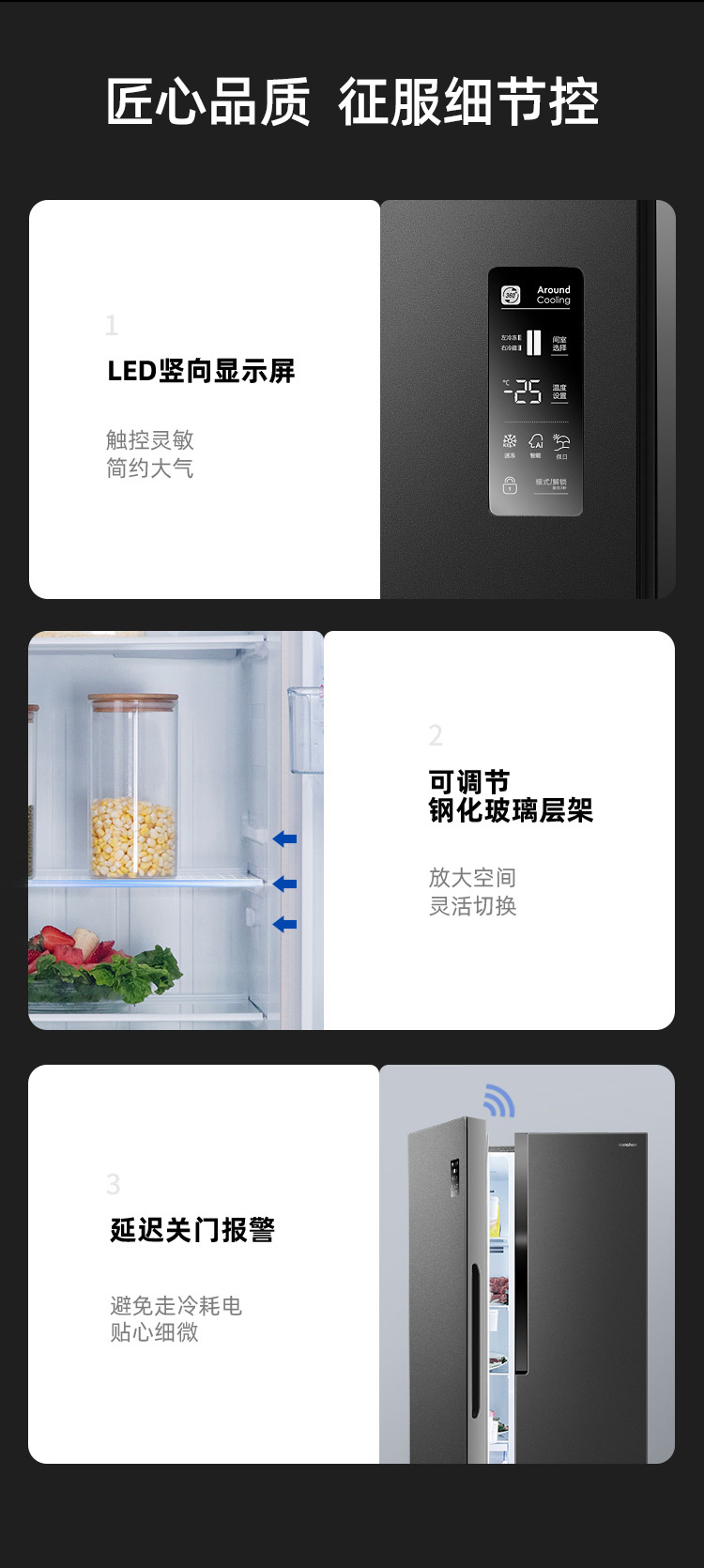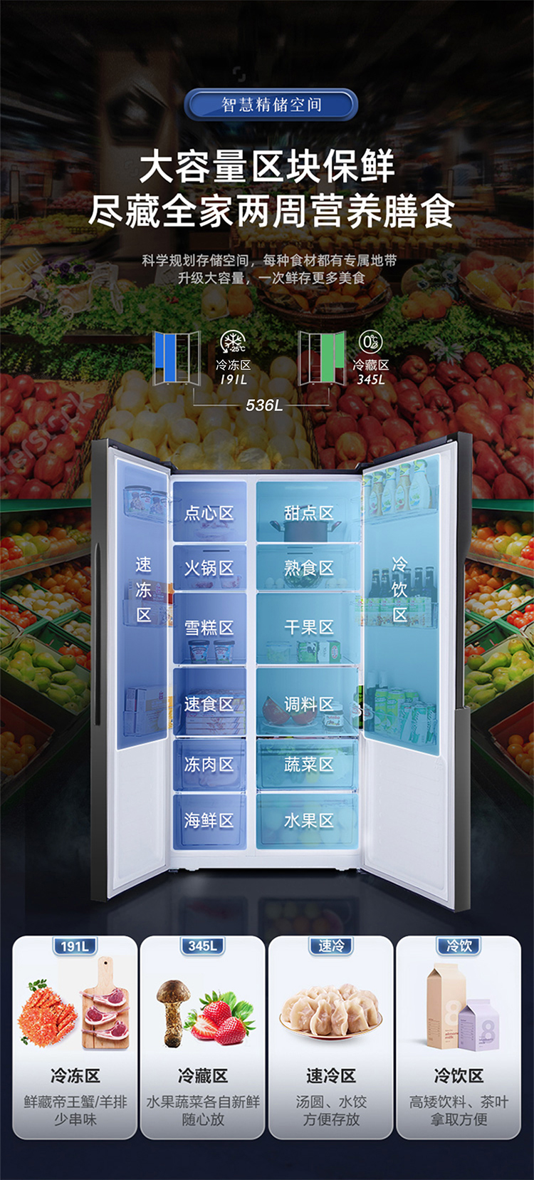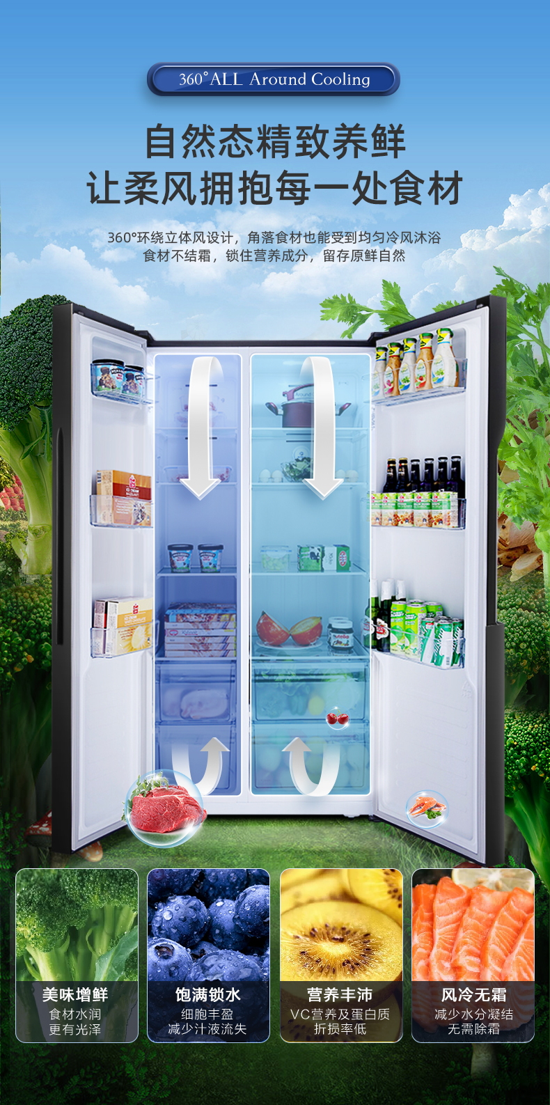 容声(Ronshen)536升 双变频 双开门 家用风冷无霜 大容量 离子净味BCD-536WD18HP超薄嵌入