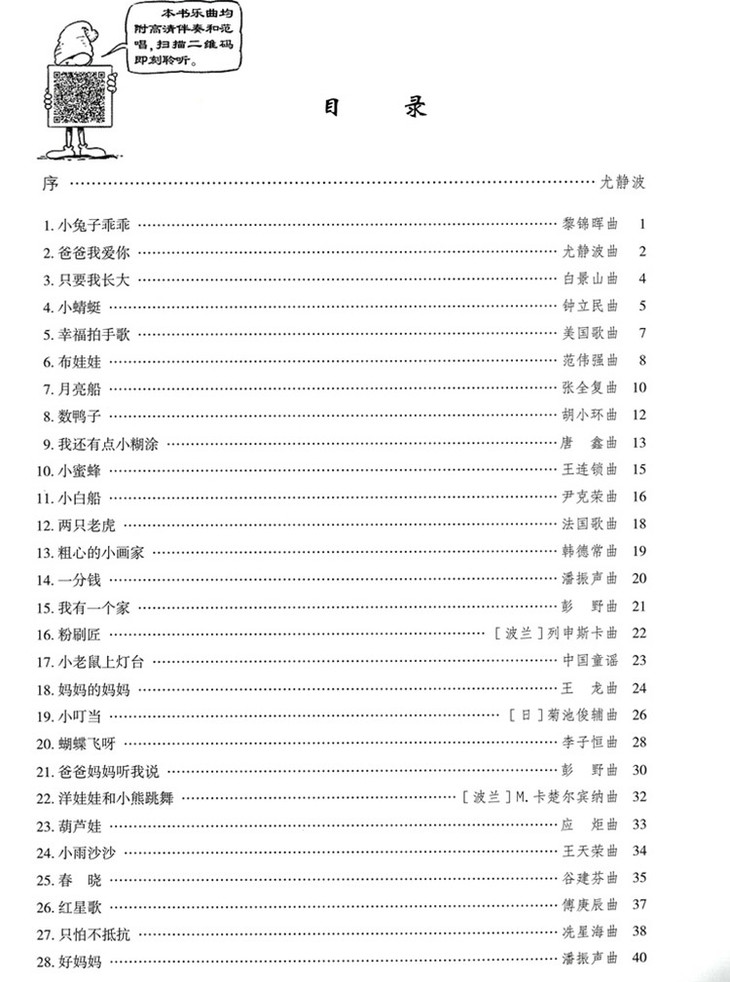 本书是一套适于乐器初学者使用的简易曲集,包含二胡、古筝、琵琶、扬琴、竹笛、钢琴、贝司、吉他、尤克里里、萨克斯管、架子鼓共11册,各分册曲目以孩子们熟悉的约60首儿童歌曲编配而成,以演奏技巧的由简到难排序。各分册力争选用同一批曲目,使各分册既相对独立,又彼此关联。这套书大的亮点在于,每首曲目均配有版本的音响:一个是供演出使用的高清伴奏版;另一个是供练习使用的弱声范唱版,隐隐的人声在起到提示歌曲旋律作用的同时,又不会干扰跟随伴奏练习。