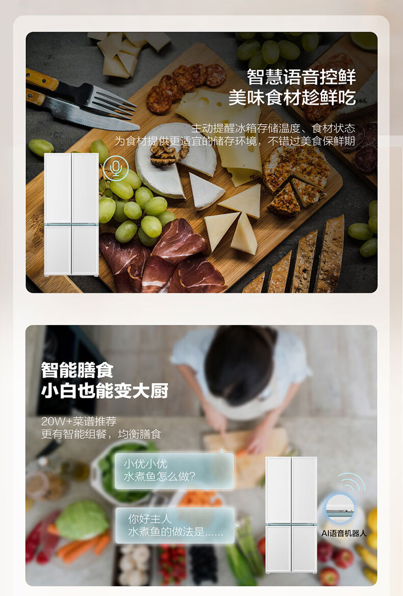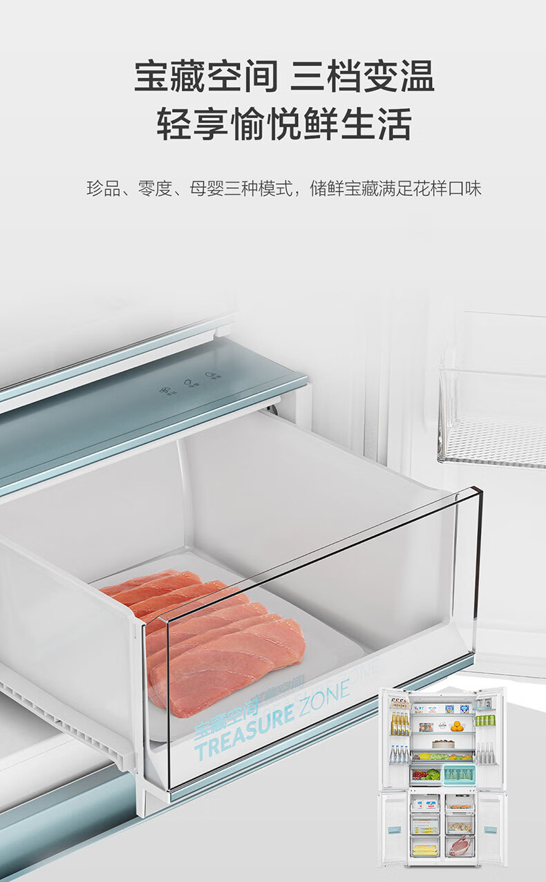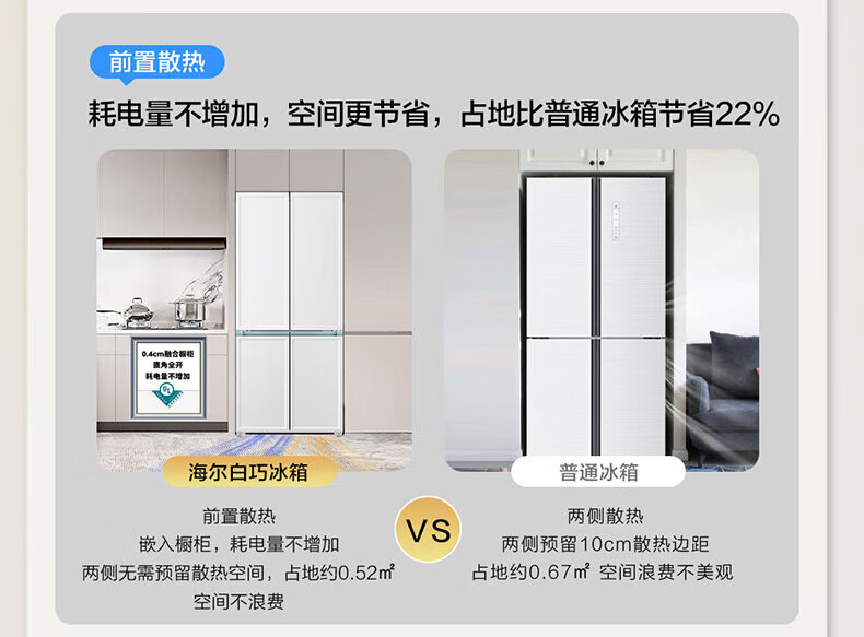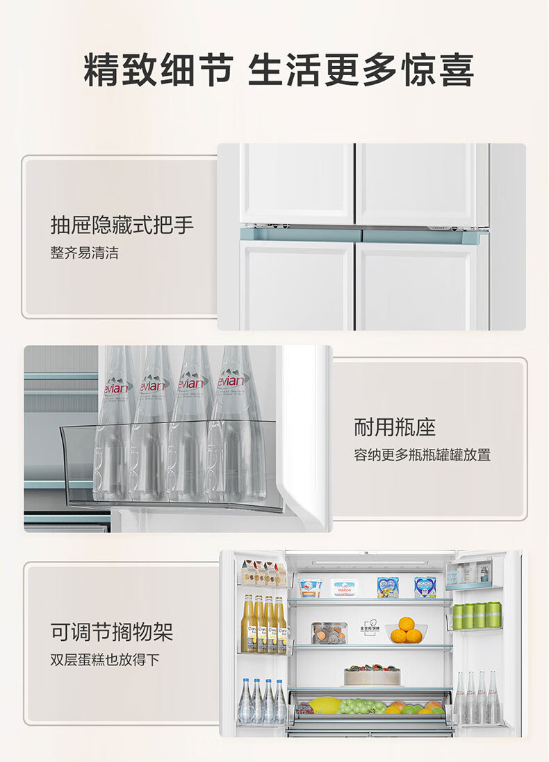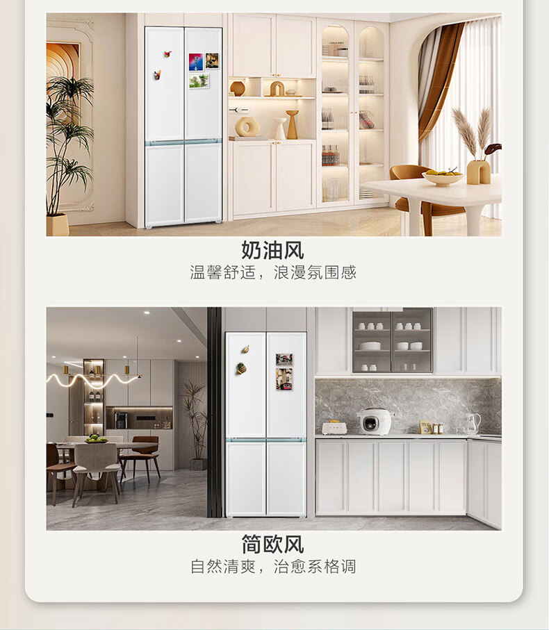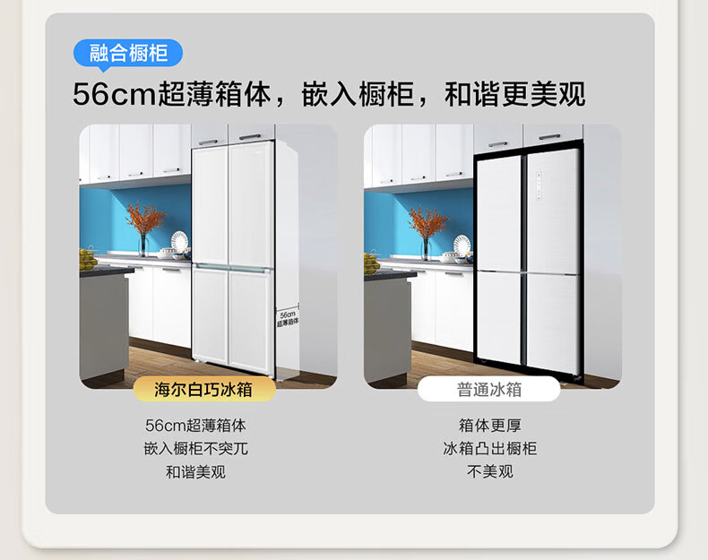 白巧系列-海尔501L零嵌全空间保鲜超薄冰箱四开门十字对开门零距离自由嵌入式风冷无霜家用大容量电冰箱 BCD-501WGHTD14W9U1