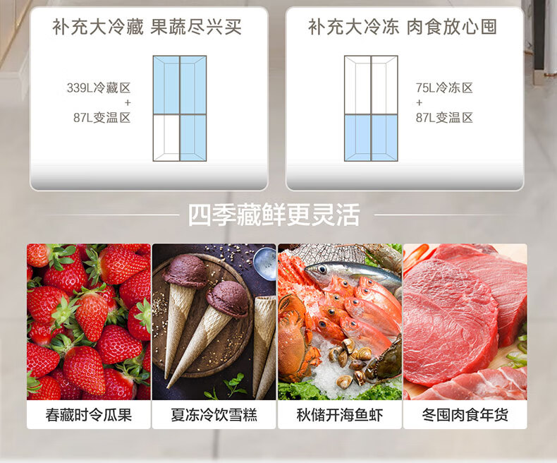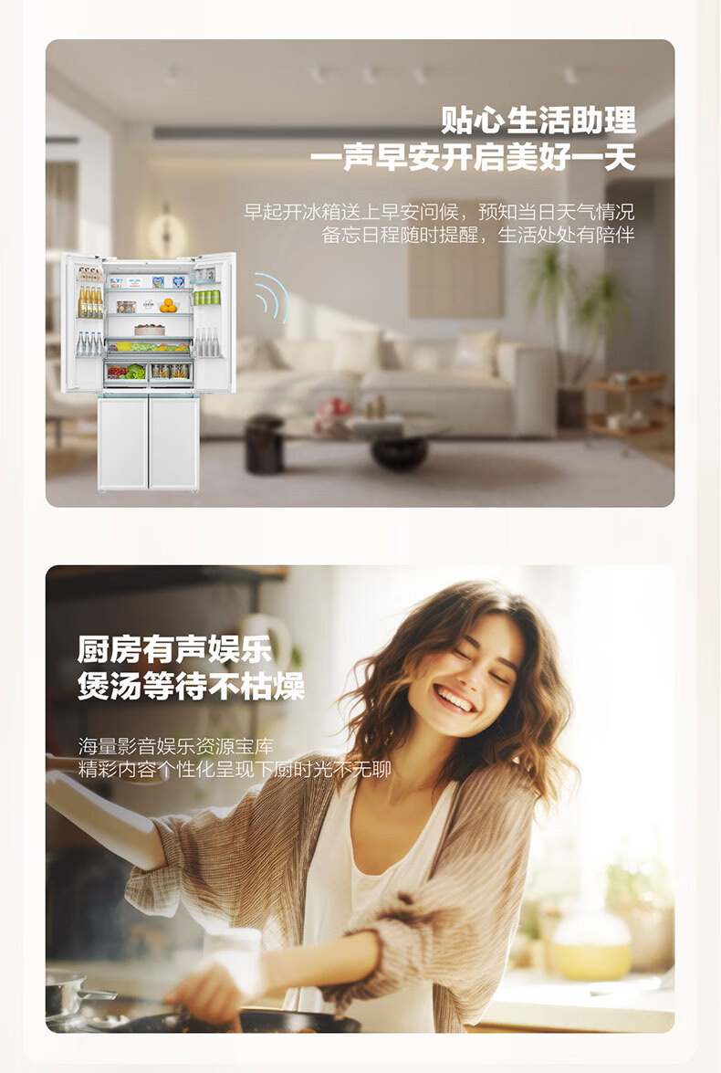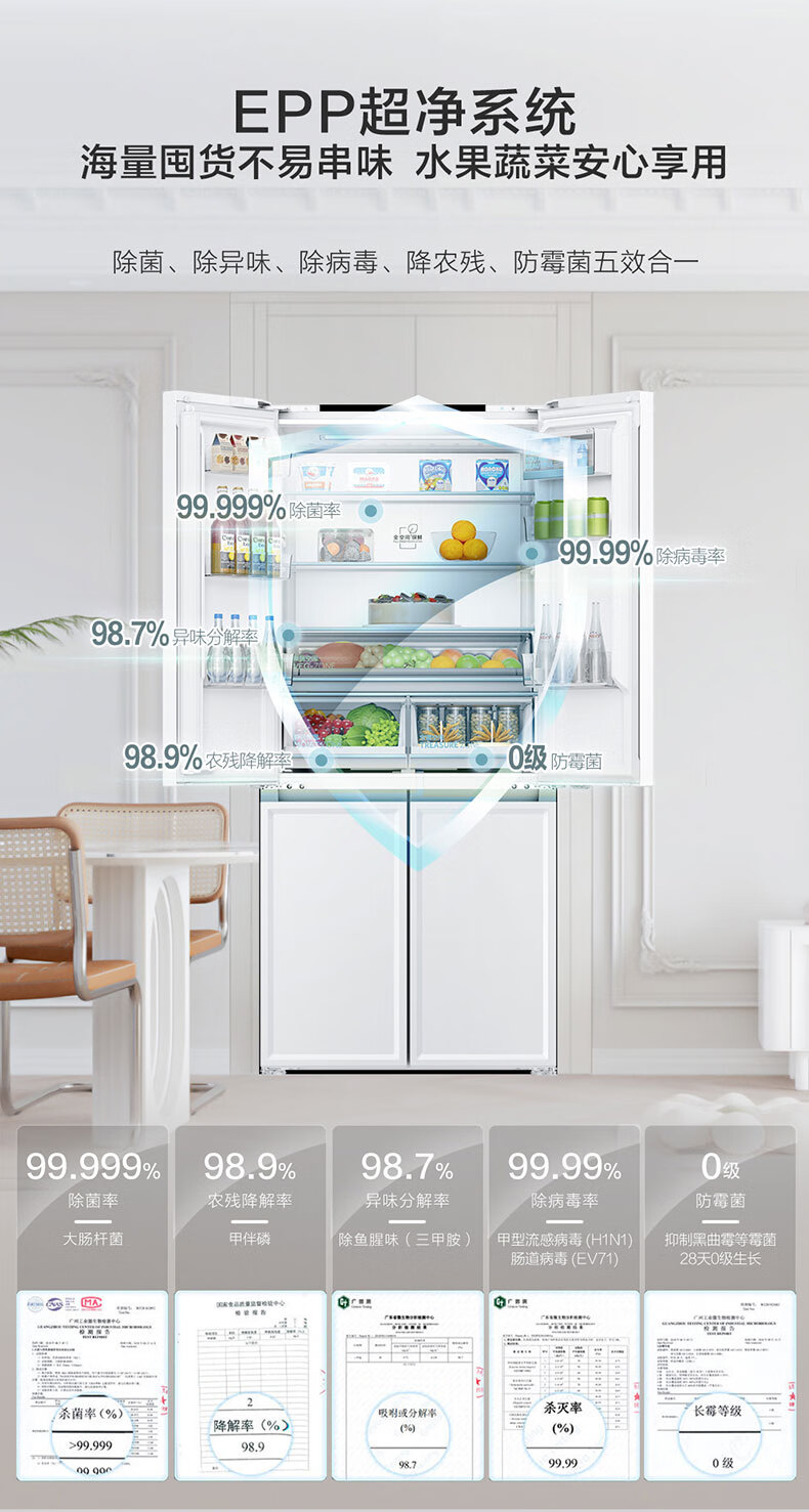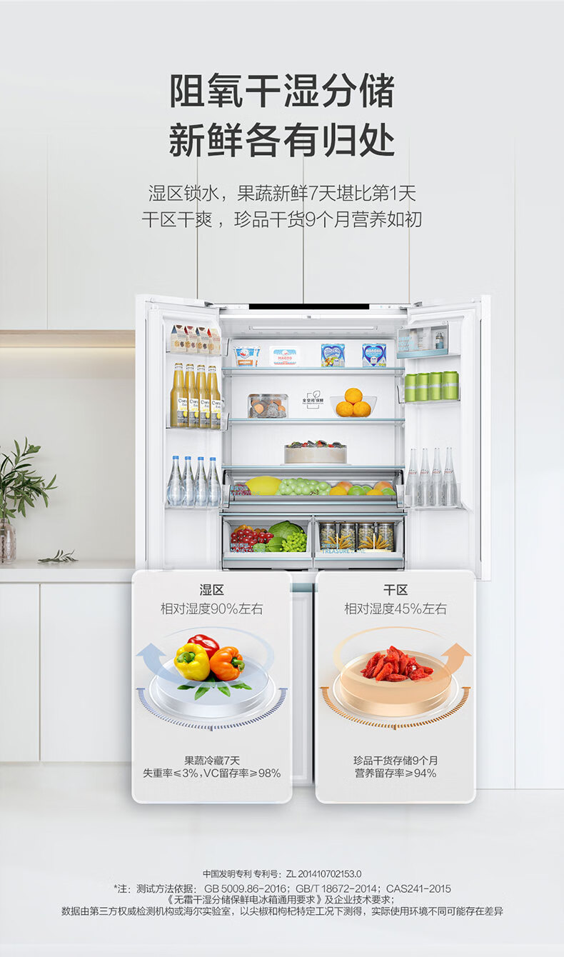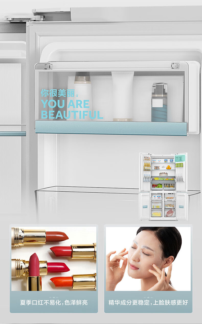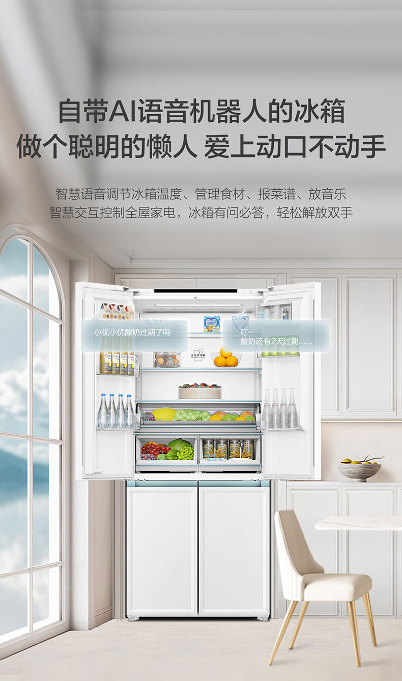 白巧系列-海尔501L零嵌全空间保鲜超薄冰箱四开门十字对开门零距离自由嵌入式风冷无霜家用大容量电冰箱 BCD-501WGHTD14W9U1