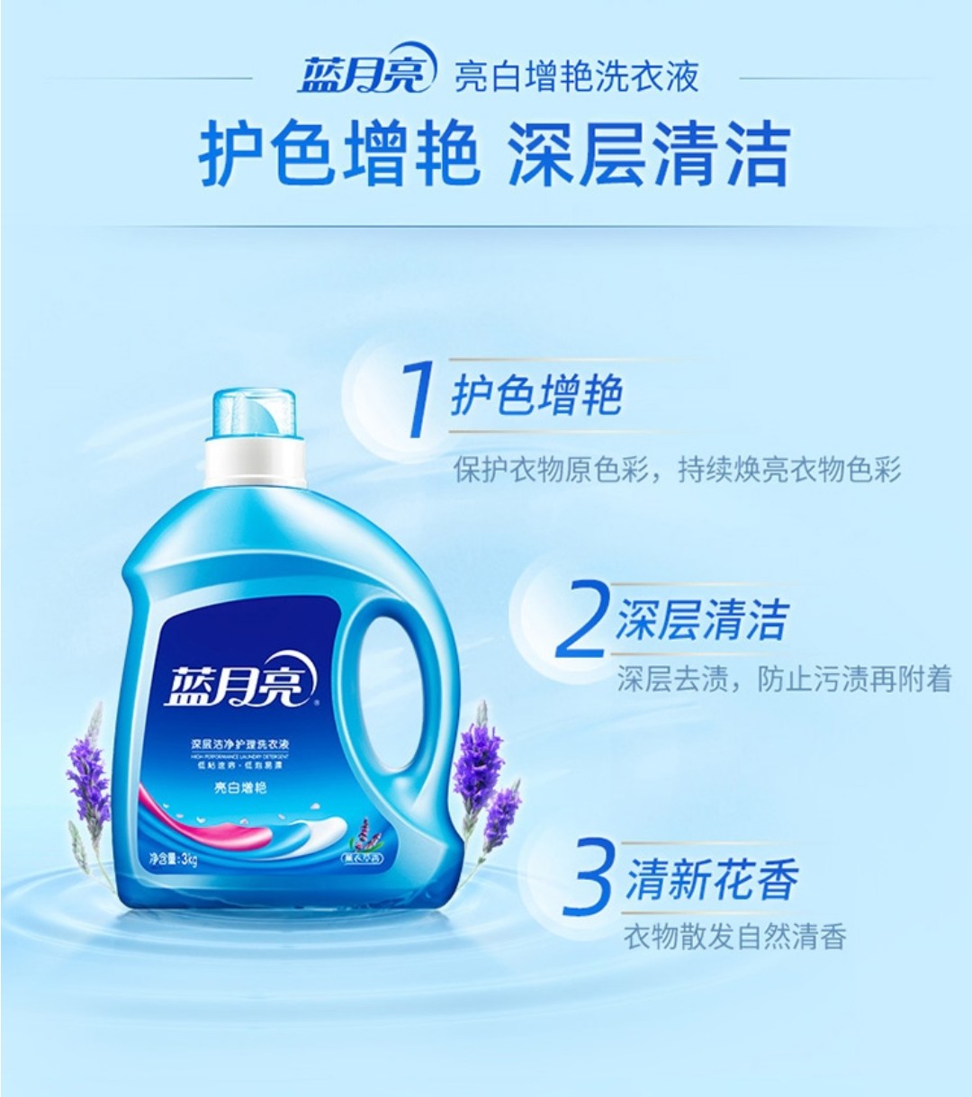 蓝月亮洗衣液12斤套装:亮白增艳薰衣草3kg瓶+1kg袋*3(新老包装随机发货)