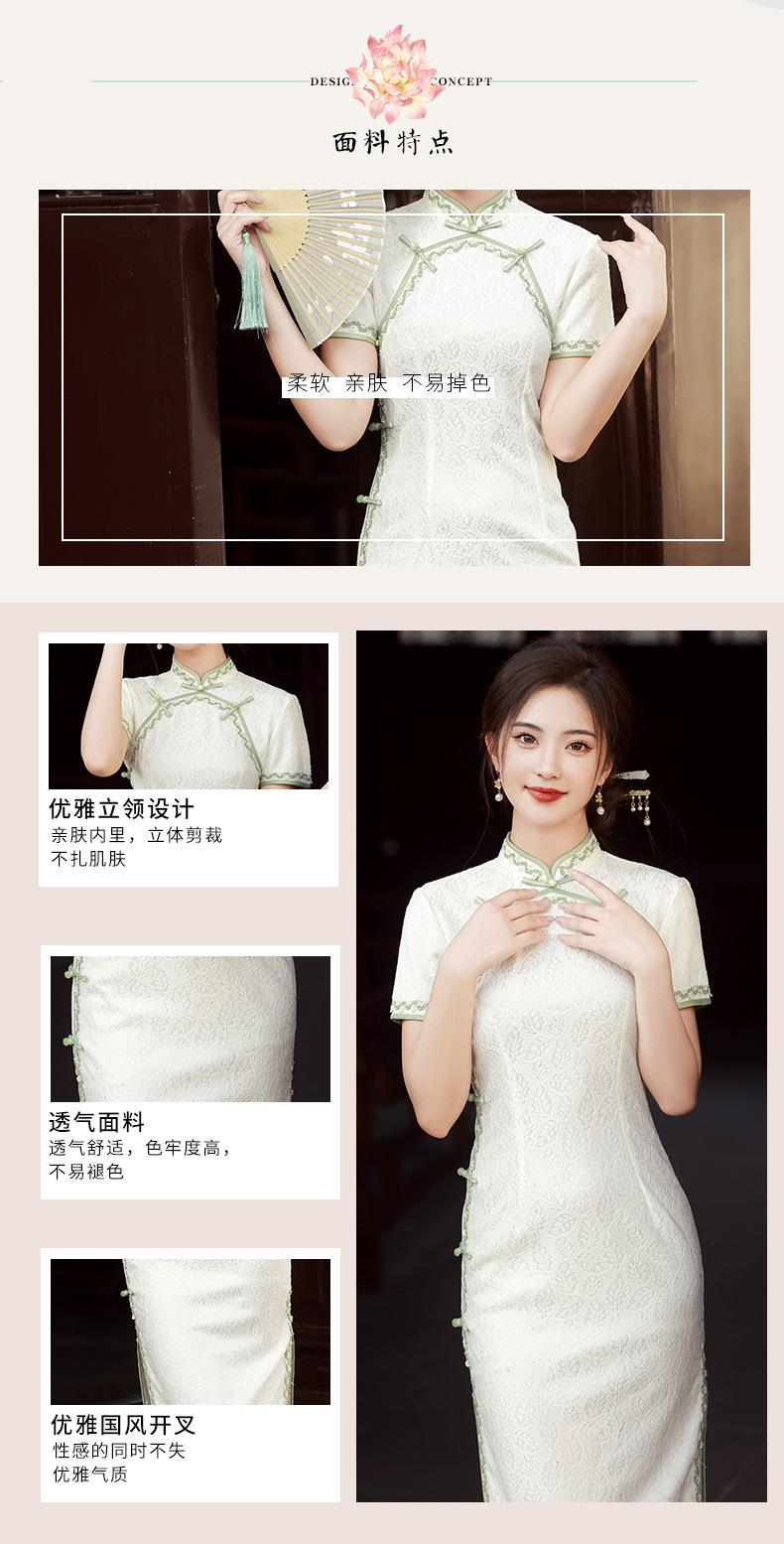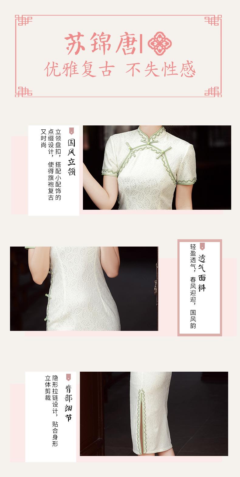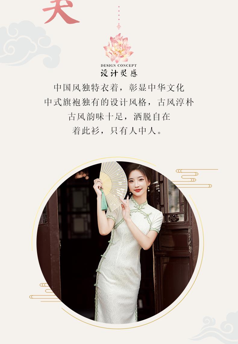 2023夏款侧八扣复合蕾丝花边旗袍连衣裙 复古典中国风旗袍年轻款