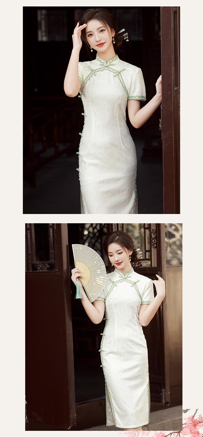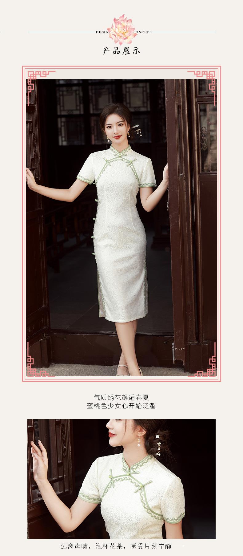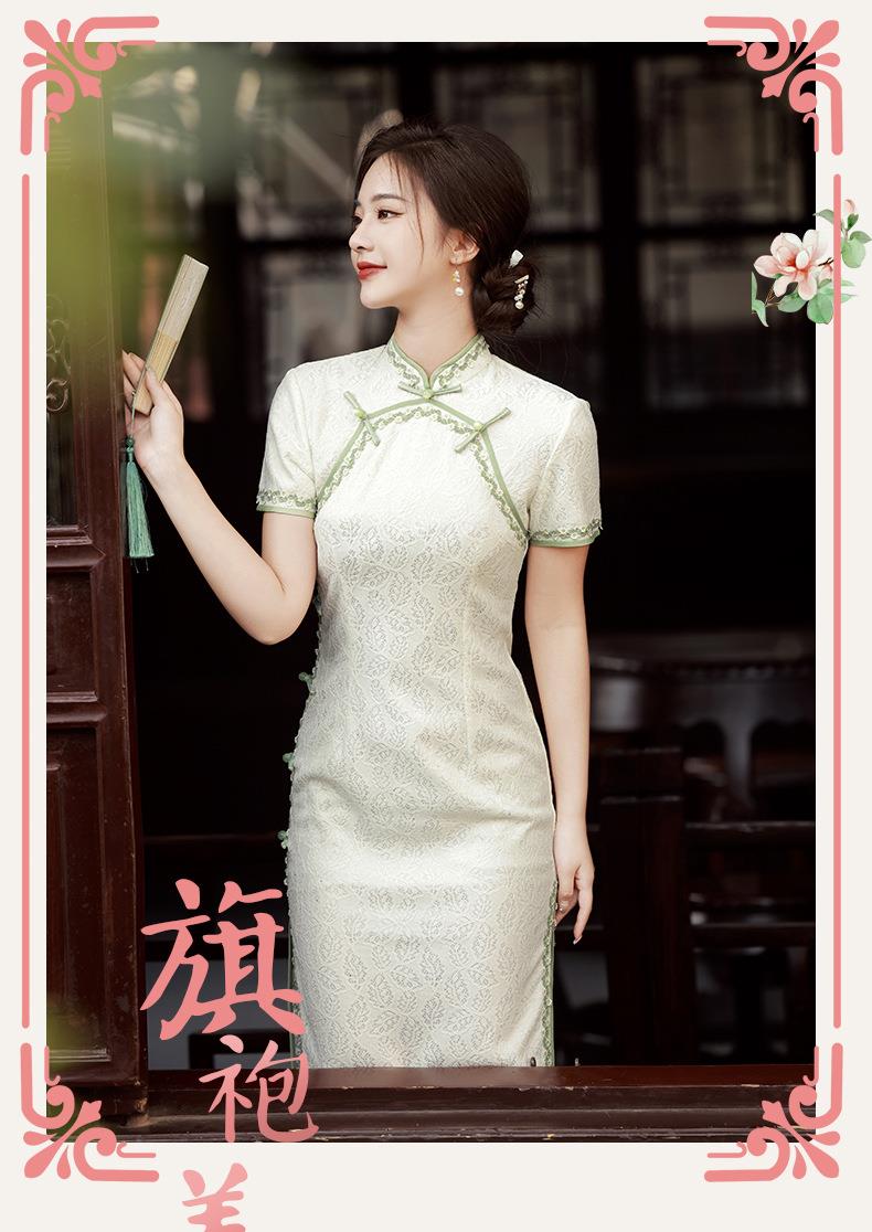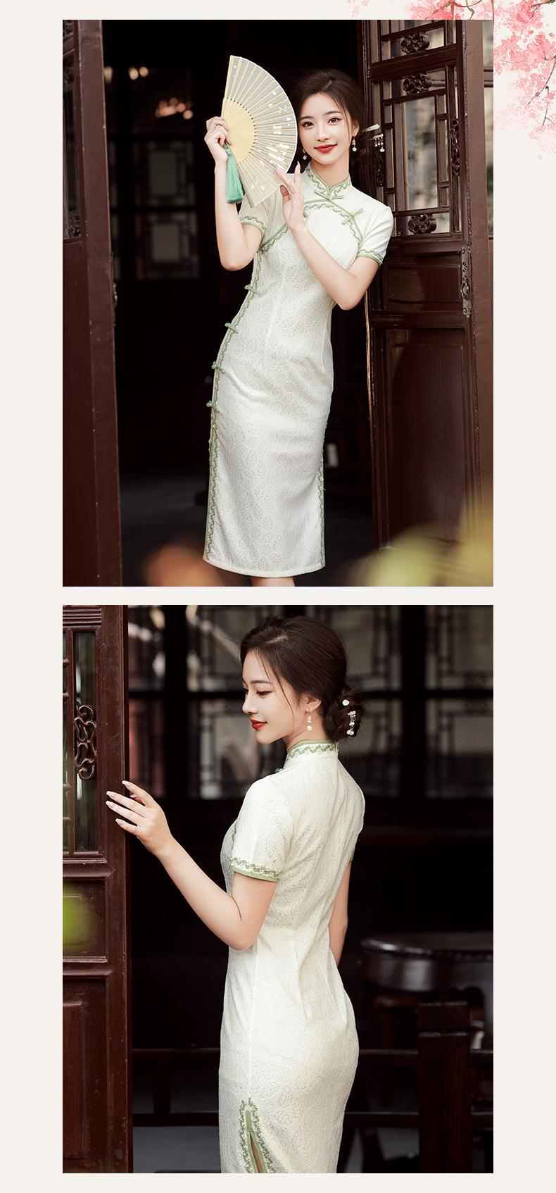 2023夏款侧八扣复合蕾丝花边旗袍连衣裙 复古典中国风旗袍年轻款