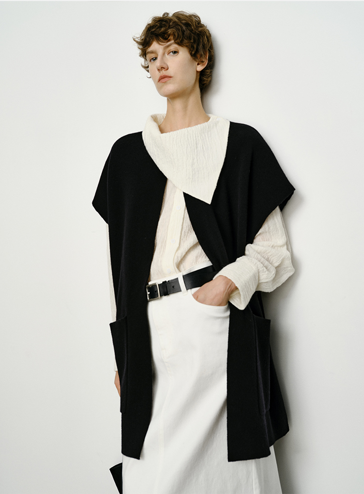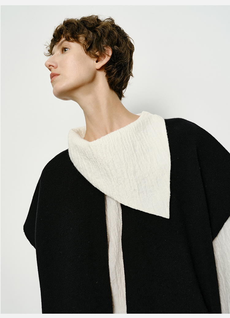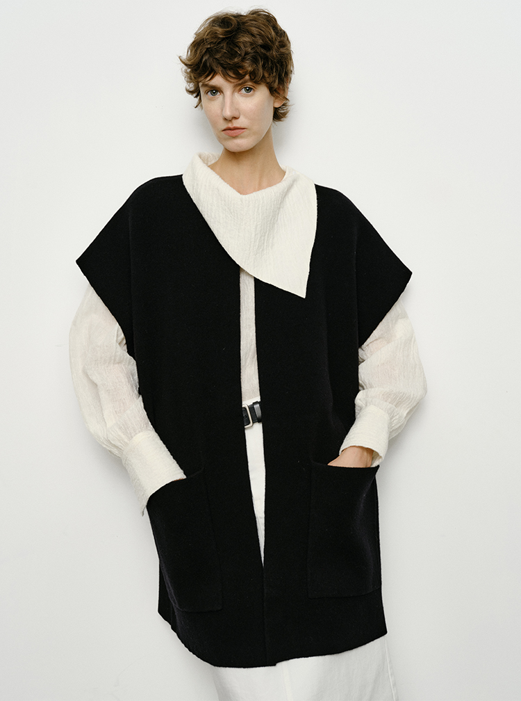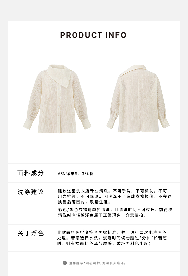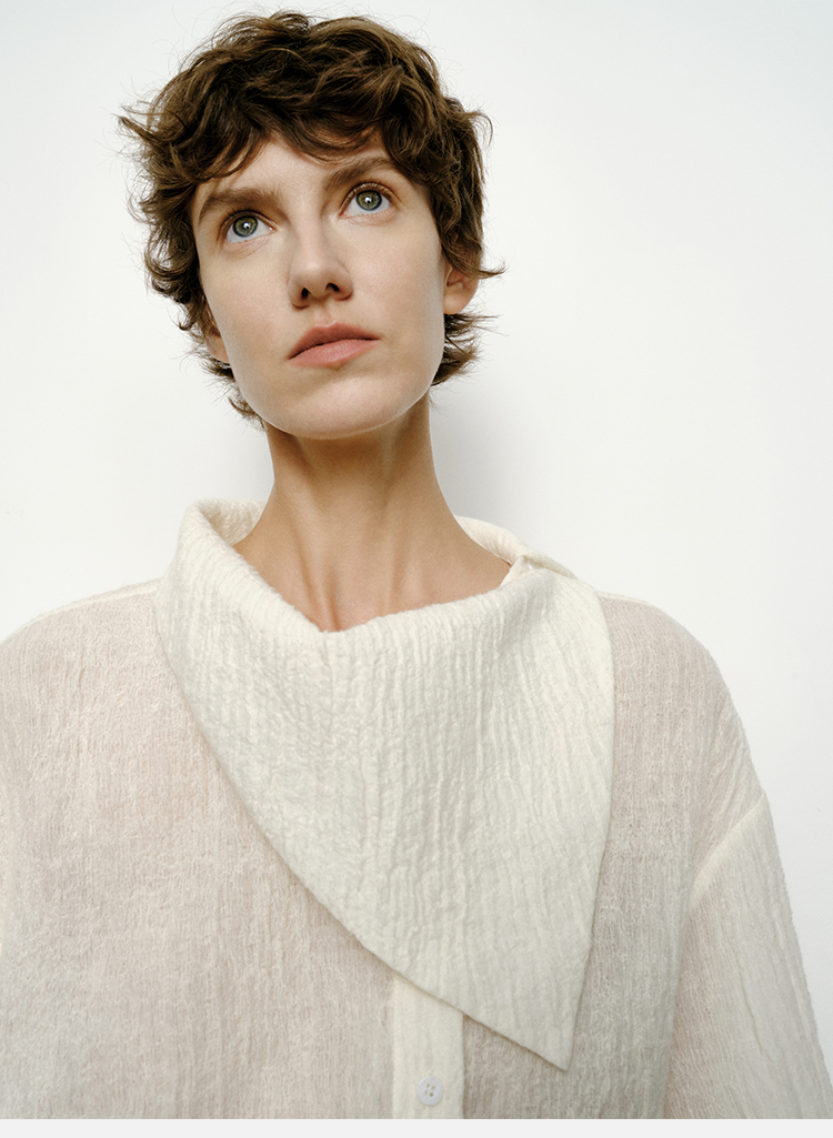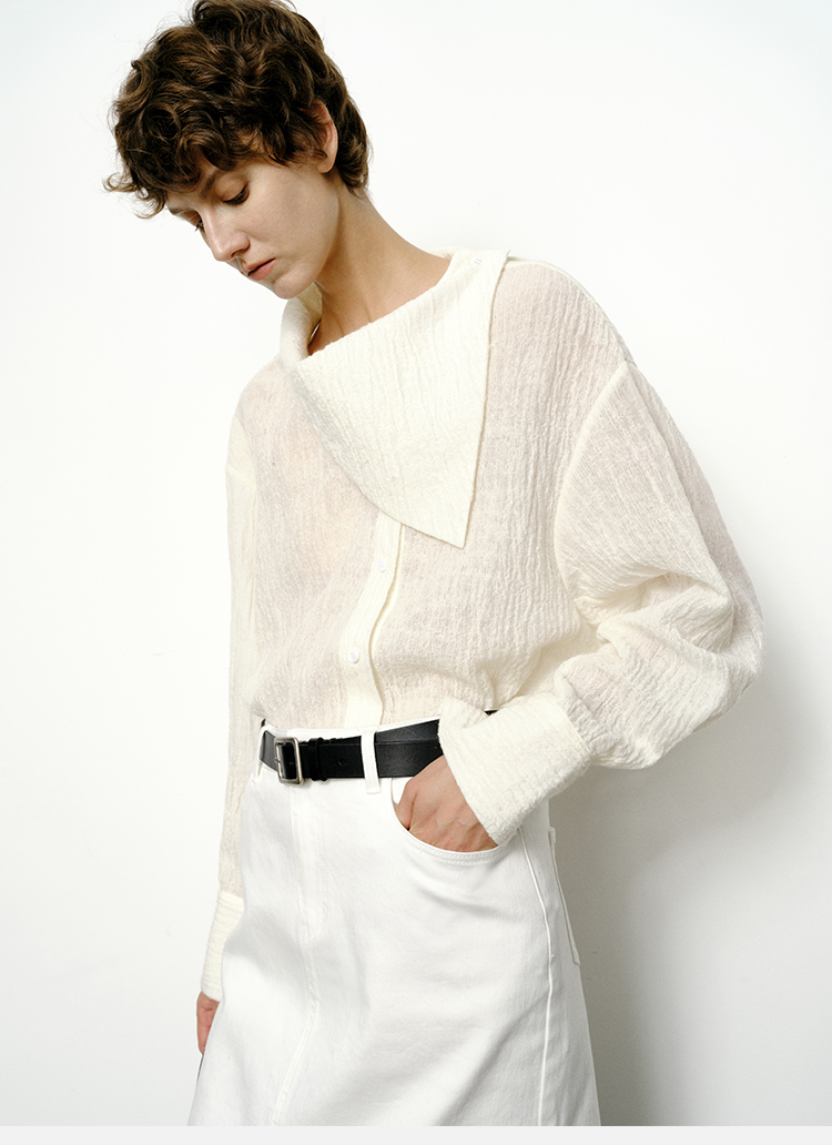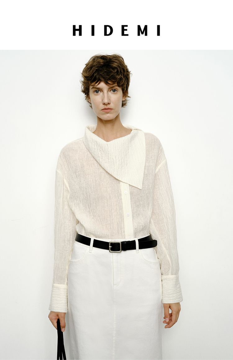 HIDEMI 艺术感强缩褶皱肌理羊毛系列不对称翻领衬衫上衣