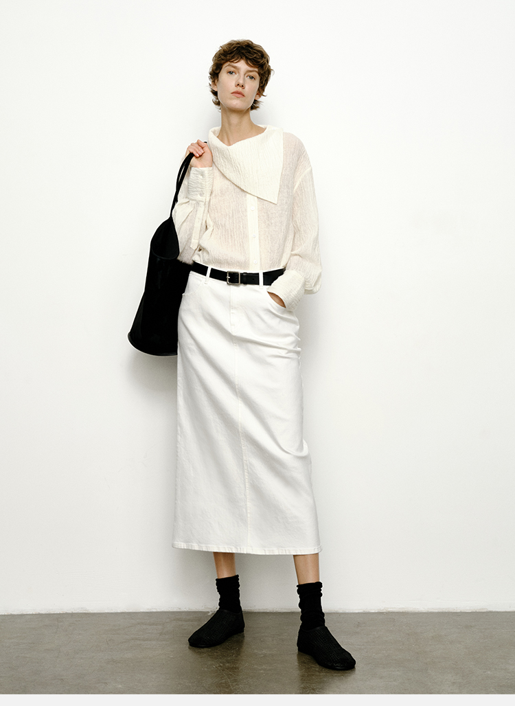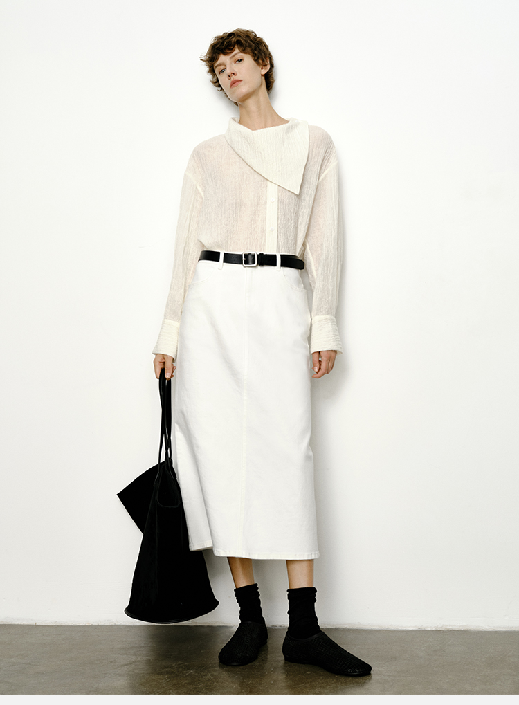 HIDEMI花苞几何设计感衬衫 白色/藏蓝色
