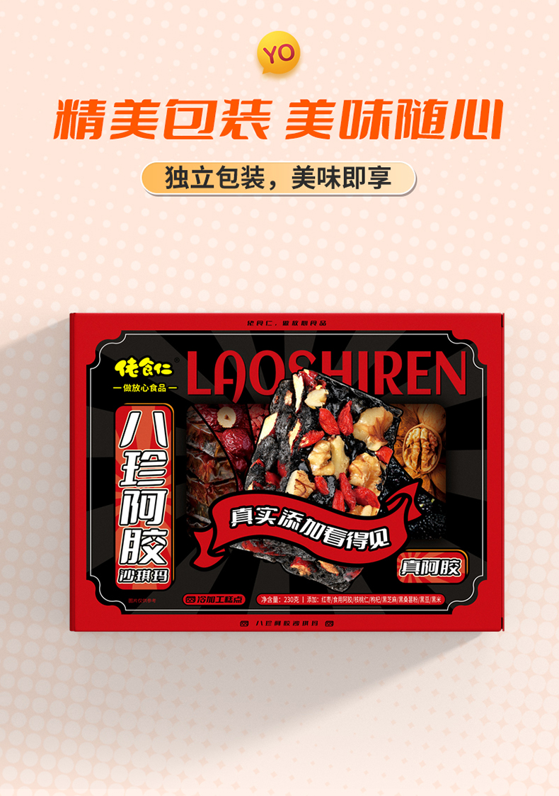 佬食仁八珍阿胶沙琪玛整箱老式手工糕点养颜益血无蔗糖滋补零食230g