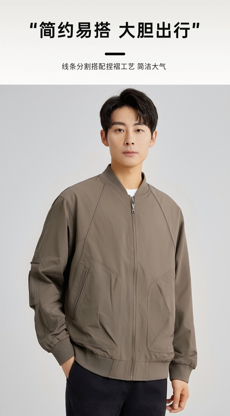 圣得西男士拼接棒球领夹克2025春秋新款宽松休闲百搭飞行员外套