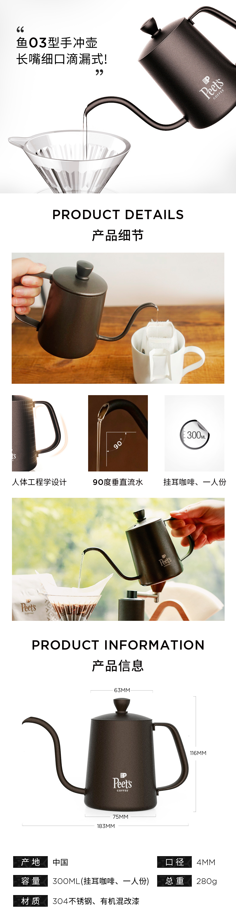 Peet's coffee皮爷咖啡手冲咖啡细嘴控水壶300ml