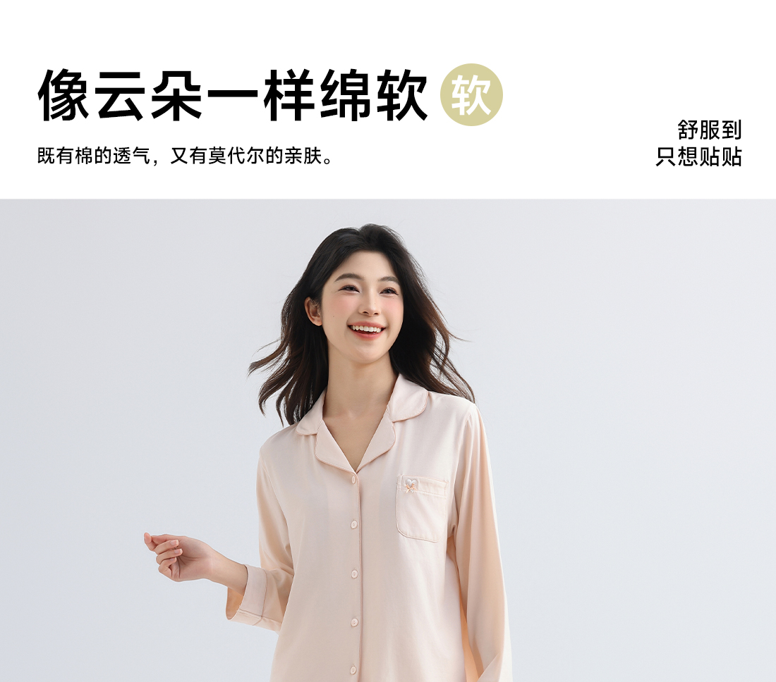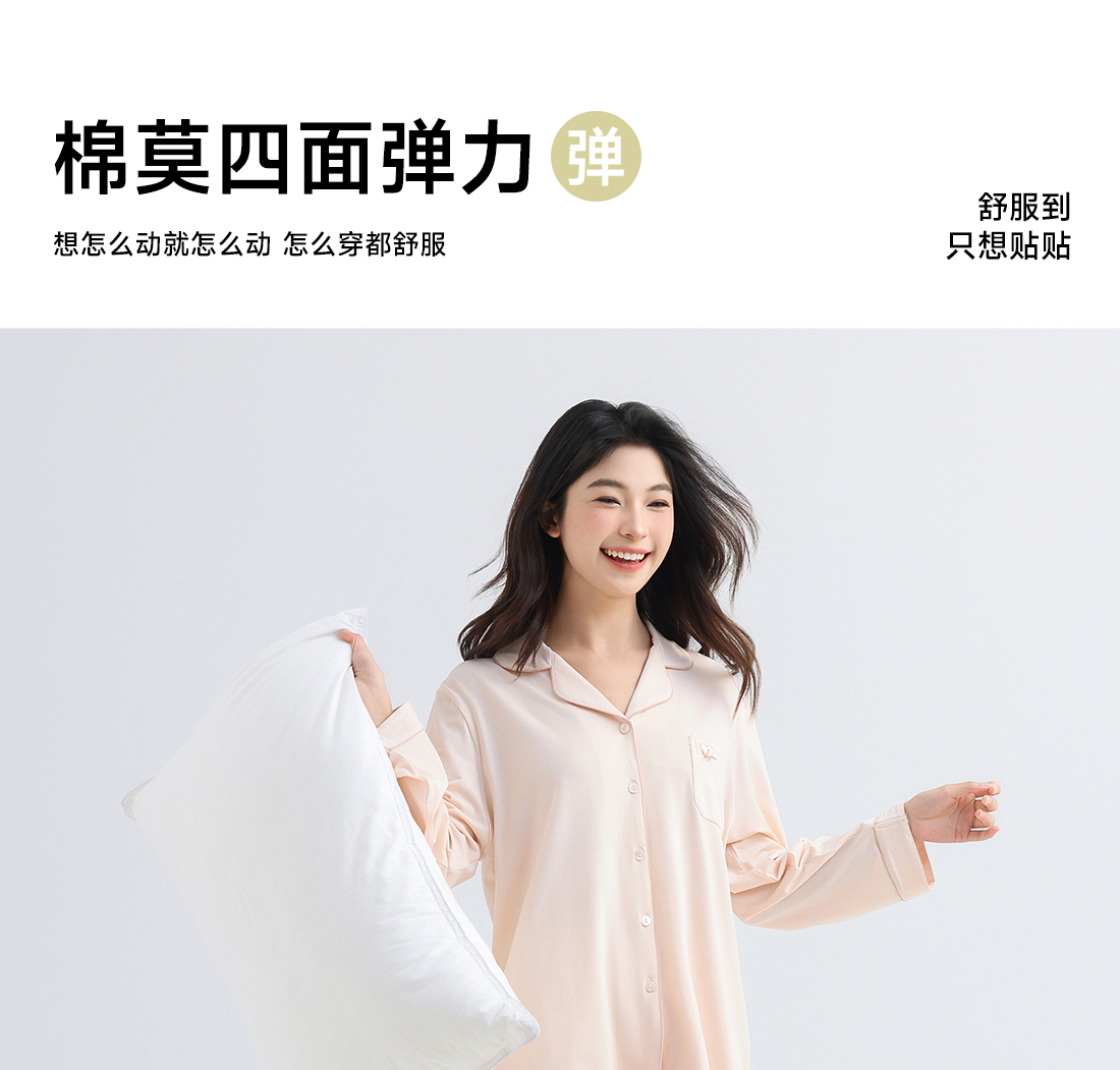 美季美优睡衣女士春秋2025新款夏棉莫代尔超柔软长袖家居服可外穿