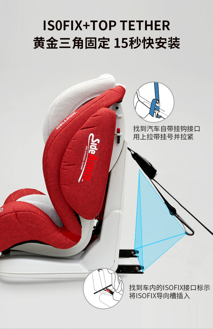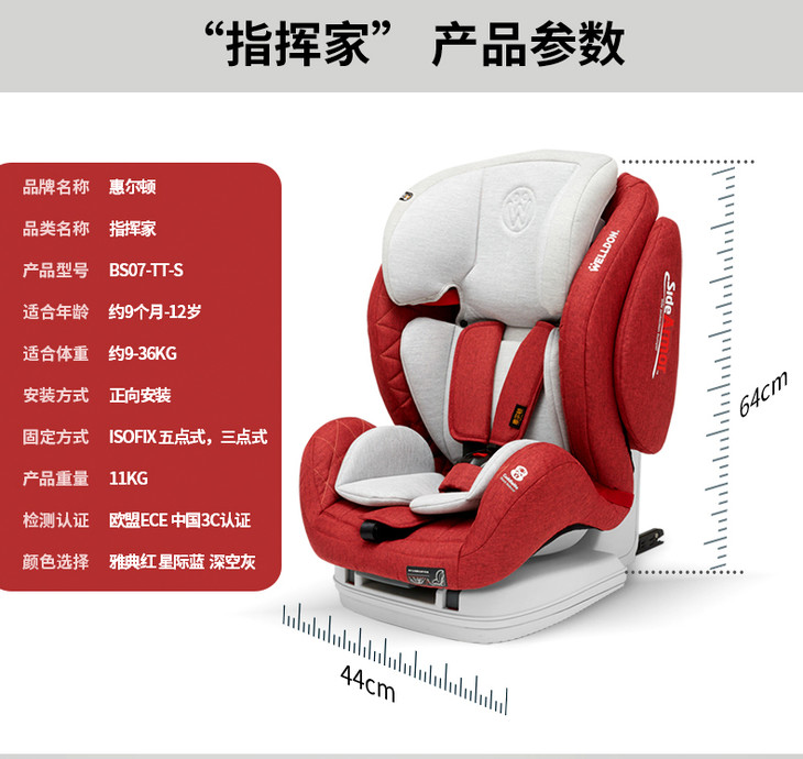 (超值)welldon惠尔顿 指挥家 儿童安全座椅 宝宝婴儿9月-12岁 坐躺椅