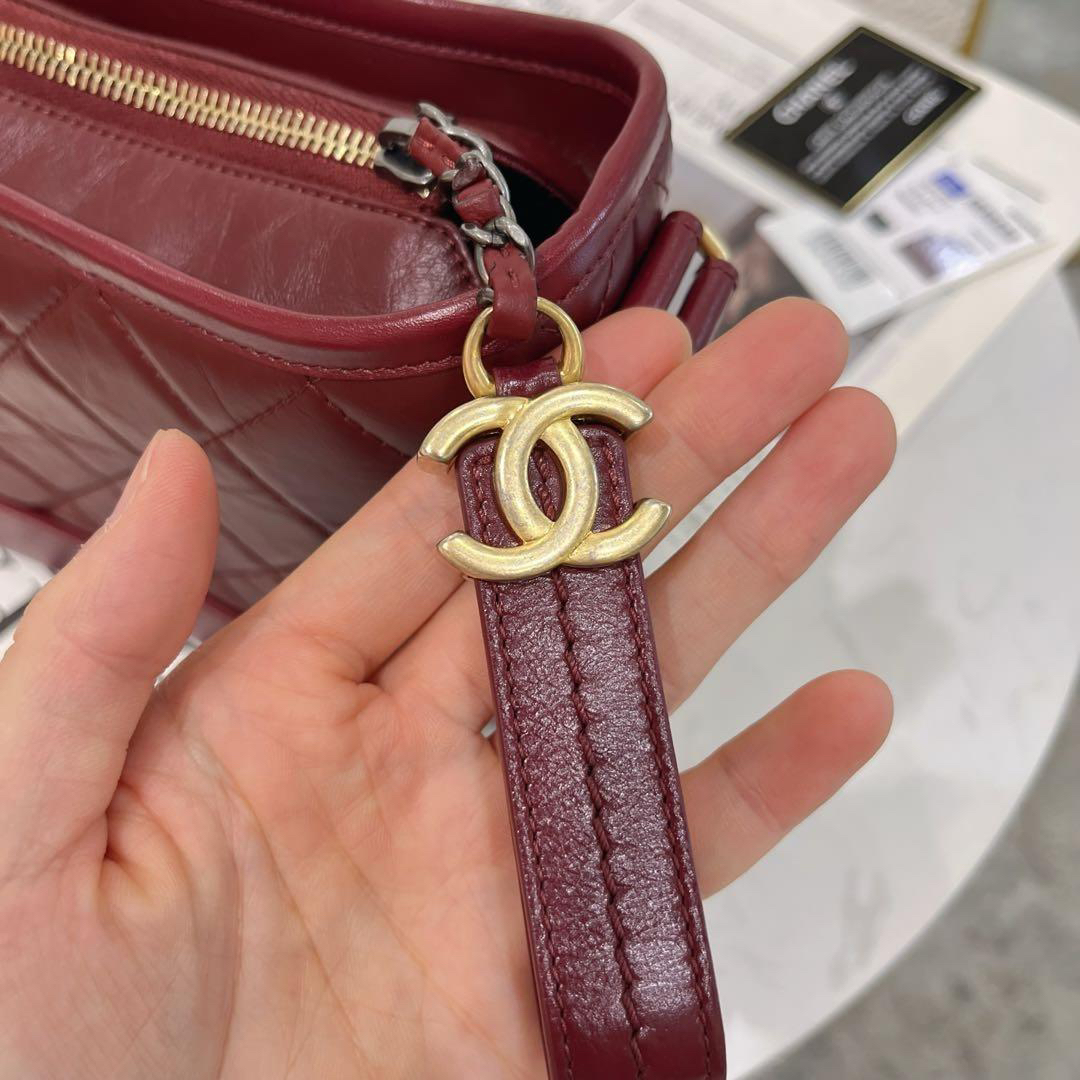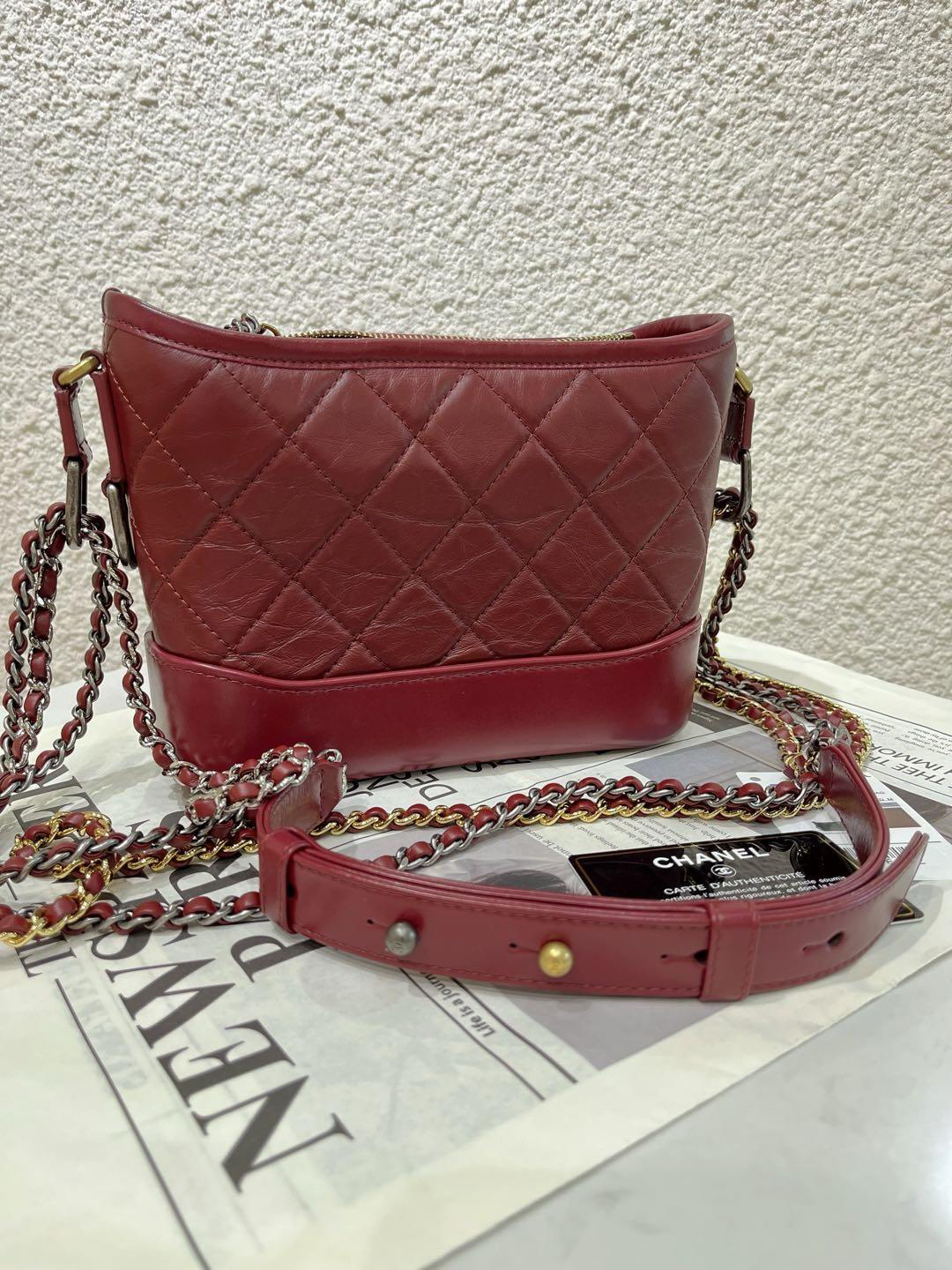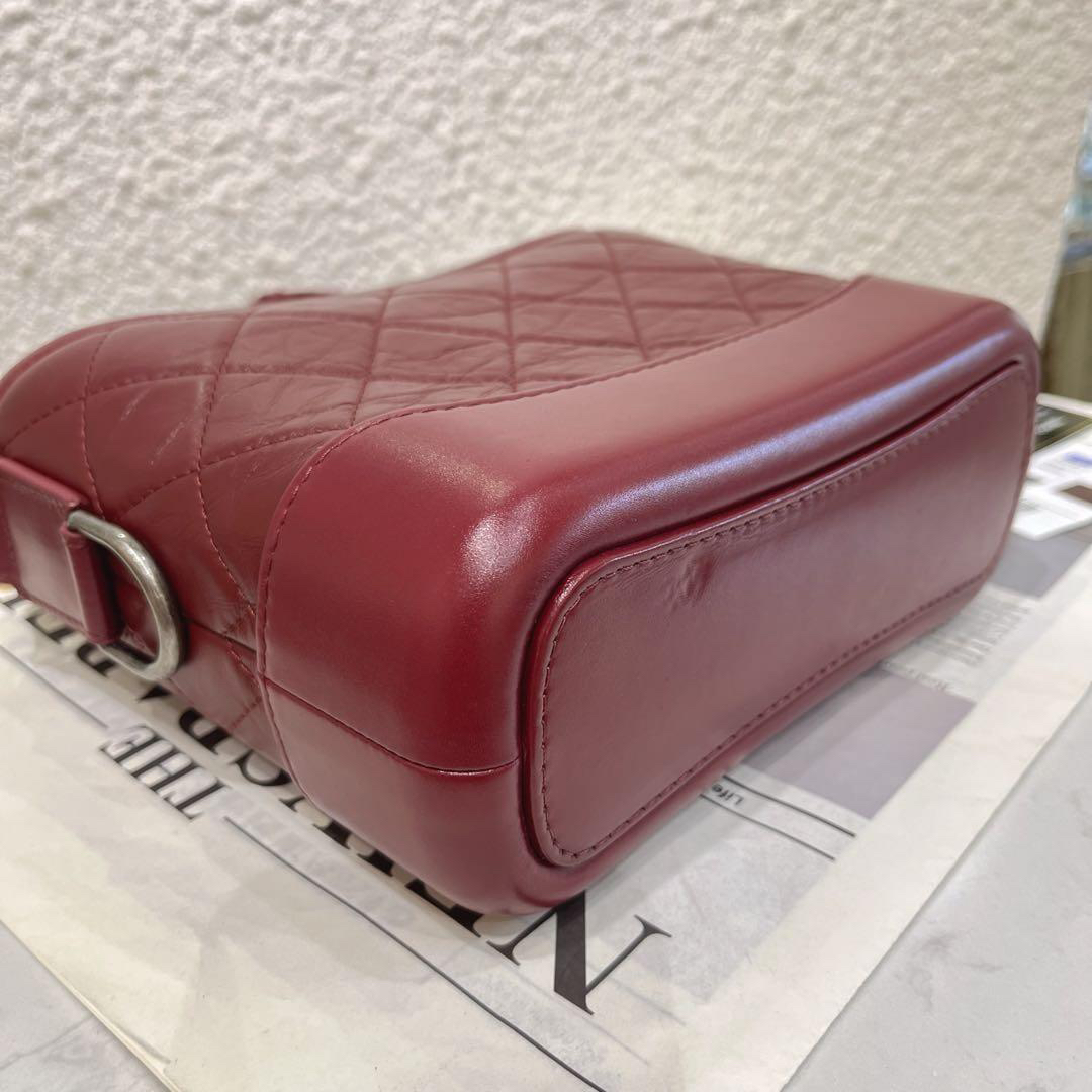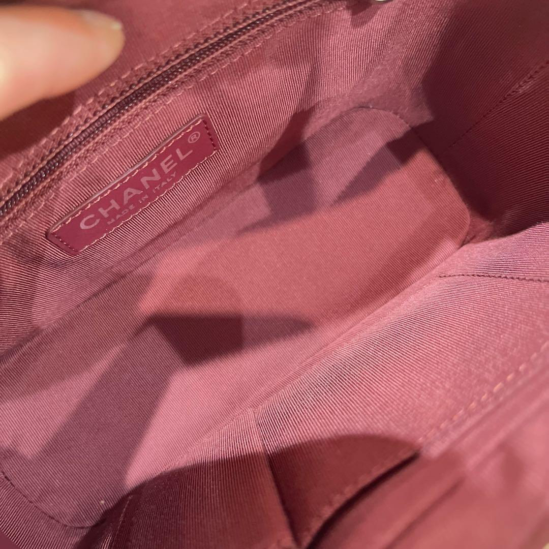 正品二手 Chanel 小号 酒红 油蜡牛皮 菱格纹 流浪包💝 99新 20*14 镭射28开 配件:吊牌 卡。经典休闲 流浪背法