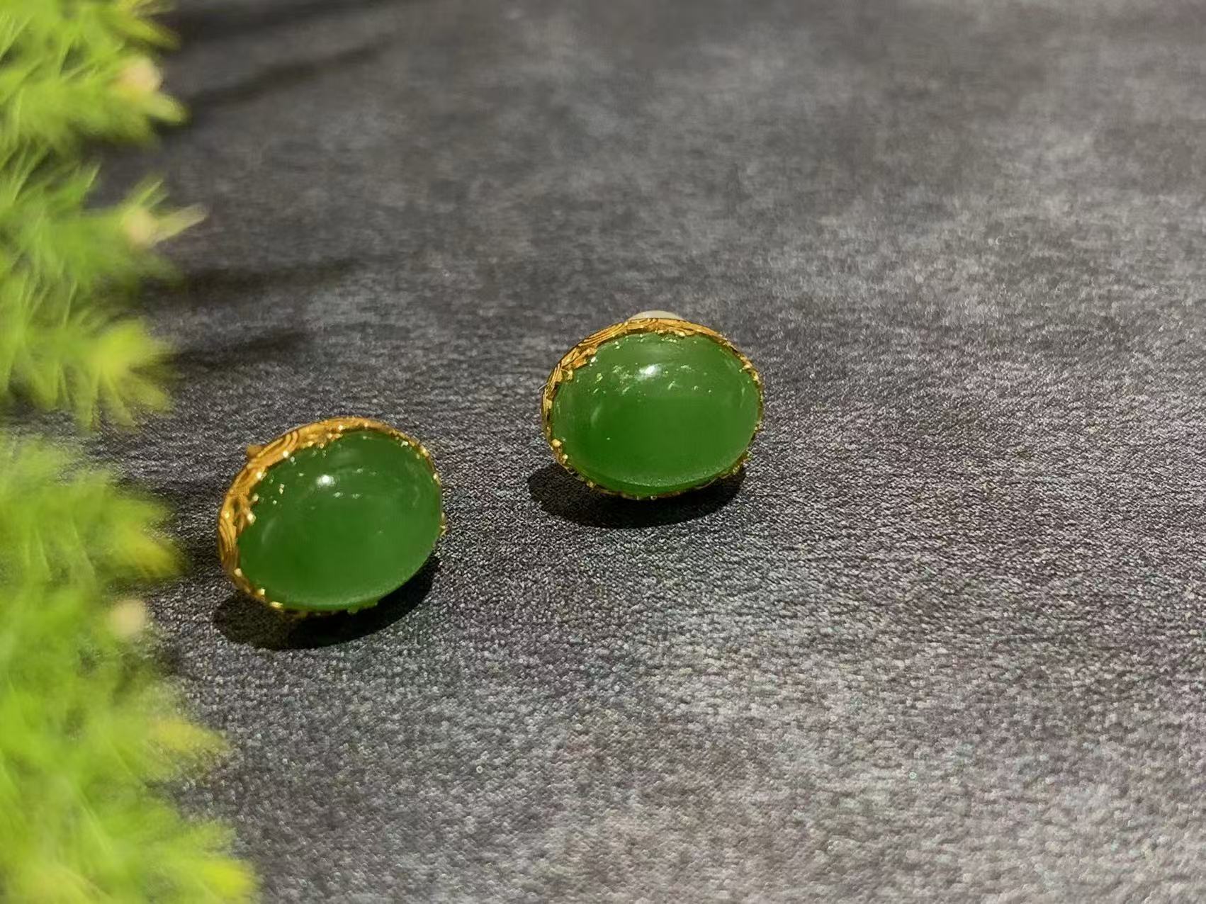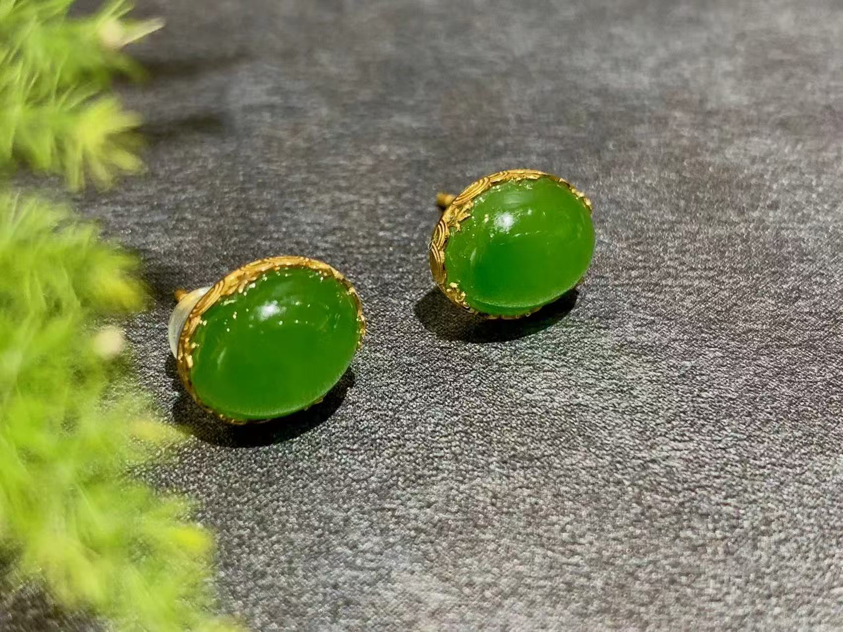 【御珠宫坊】金镶碧玉耳钉