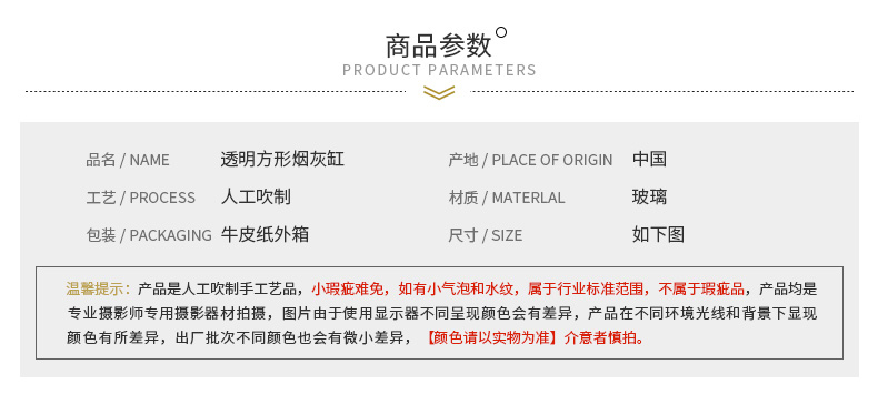 现代简约透明水晶方形雪茄烟灰缸室客厅酒店软装饰小摆件