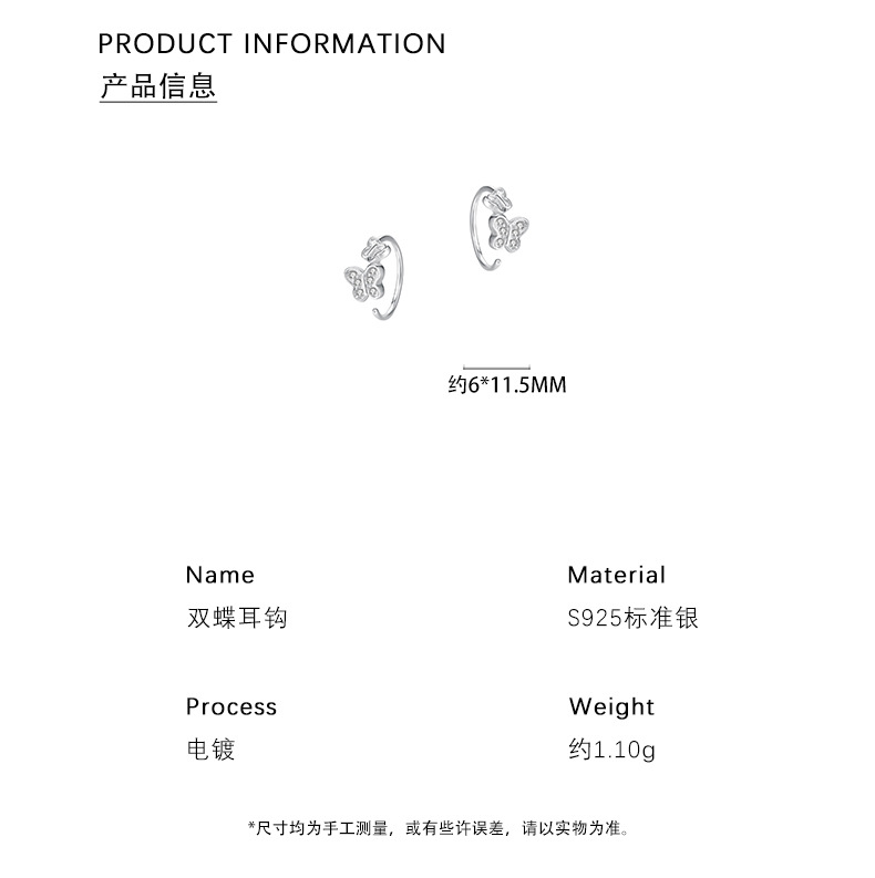 【蝶翼翩舞】S925银锆石满镶蝴蝶耳饰【YXS-E4443】