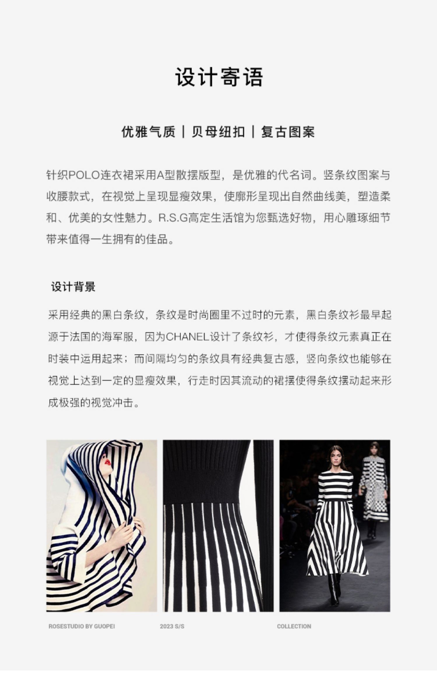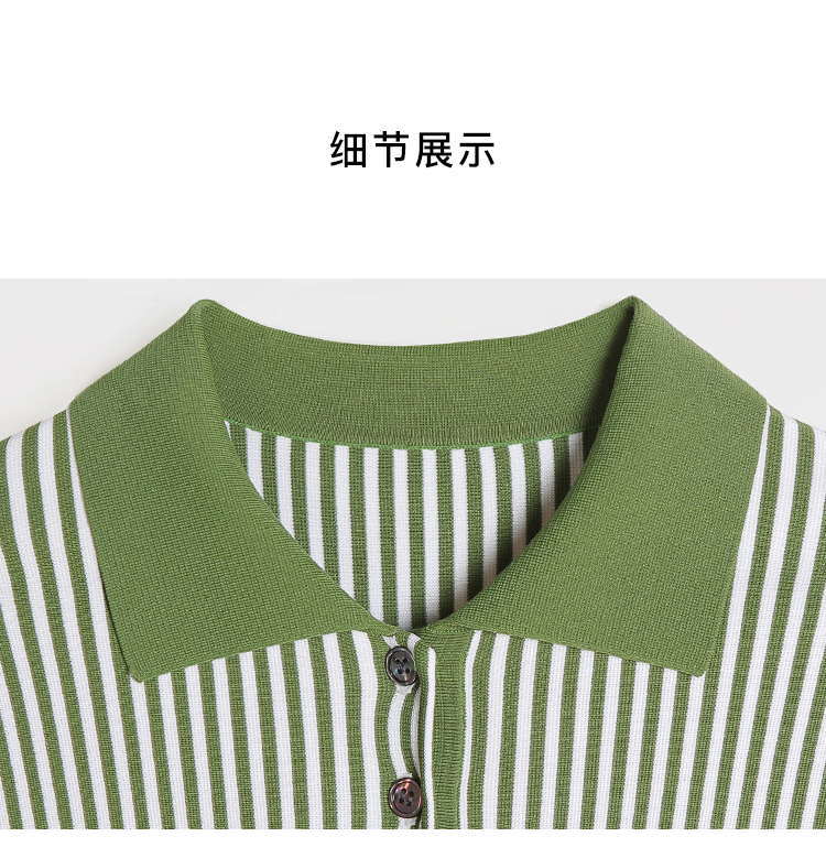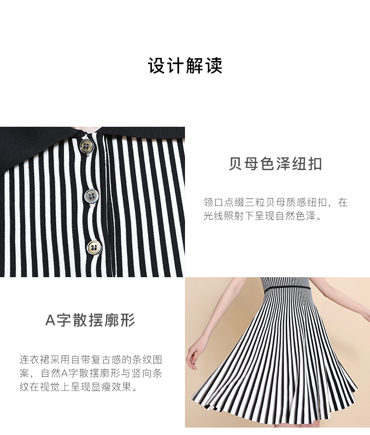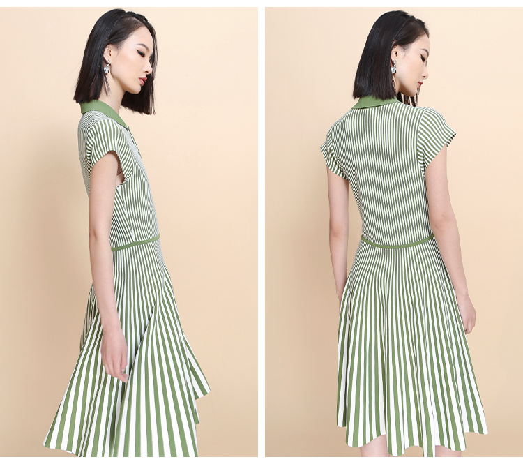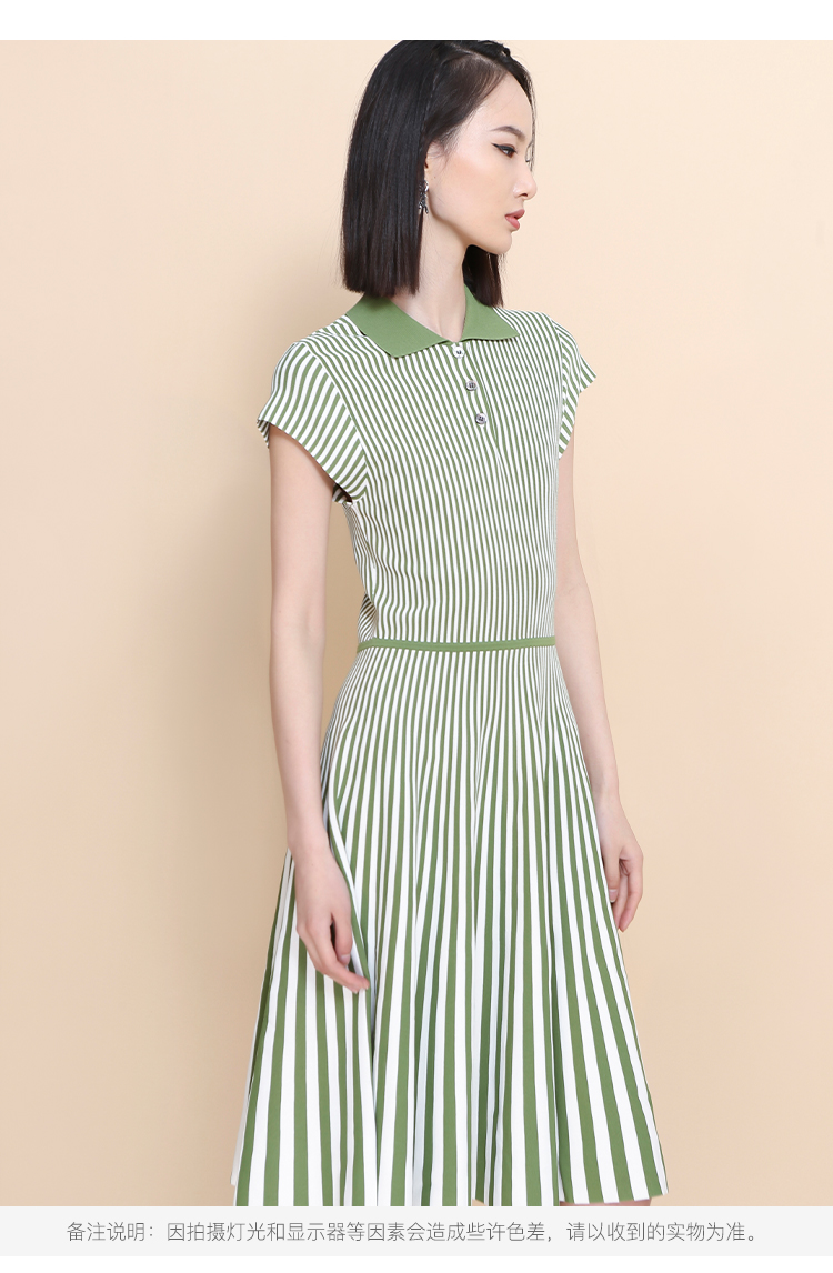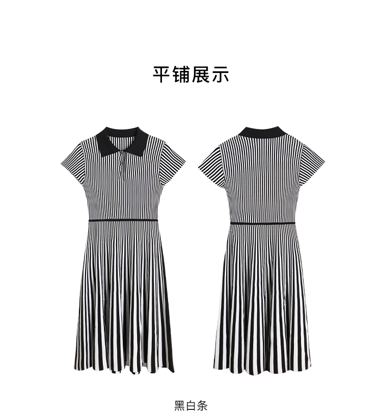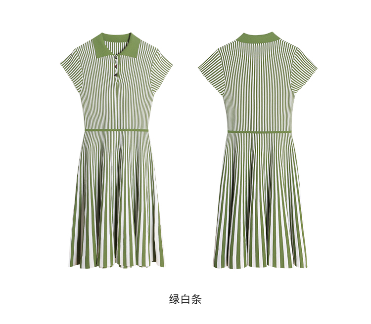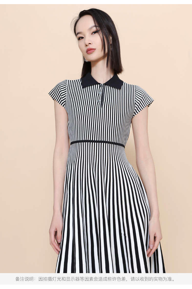 RSG郭培成衣品牌2023春夏新衬衫领条纹收腰短袖针织连衣A字裙