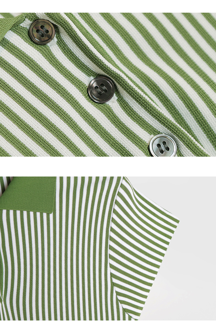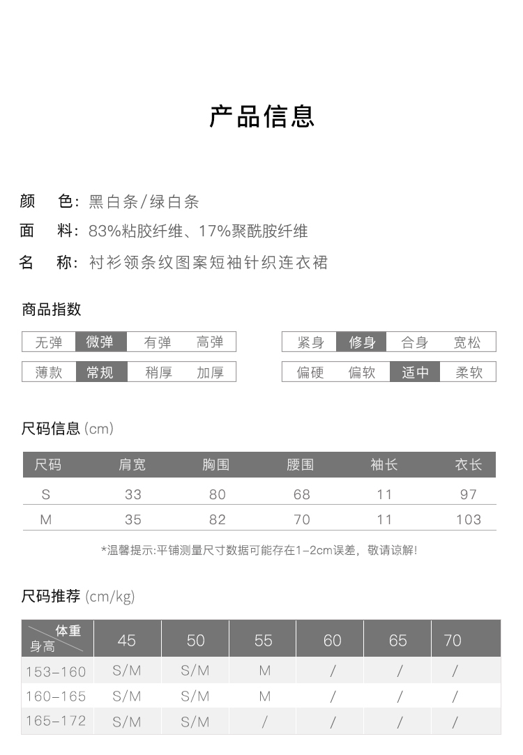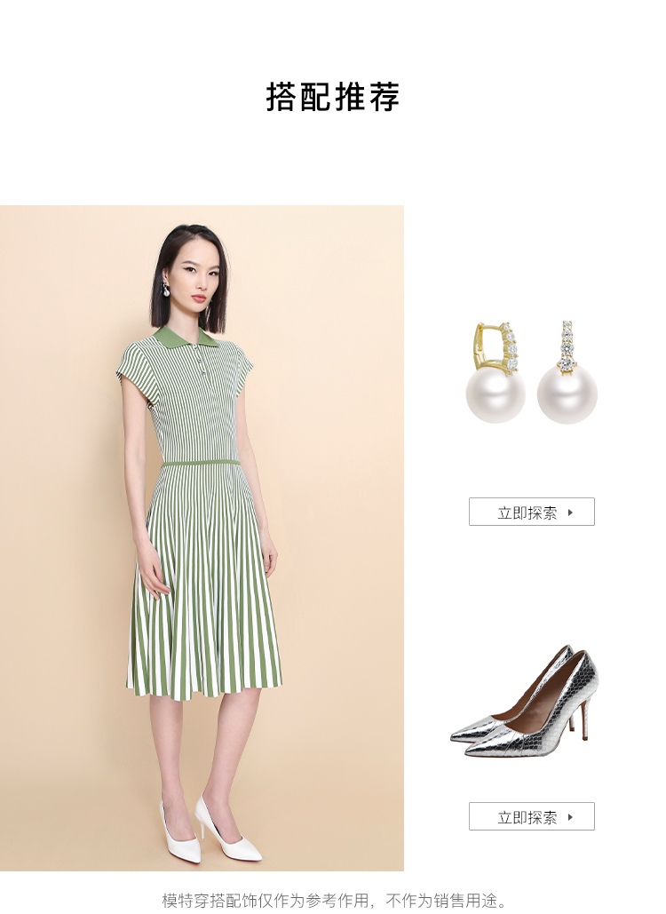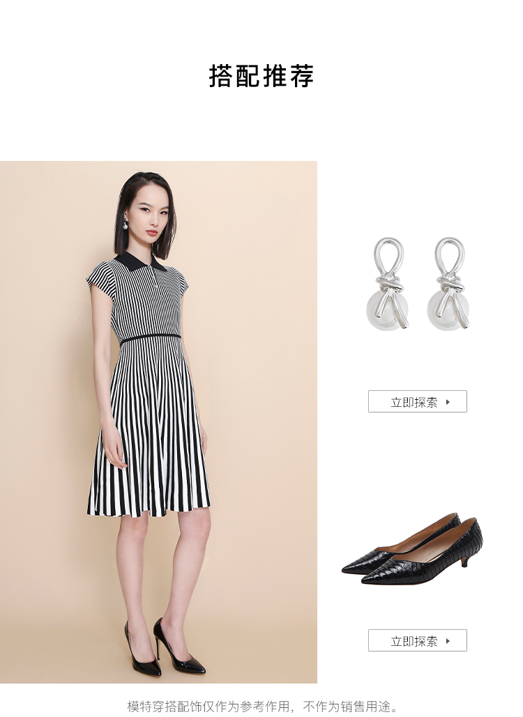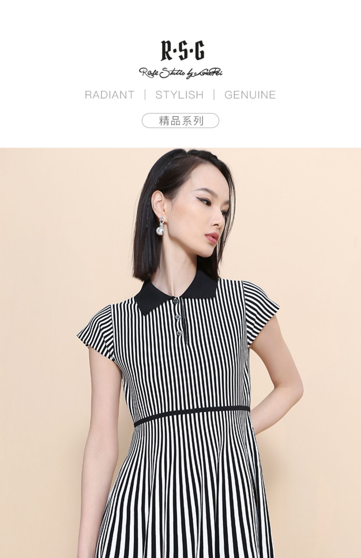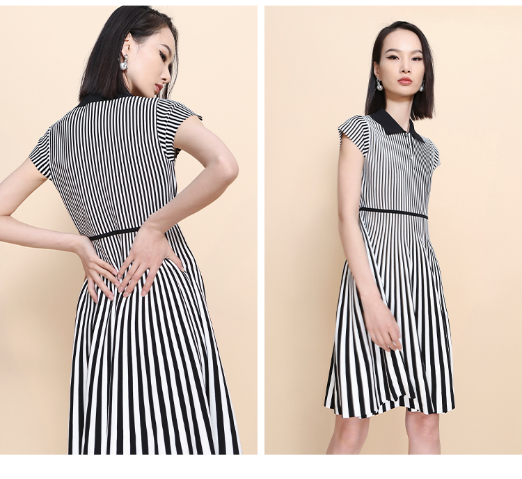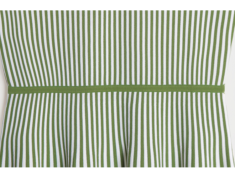 RSG郭培成衣品牌2023春夏新衬衫领条纹收腰短袖针织连衣A字裙