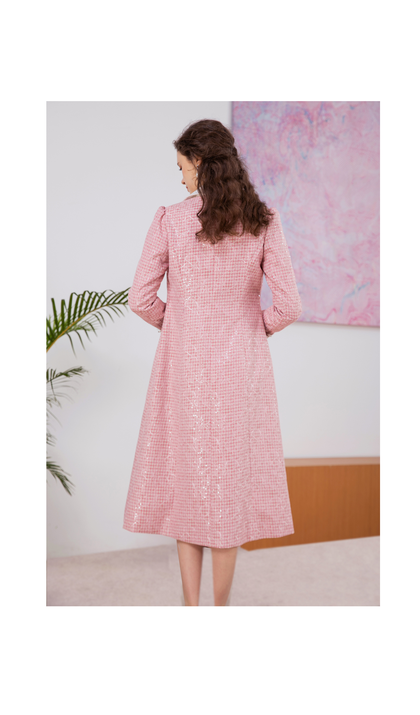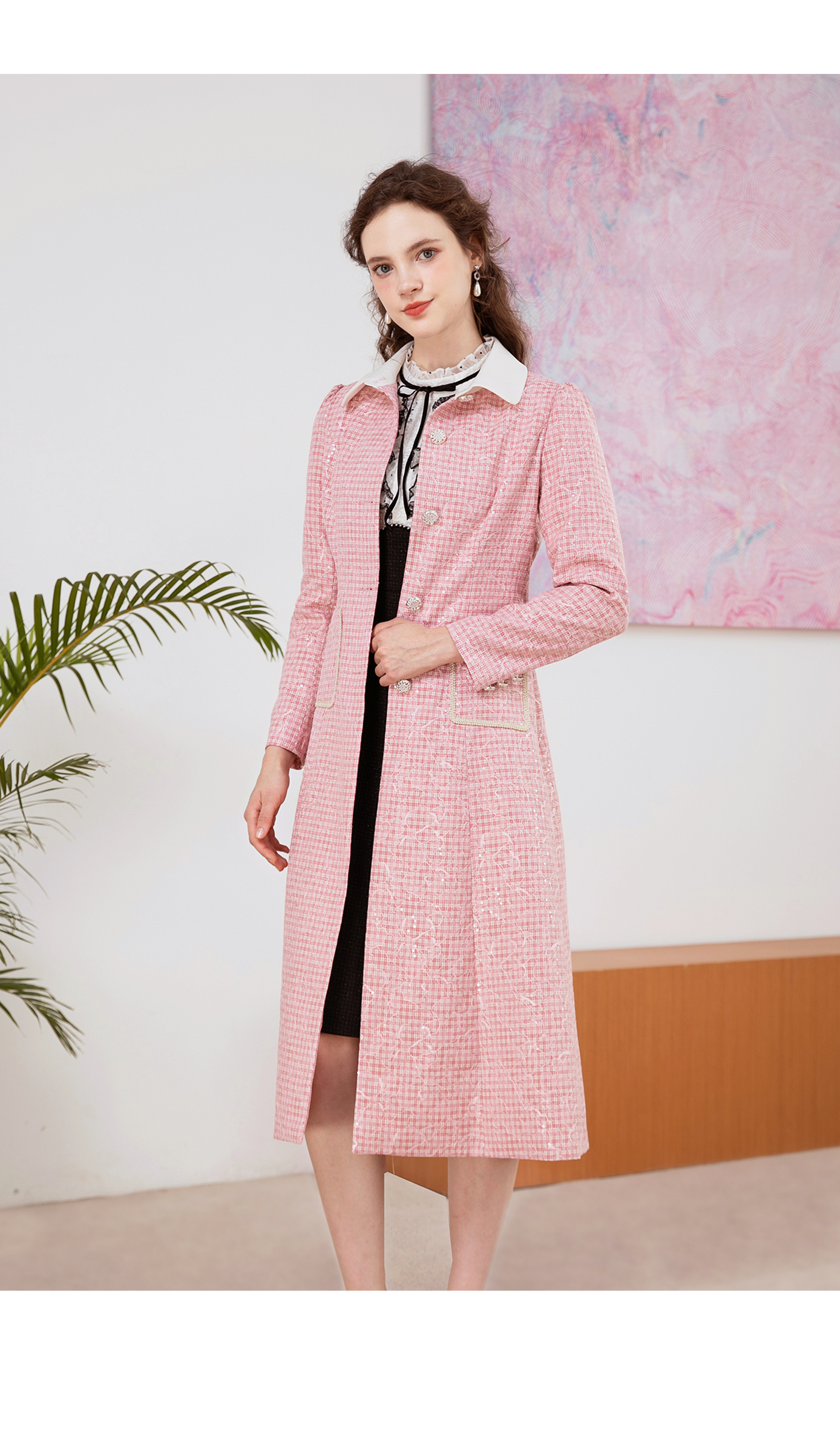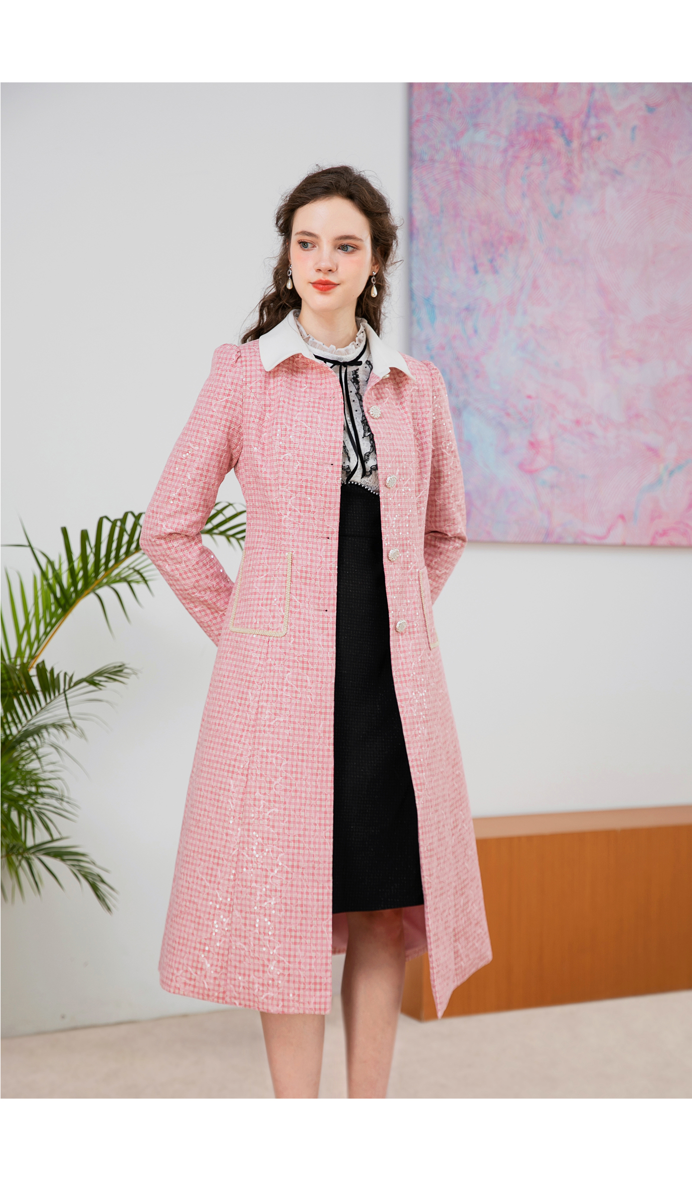 司歌刺绣格子收腰中长款风衣秋冬女R901194X