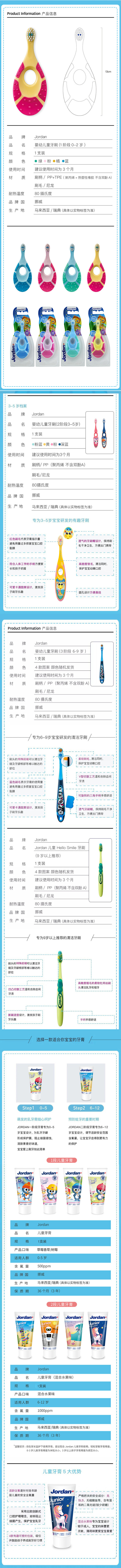 挪威Jordan婴幼儿童婴童牙刷牙膏0-1-2-3-6-9岁(颜色随机)