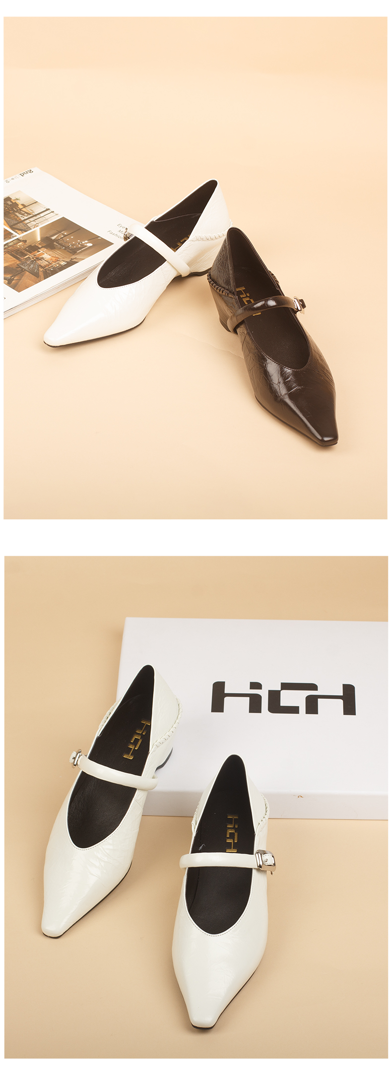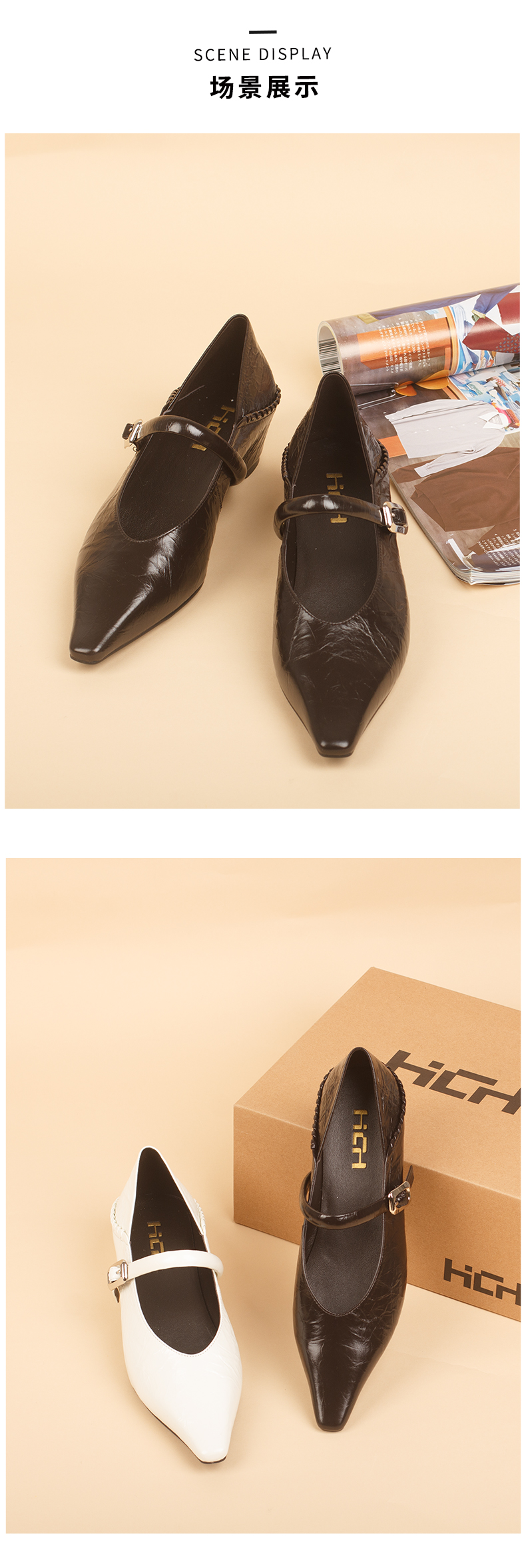 和诚行2026春季新款简约风尖头一字扣玛丽珍粗跟通勤百搭中跟单鞋1080167