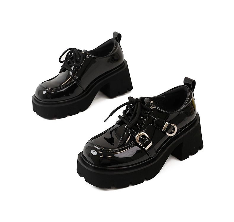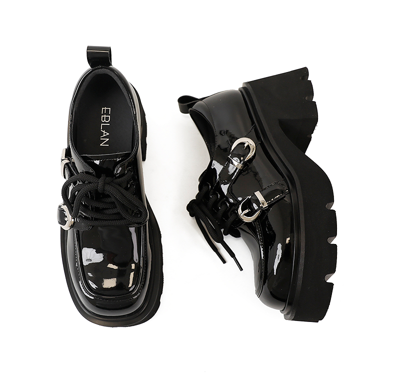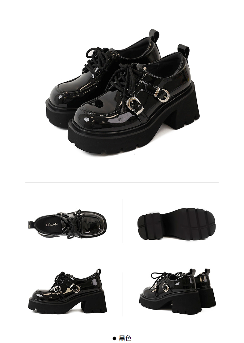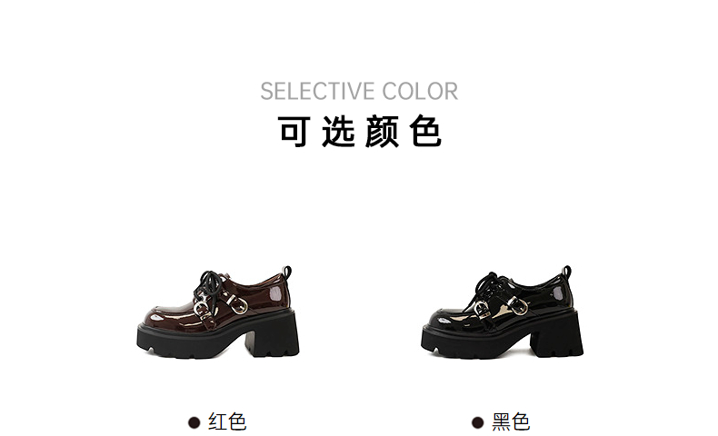 千百度通勤乐福鞋春季黑色小皮鞋中跟一脚蹬真皮正装单鞋A24132908