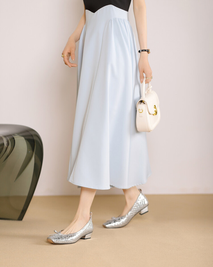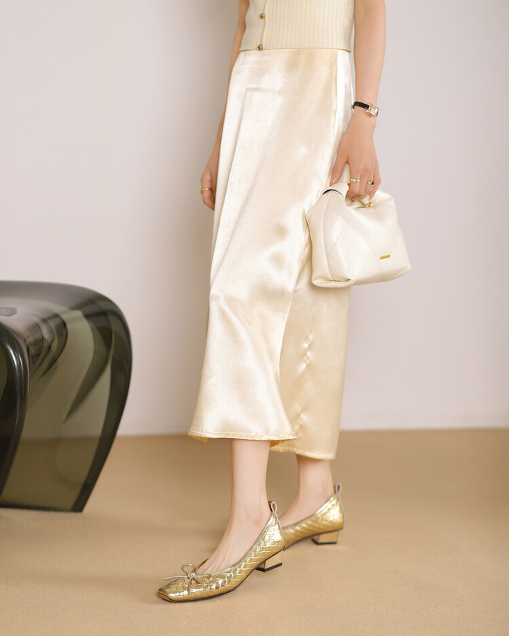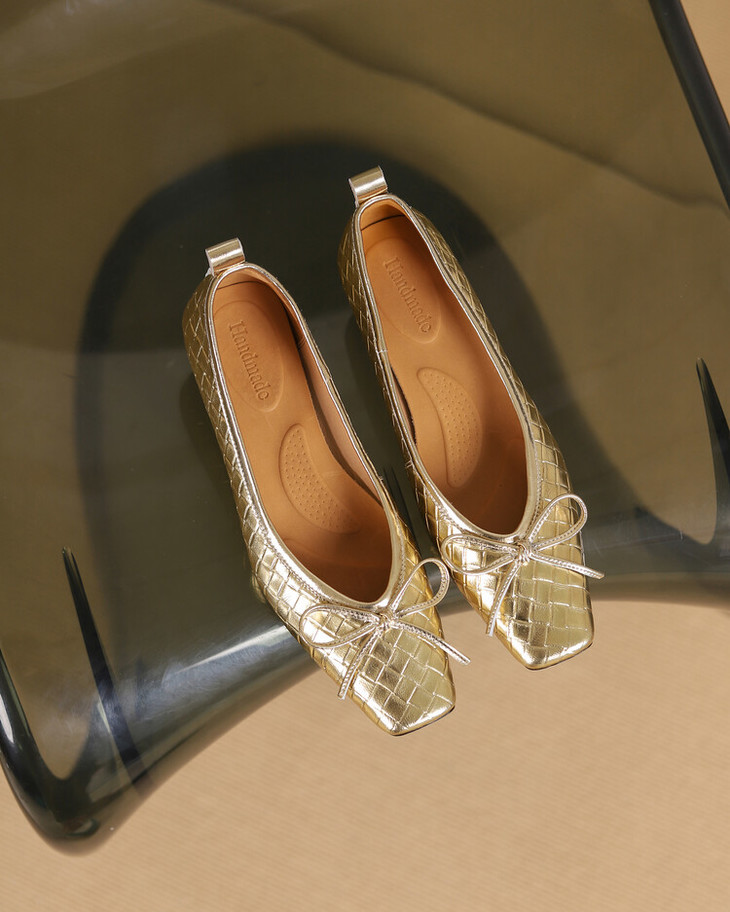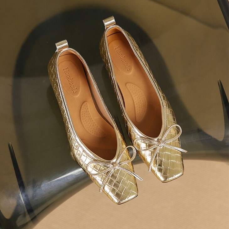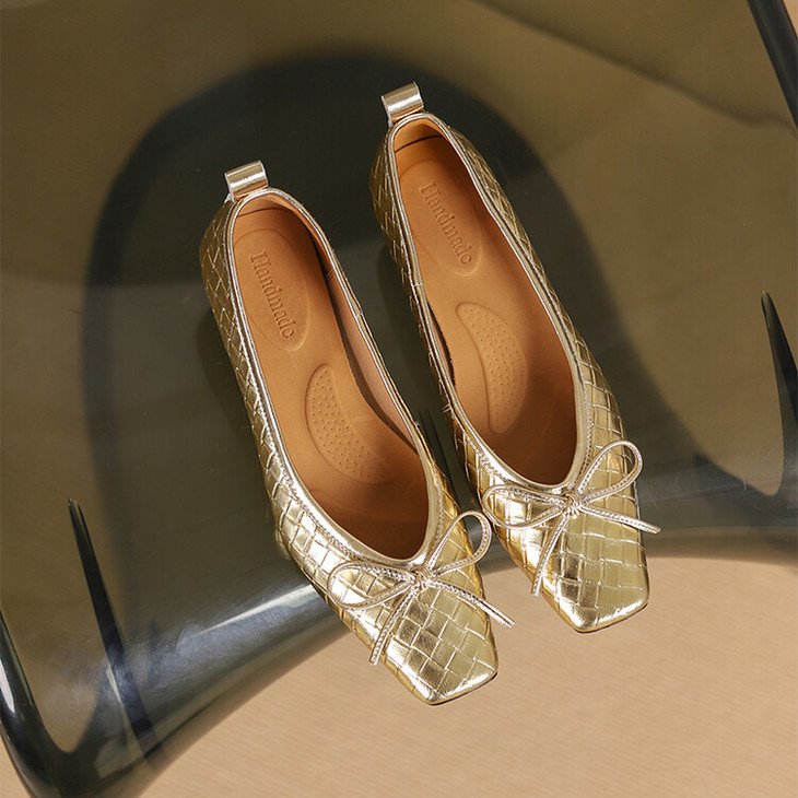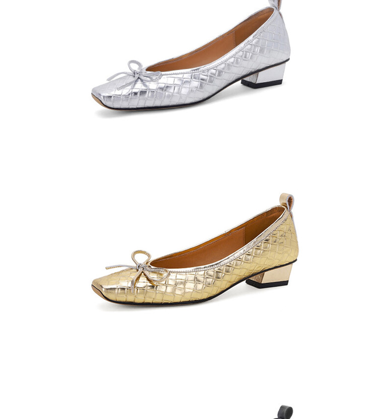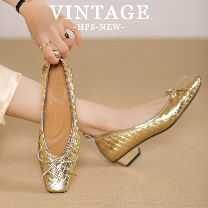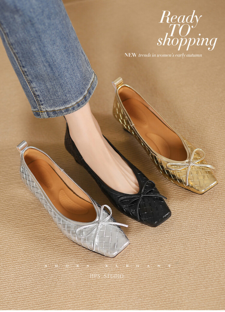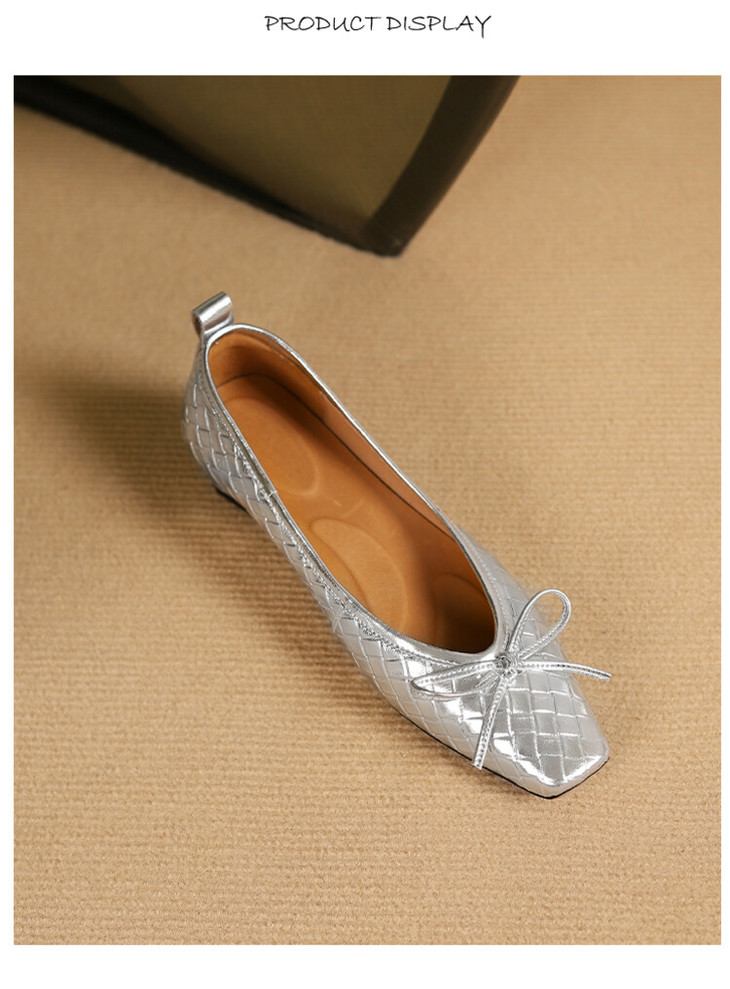 【预售5天】法式简约方头浅口编织纹羊皮低跟单鞋甜美蝴蝶结优雅舒适四季女鞋DTN&A1038-19