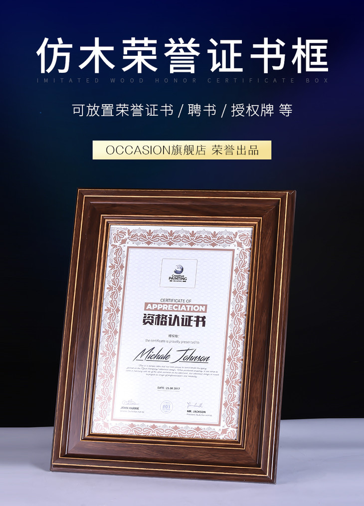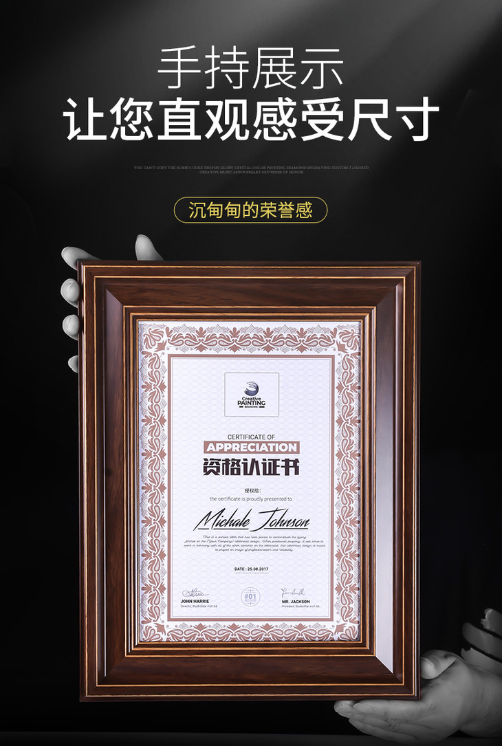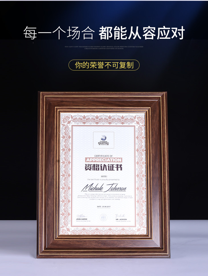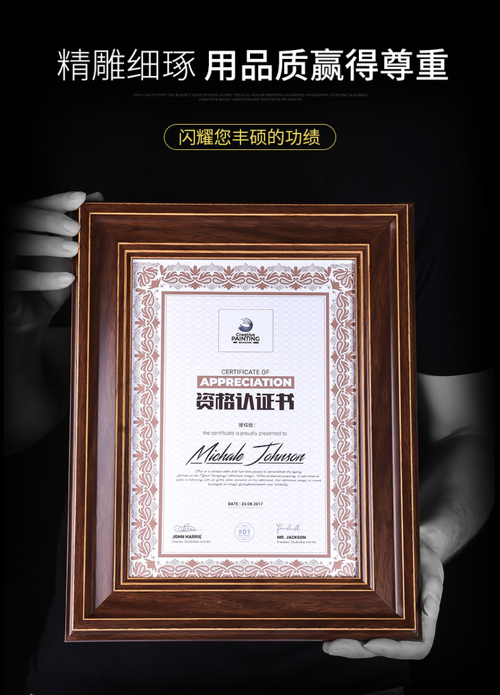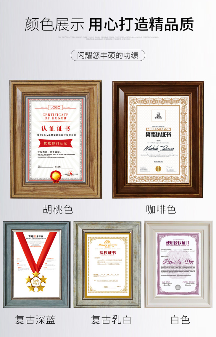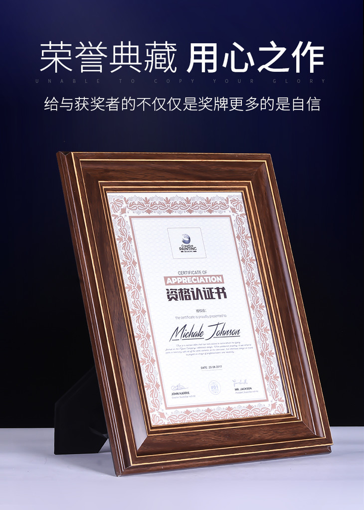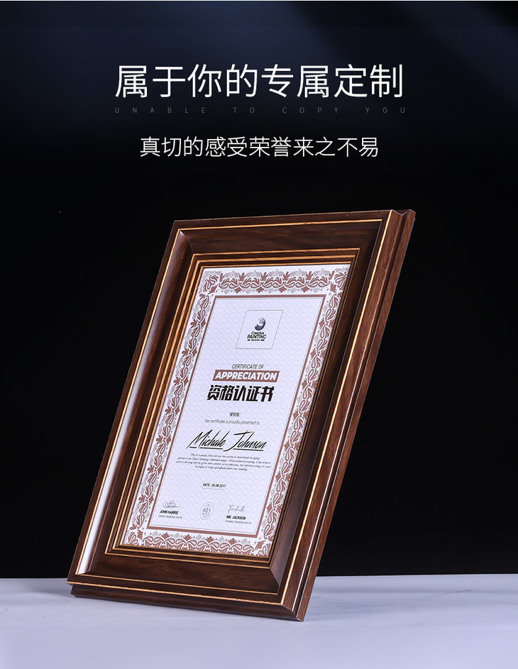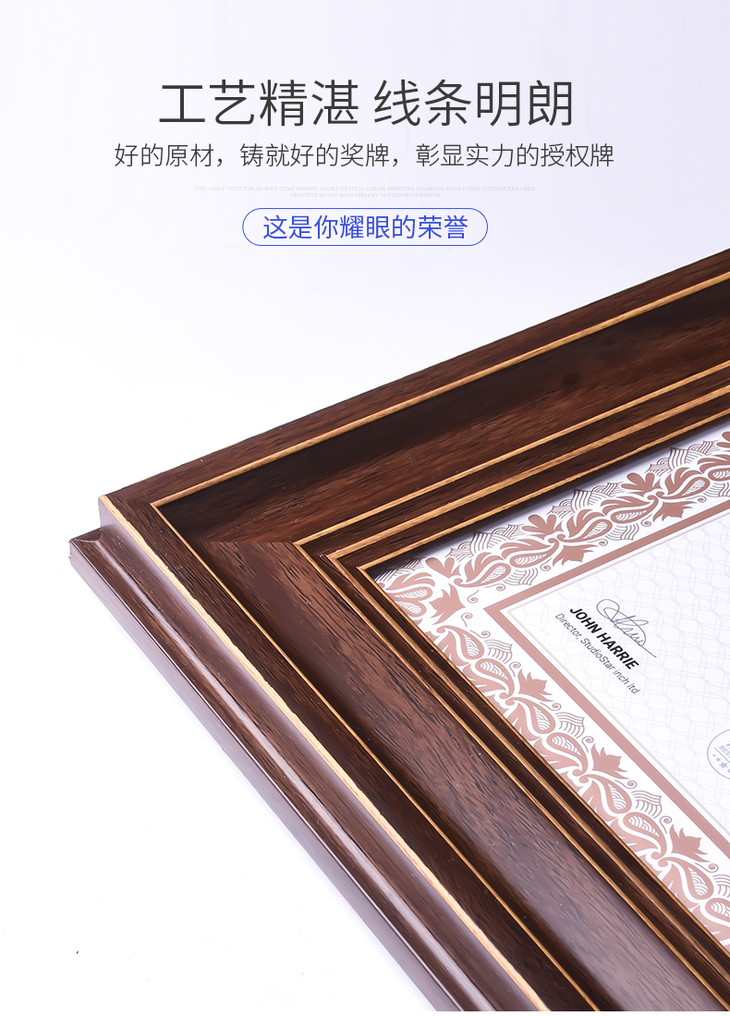 可换页仿木木框奖牌定制定做代理加盟经销商荣誉证书授权牌制作