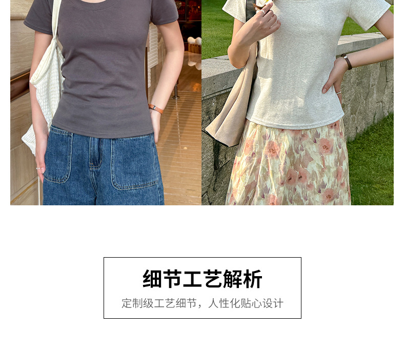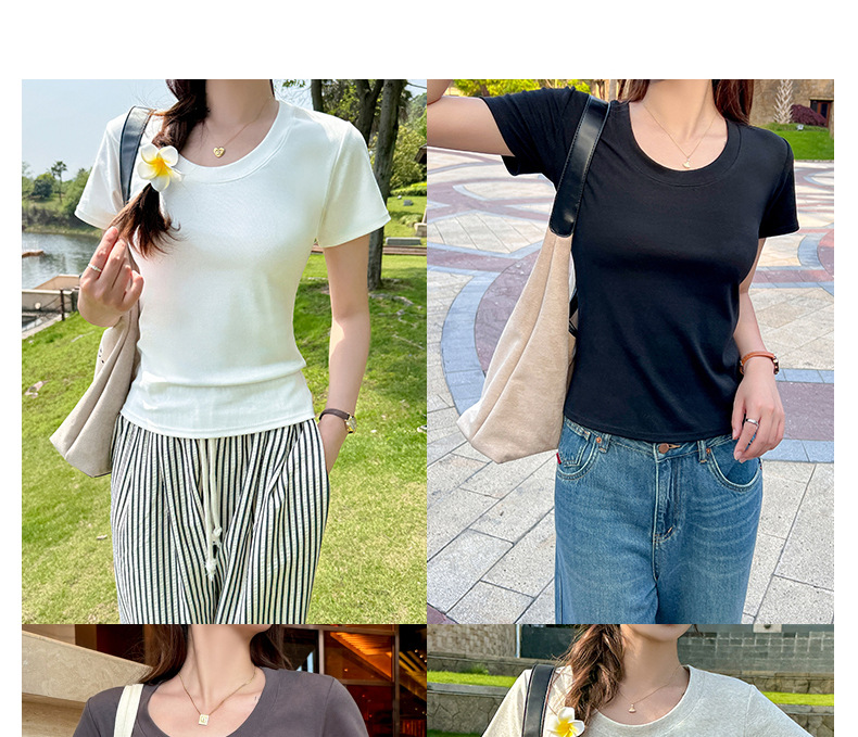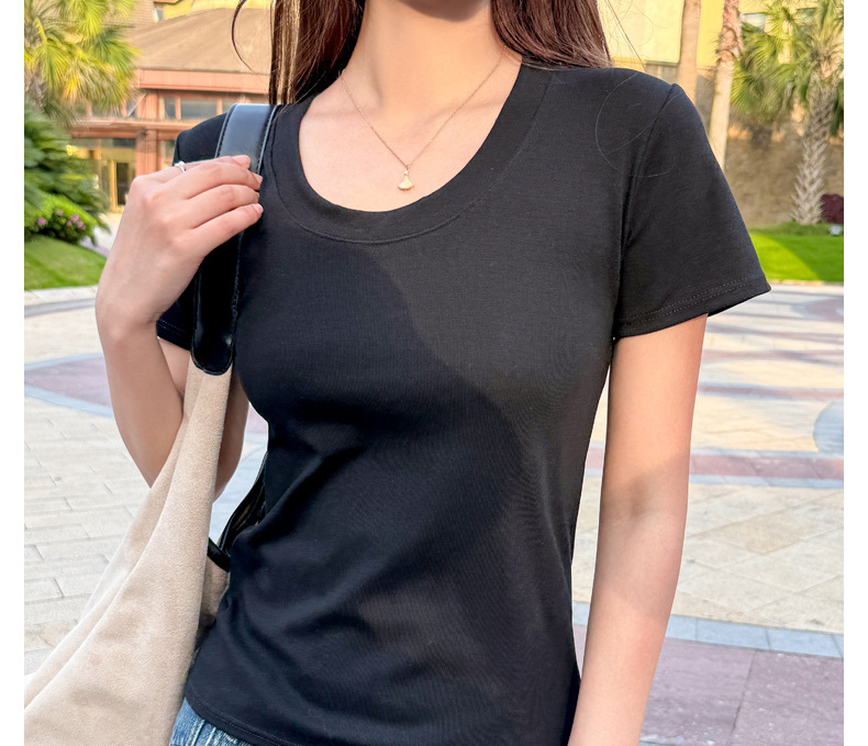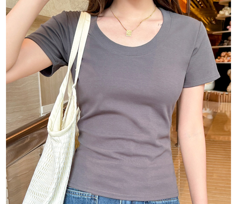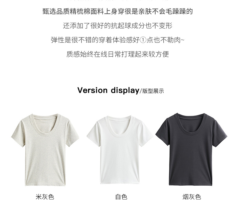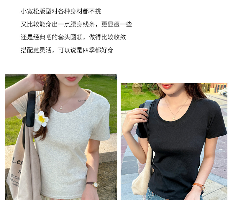 【纯棉大圆领正肩短袖】体t恤女装 春夏季简约百搭 T恤修身打底衫上衣