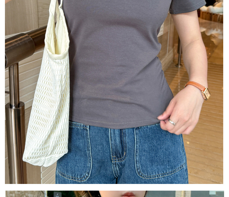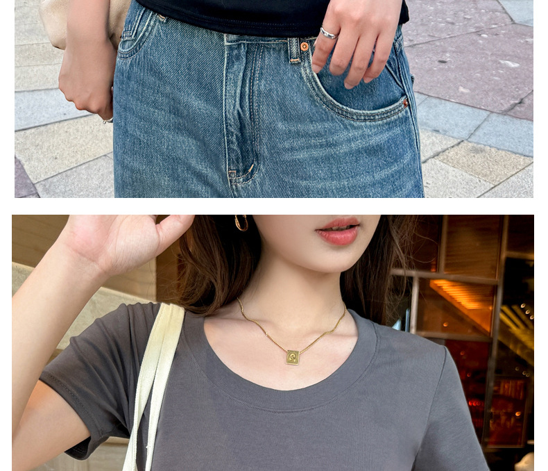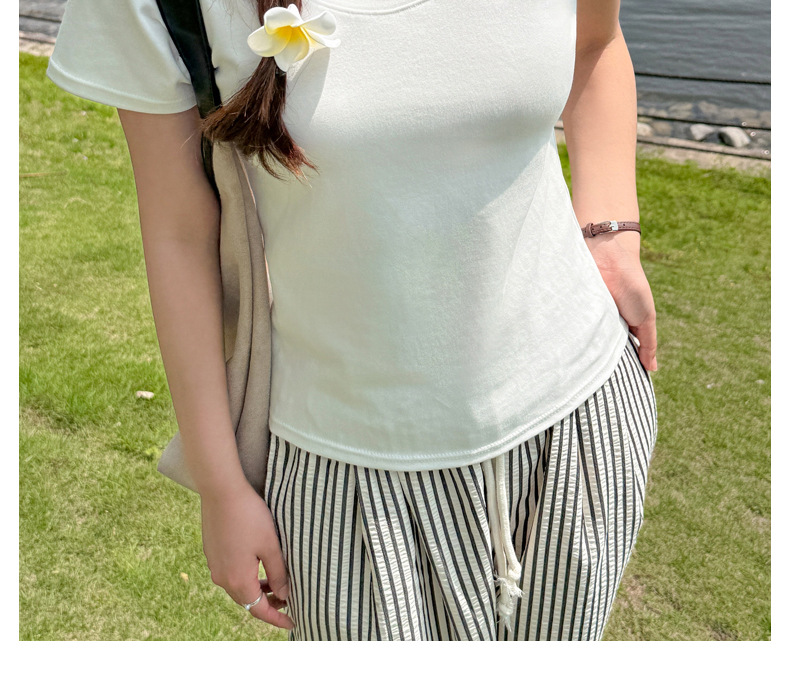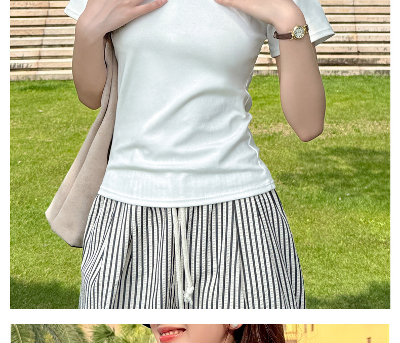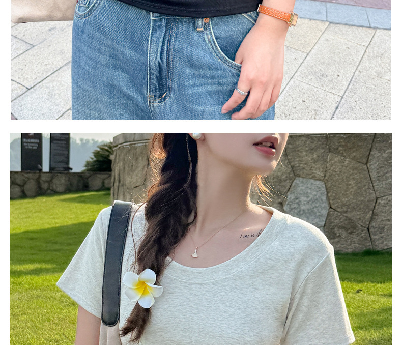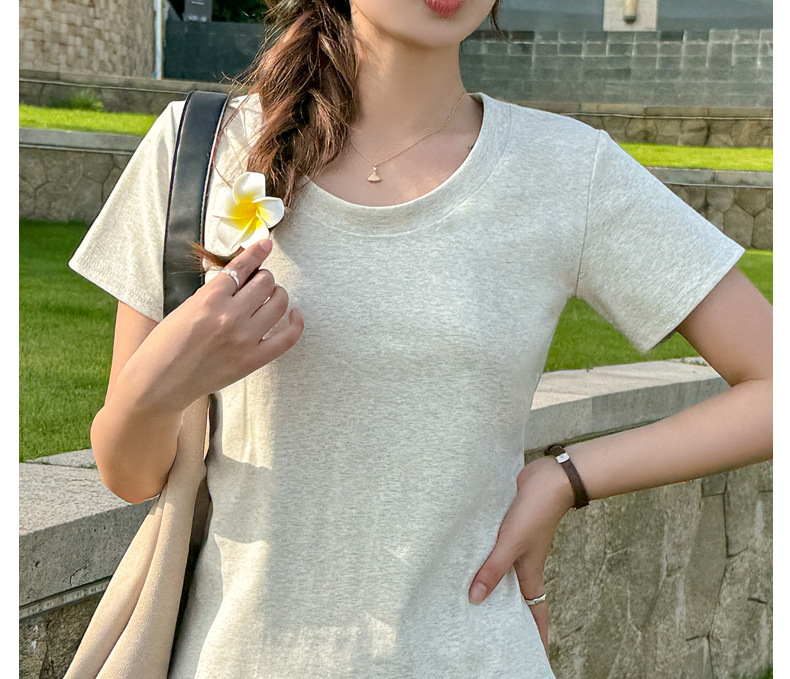 【纯棉大圆领正肩短袖】体t恤女装 春夏季简约百搭 T恤修身打底衫上衣