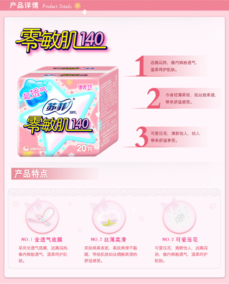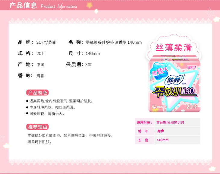 苏菲零敏肌140mm丝薄柔滑护垫(清香)20片