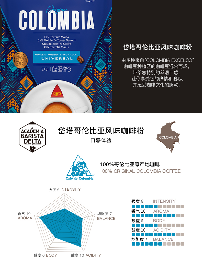 DELTA/岱塔 黄金岱塔 原装进口精选阿拉比卡咖啡豆 中深烘培500g