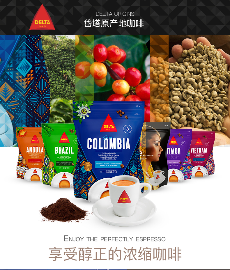 DELTA/岱塔 葡萄牙进口 原产地系列现磨咖啡粉220g 现磨手冲