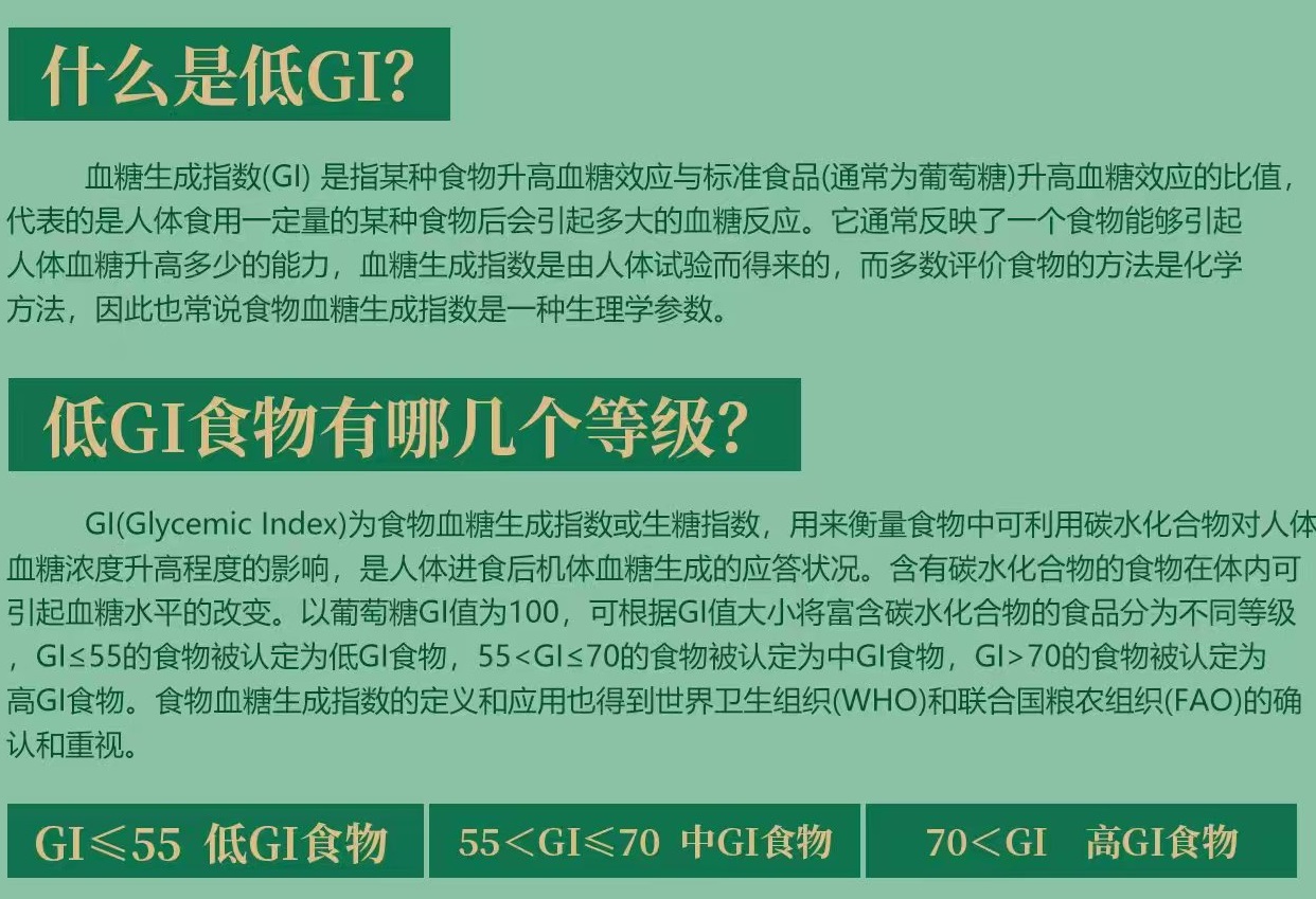 什么是低GI:为控血糖、血压、控体重专门研发的食物。