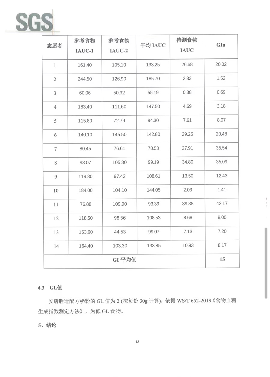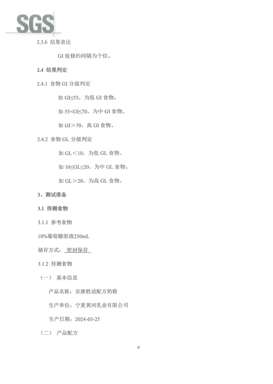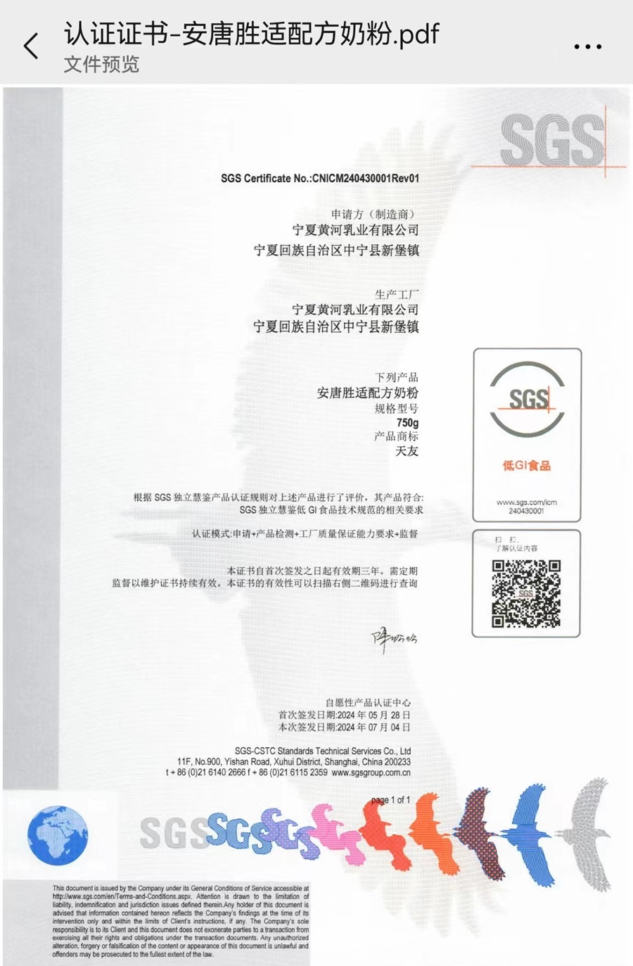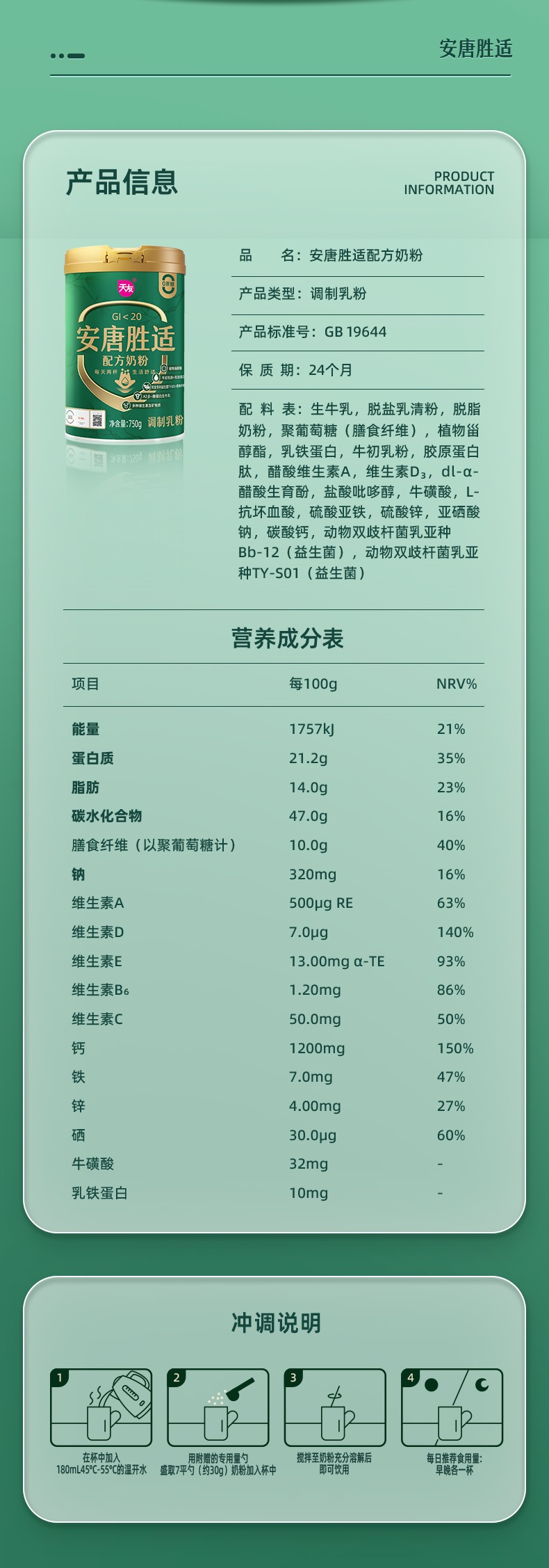 天友安唐胜适低GI配方奶粉比国家低GI要求高出1.5倍(国家要求小于等于55,天友小于等于20)