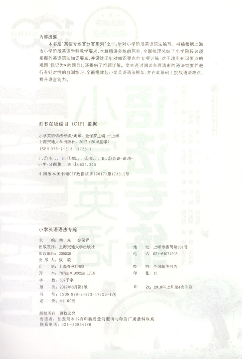 正版现货 小学英语专练百分百 小学英语语法专练 上海交通大学出版社 牛津上海版小学英语语法辅导书 小学生学习英语语法的入门书