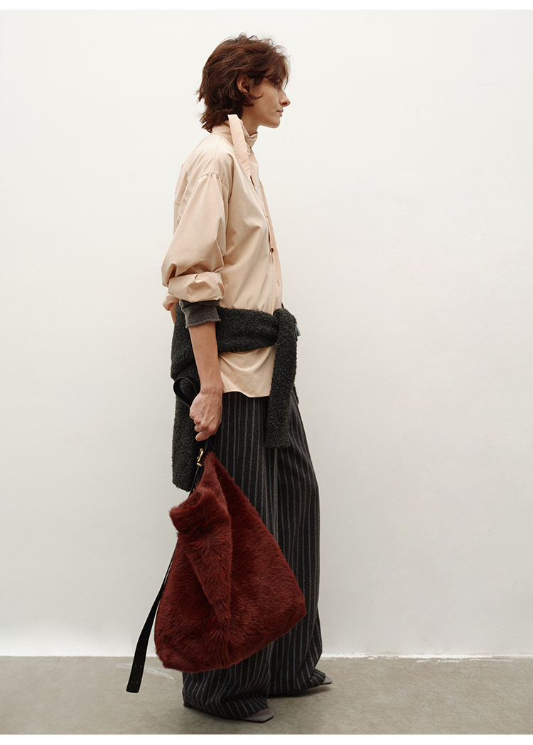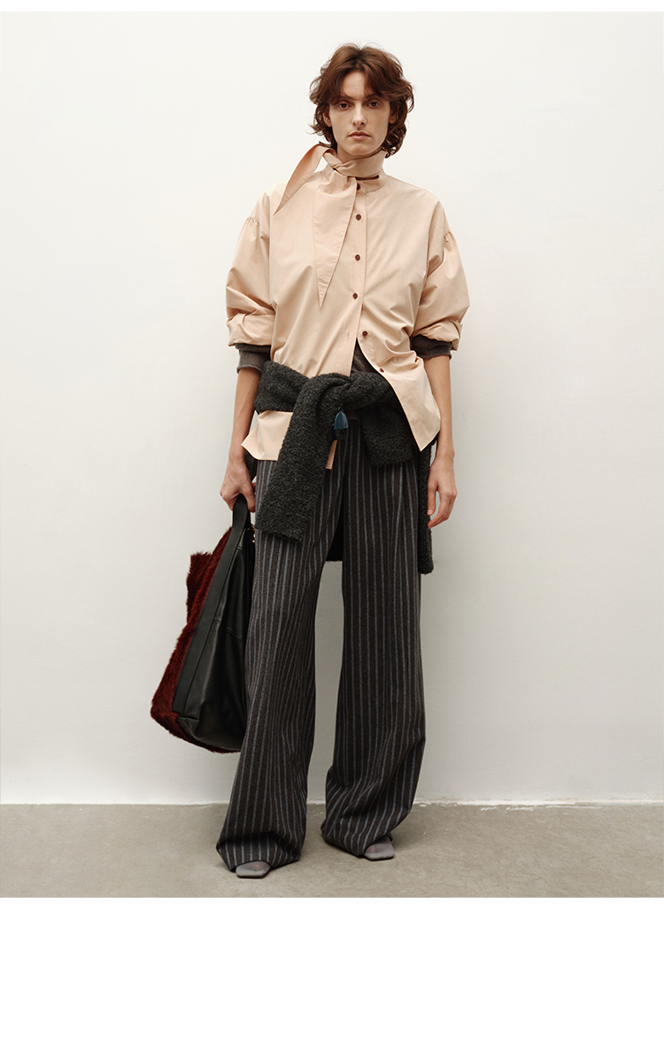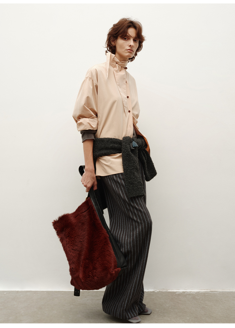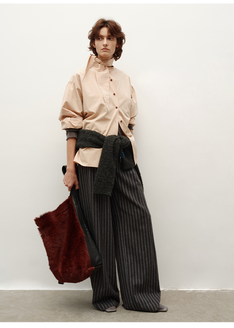 HIDEMI 进口粘胶极简设计感长剪刀领系带廓形宽松感肉桂裸粉色衬衫