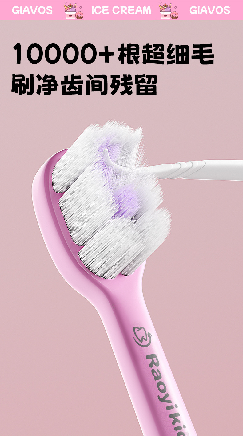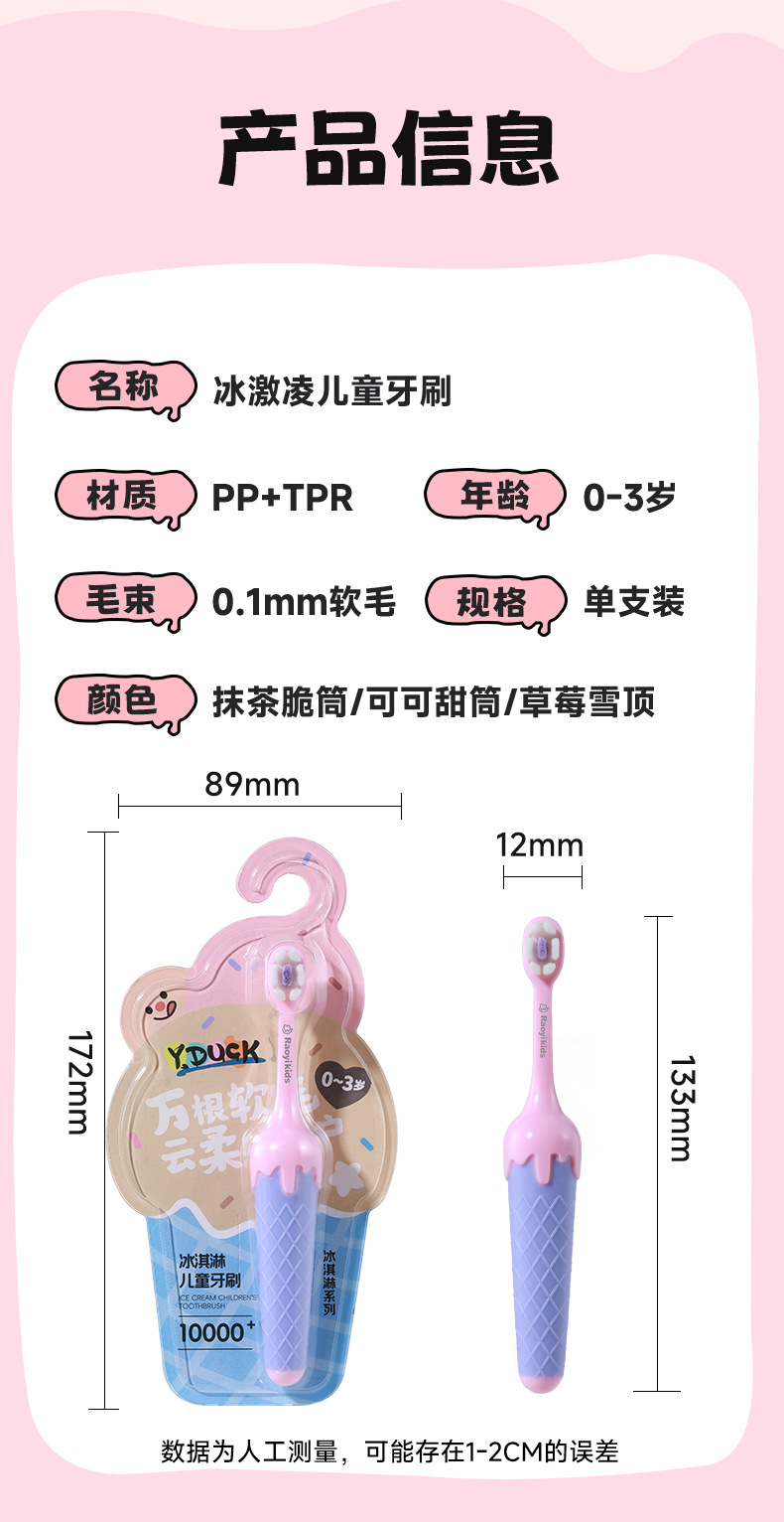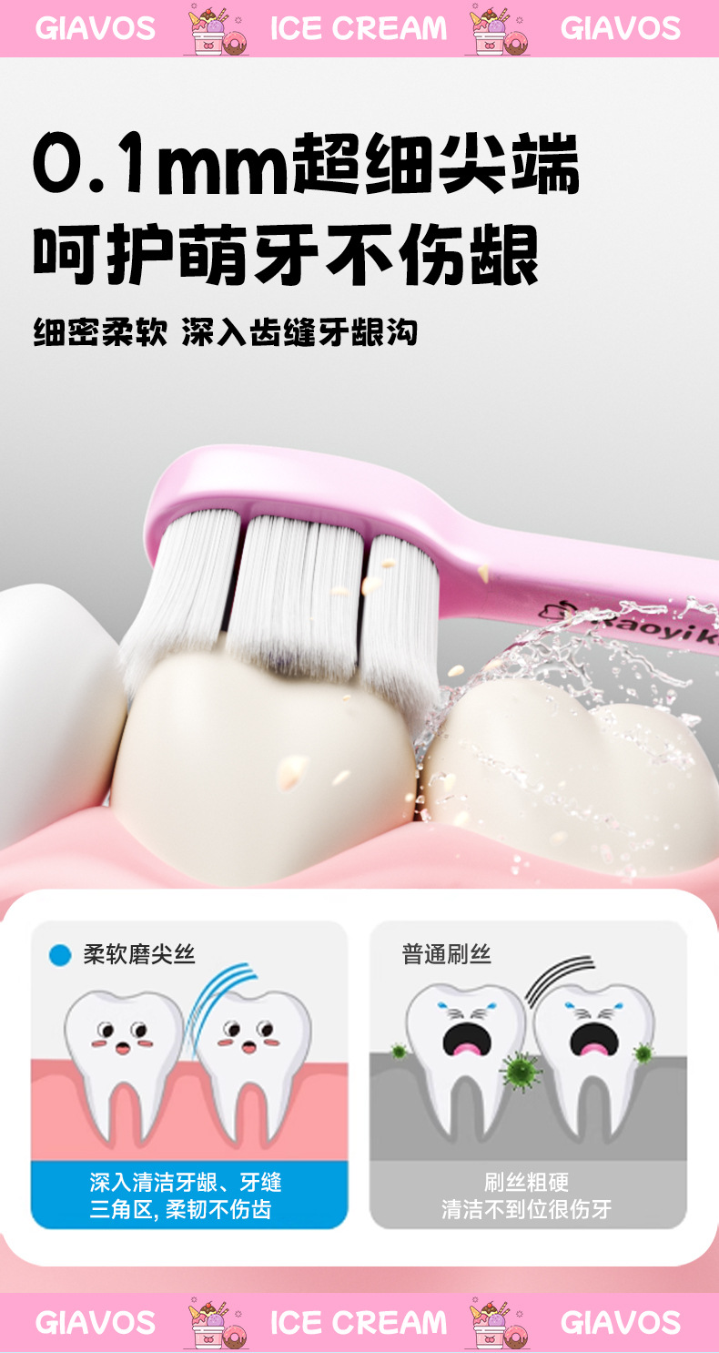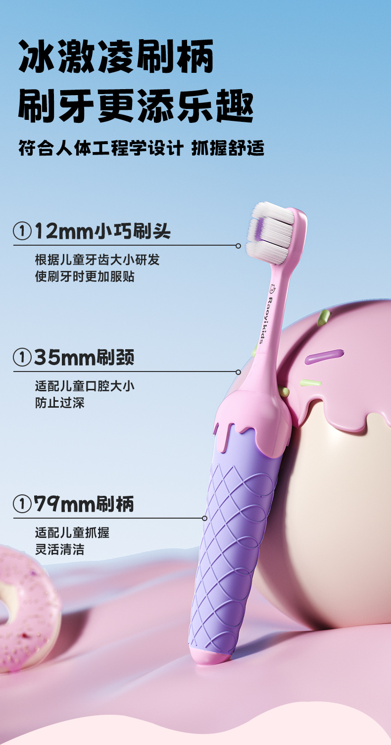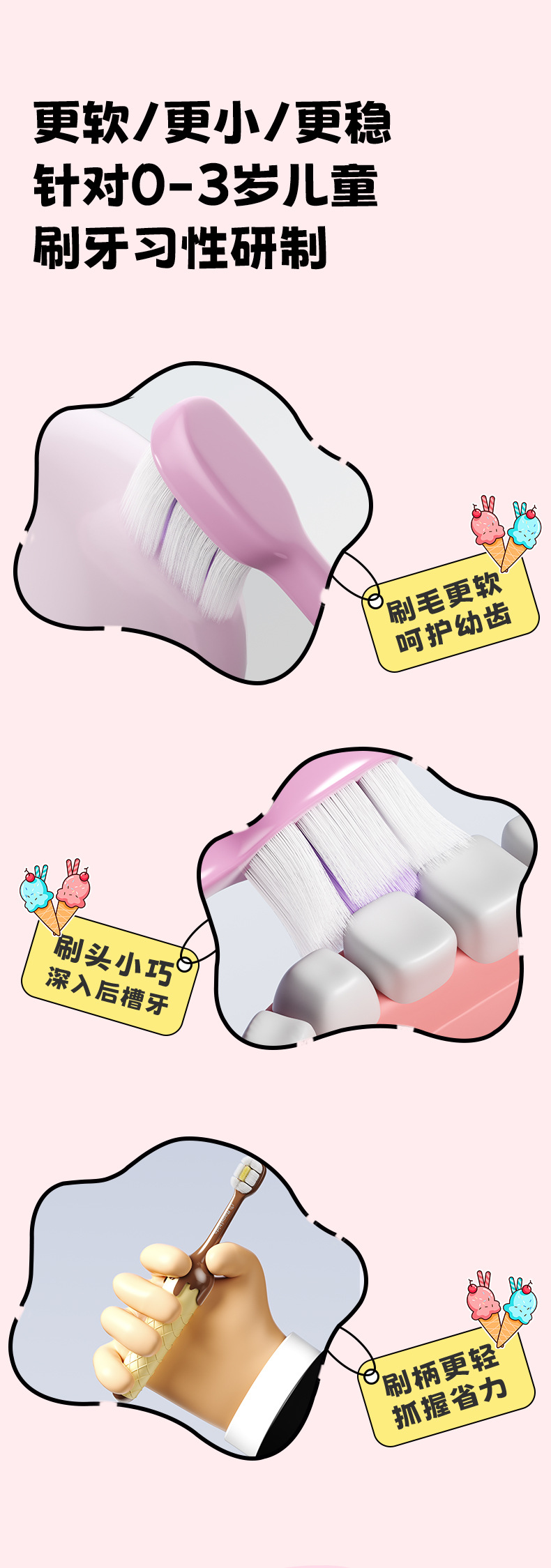 春节不打烊【云柔万毛❗️宝宝精选】冰淇淋儿童云柔万毛牙刷单支装可爱家用高级软毛牙刷。jd