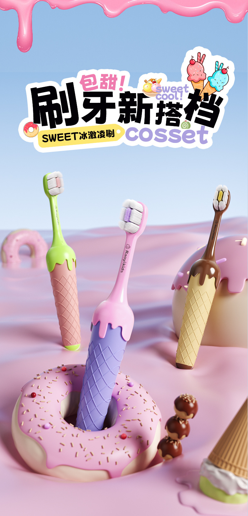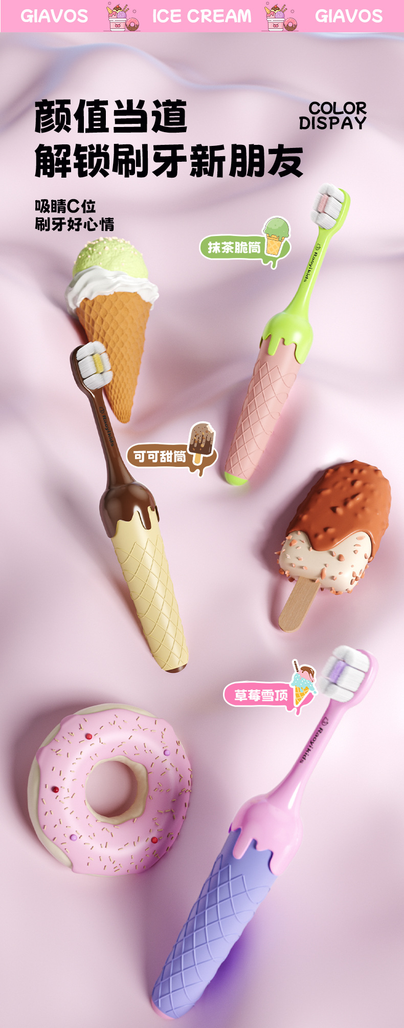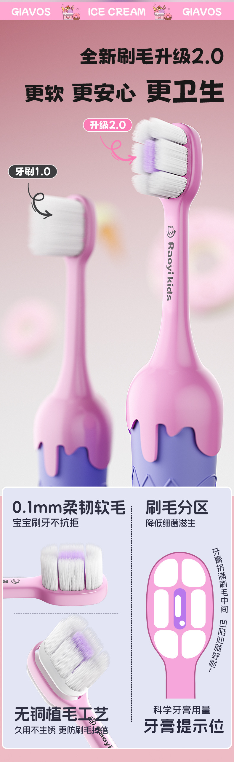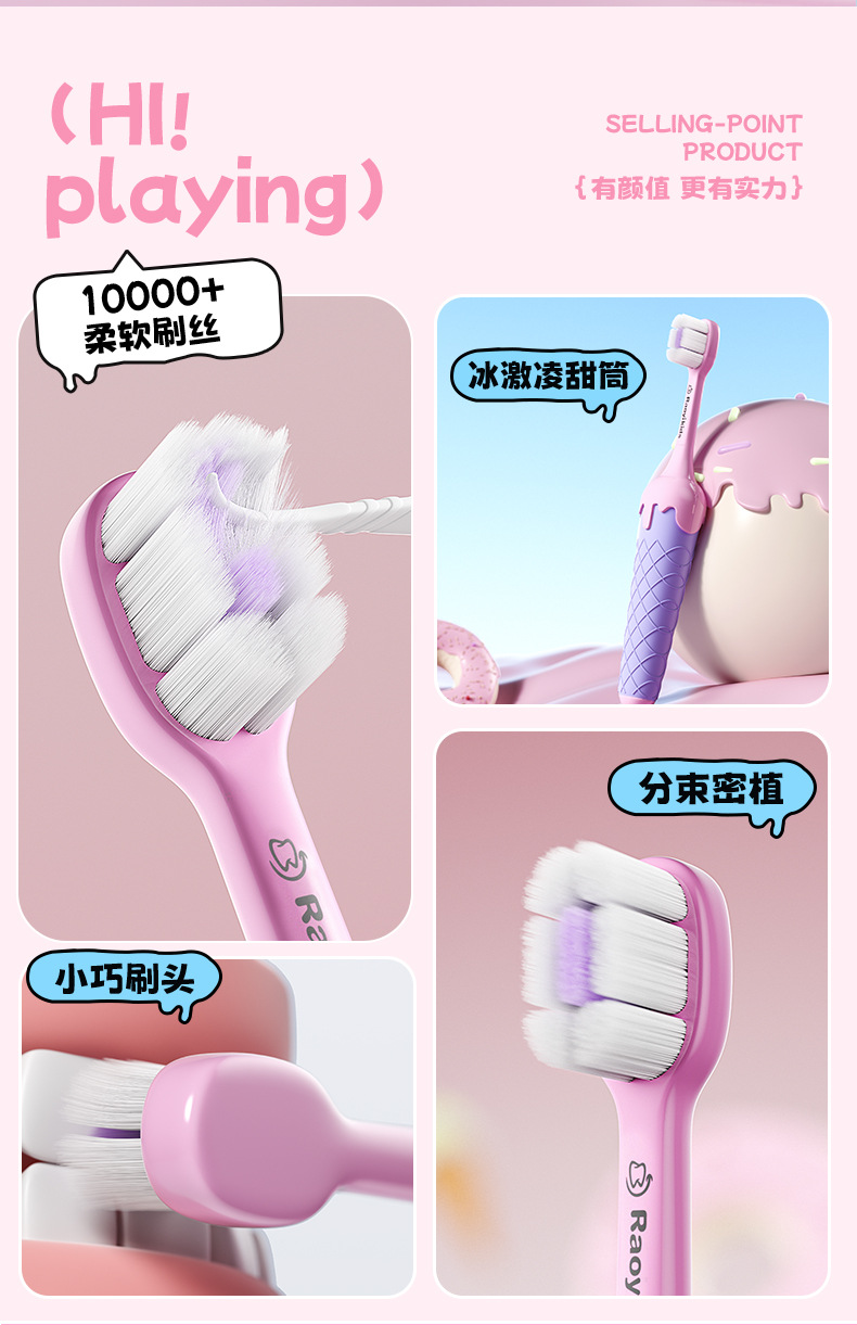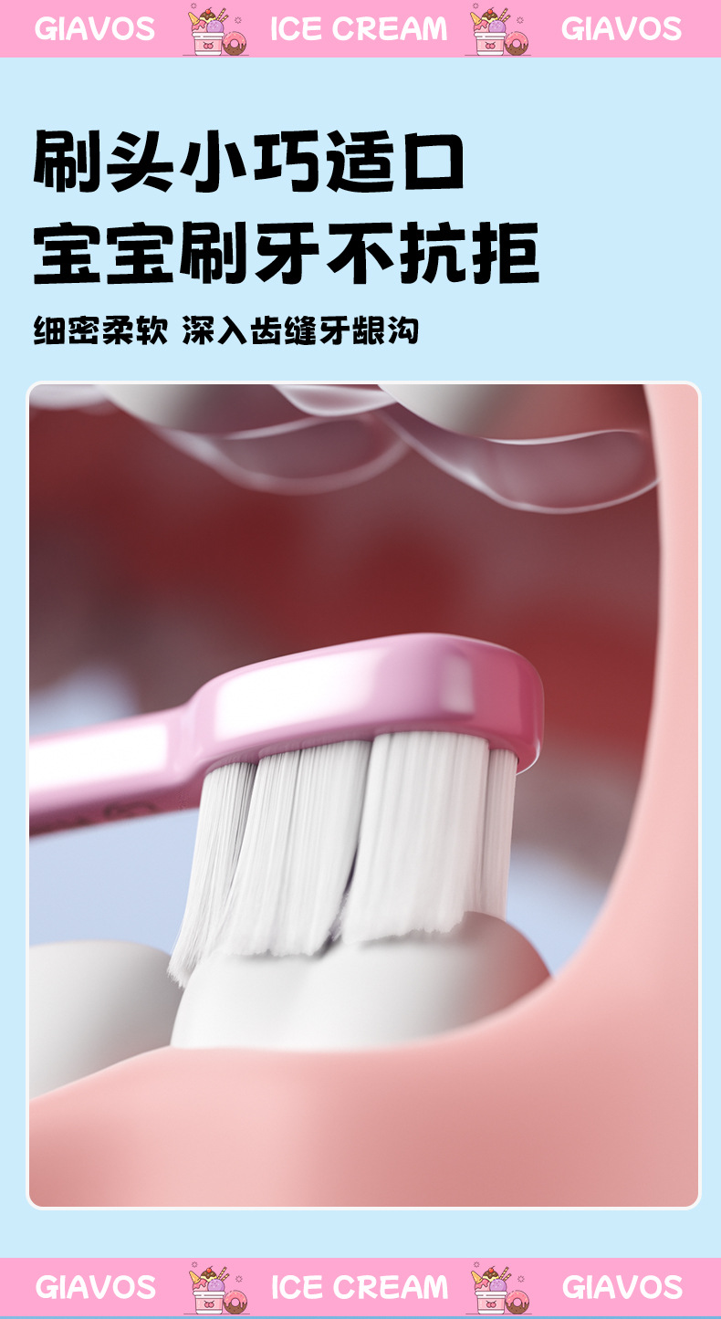 春节不打烊【云柔万毛❗️宝宝精选】冰淇淋儿童云柔万毛牙刷单支装可爱家用高级软毛牙刷。jd