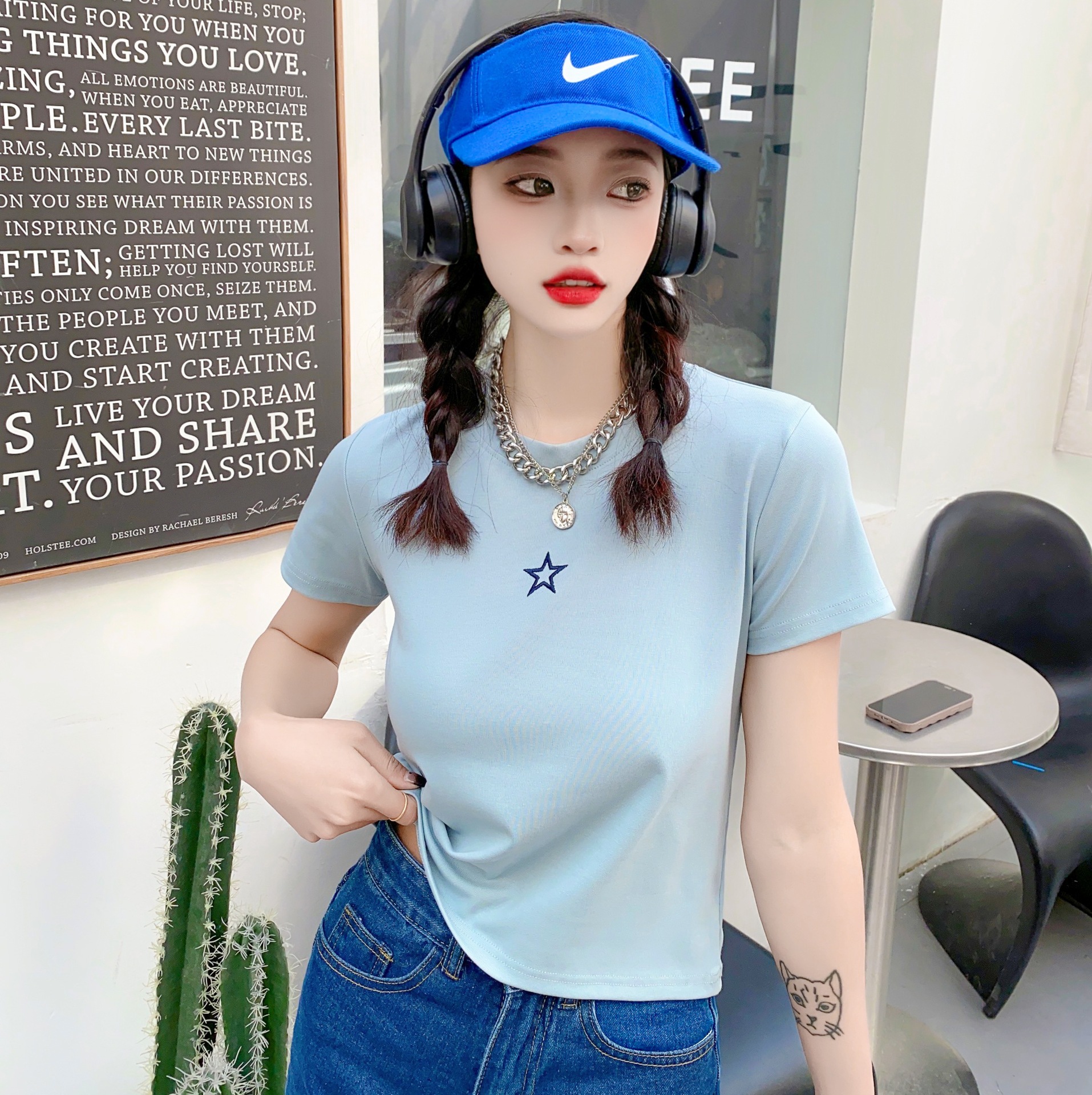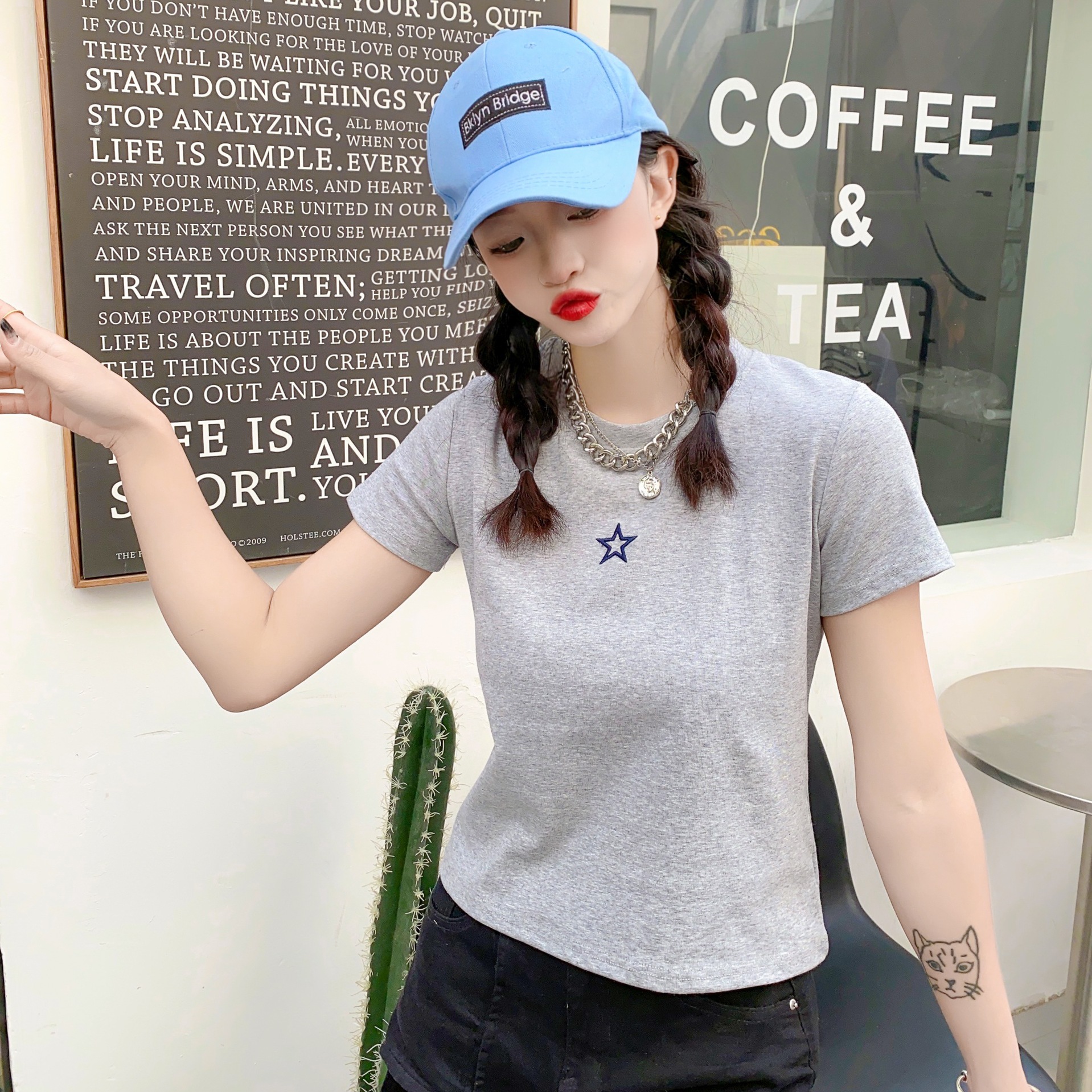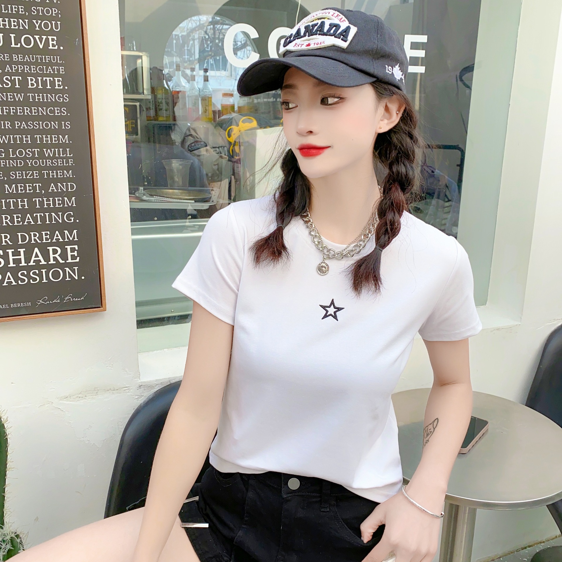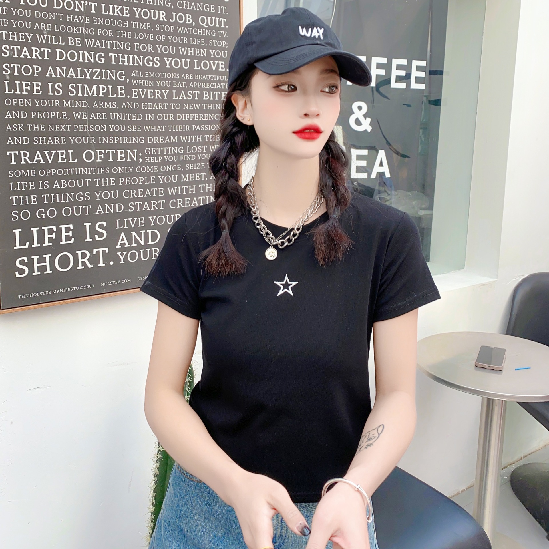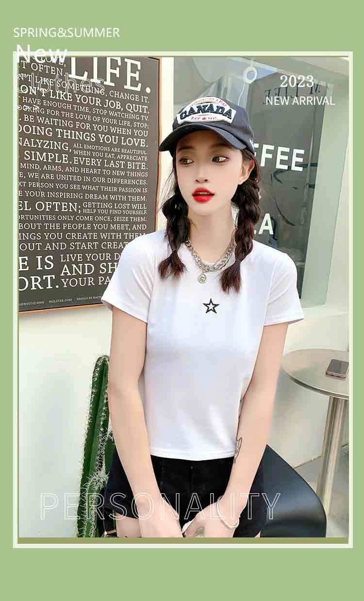 2023女装新款美式复古短袖女t恤3.6版