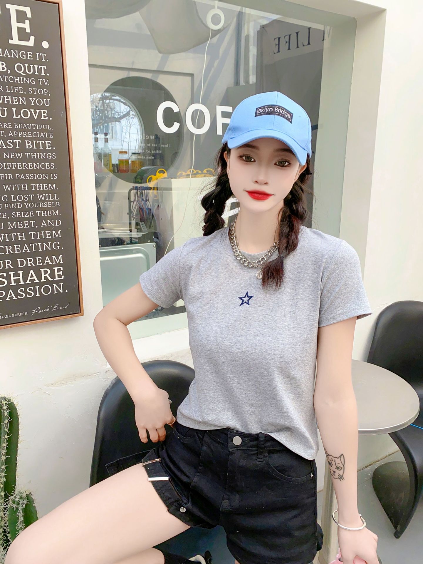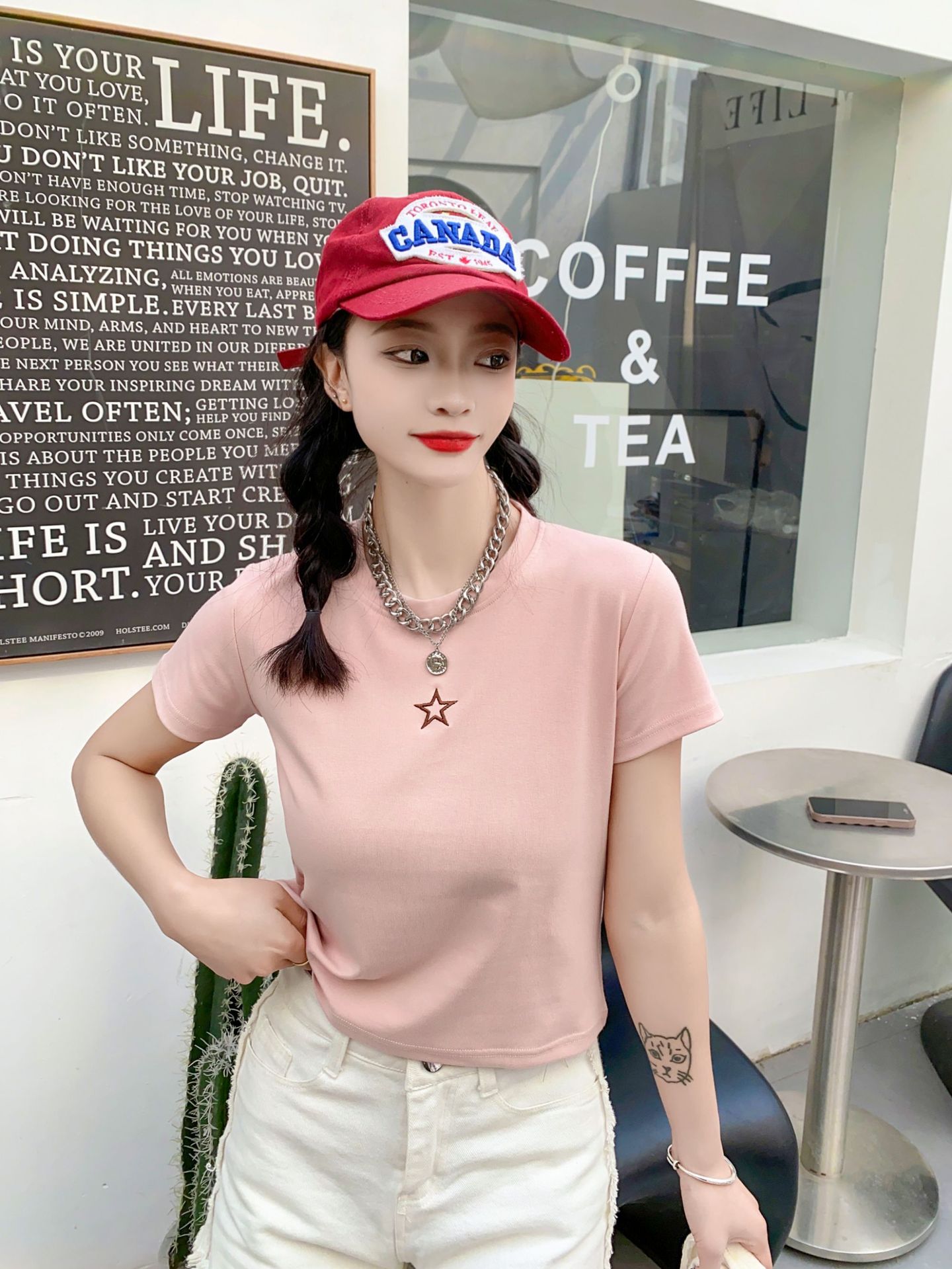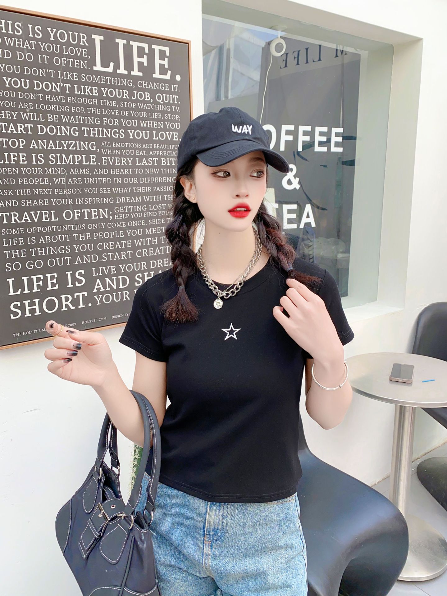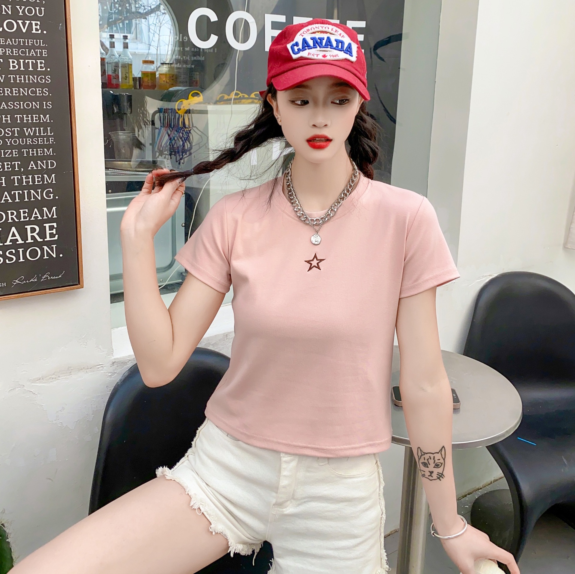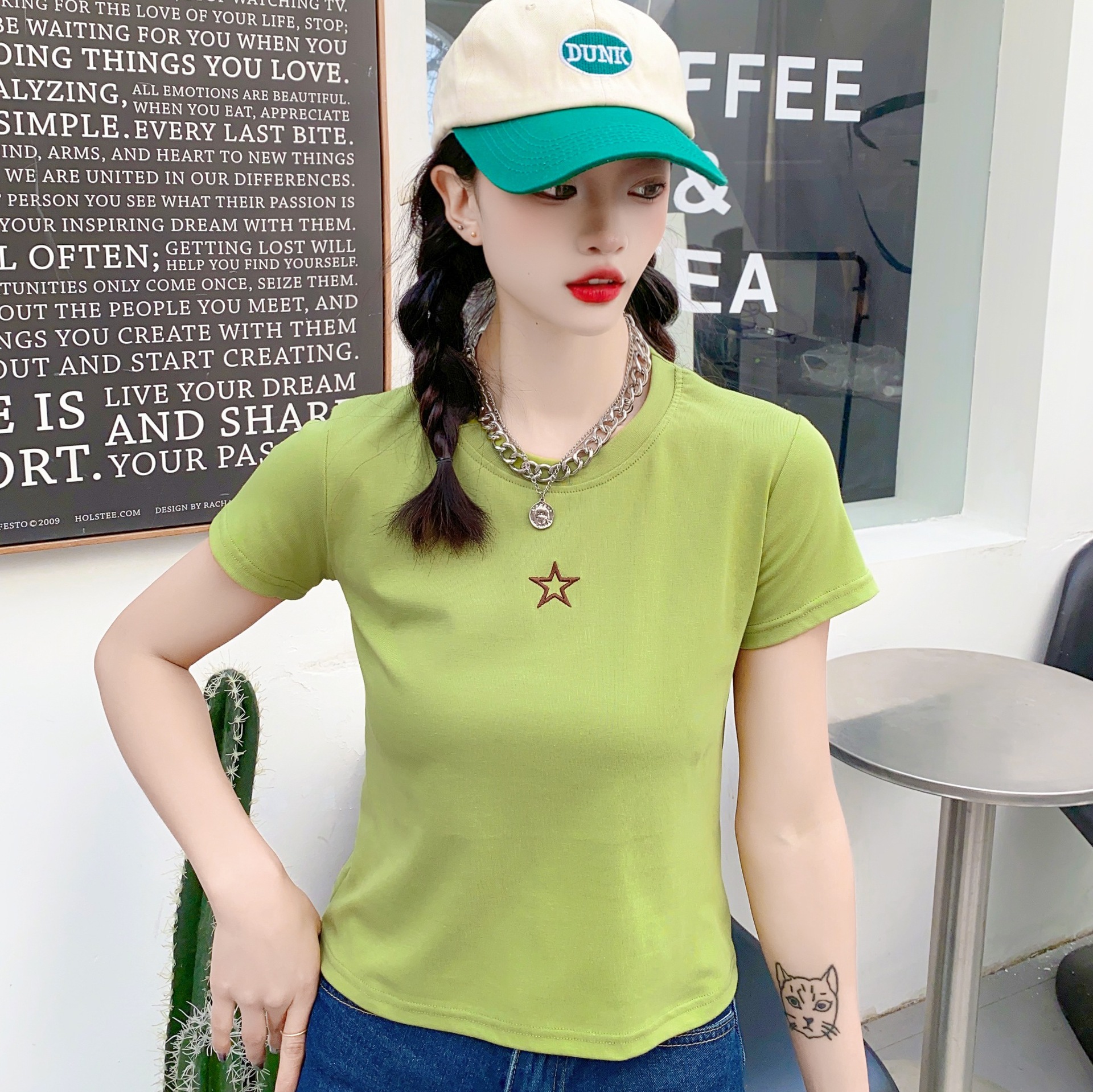 2023女装新款美式复古短袖女t恤3.6版