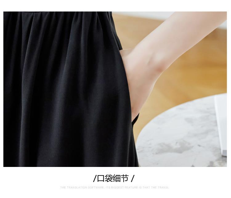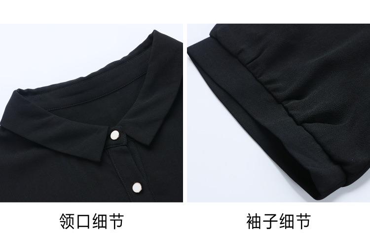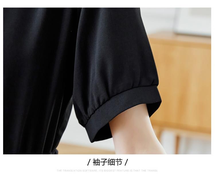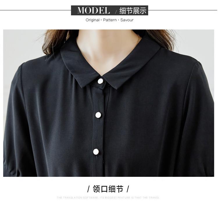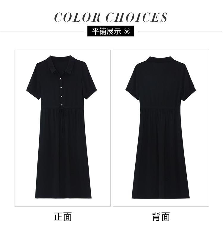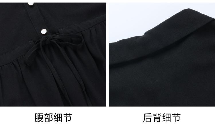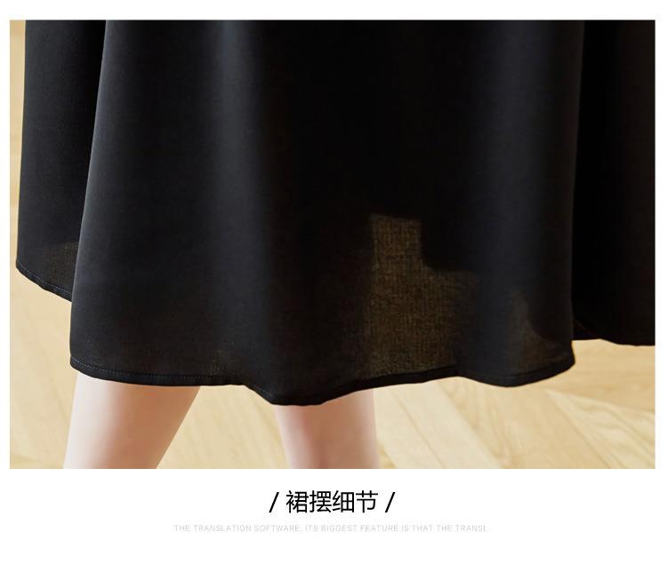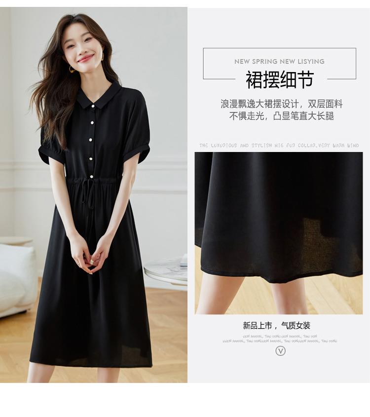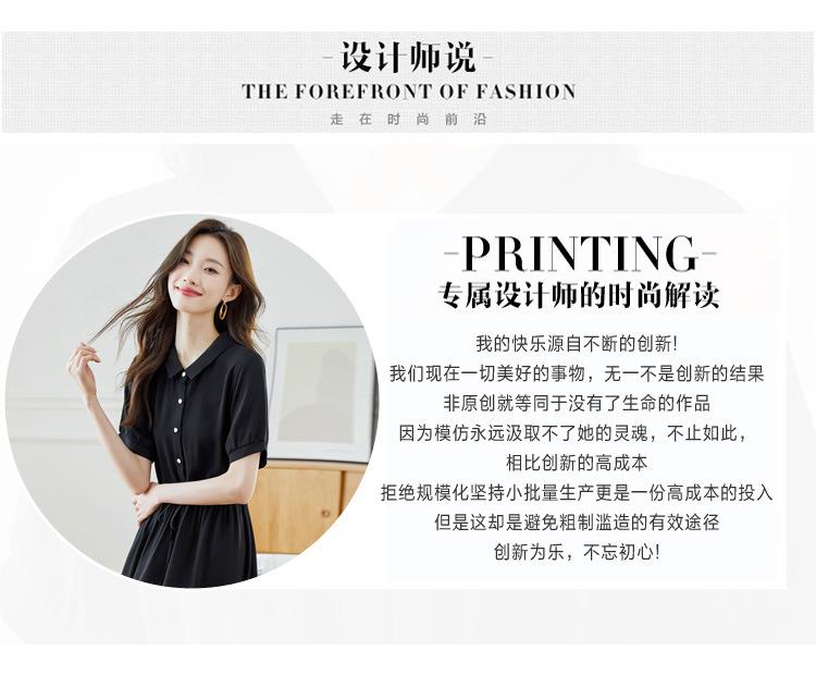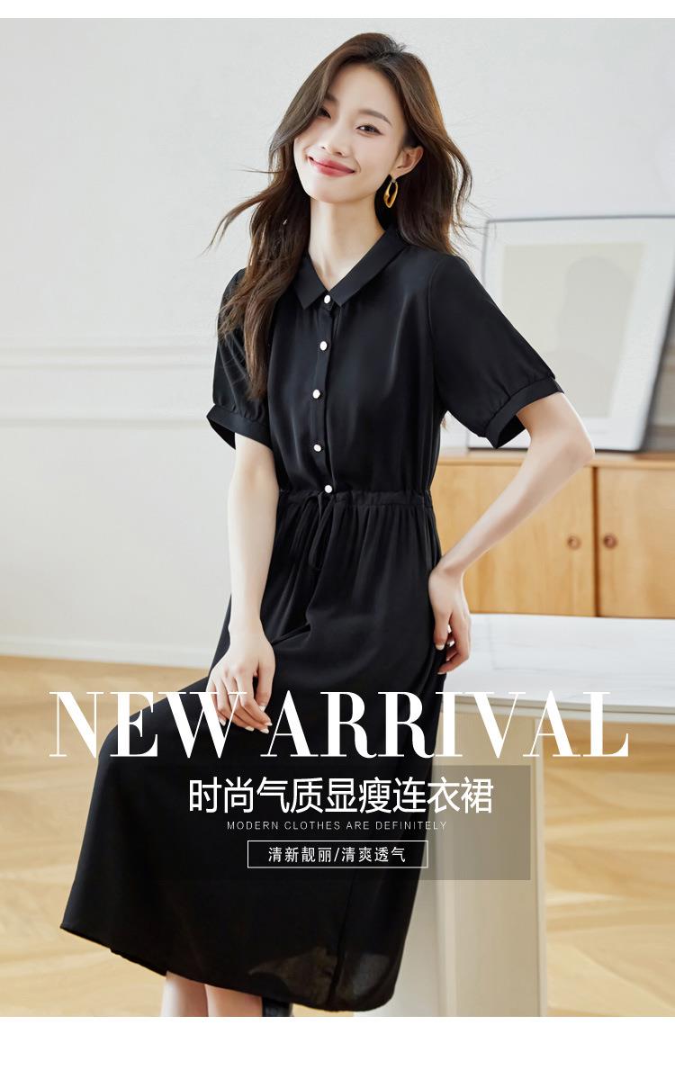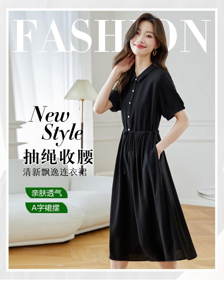 法式衬衫连衣裙女短袖2024夏新款赫本风黑色收腰显瘦气质雪纺长裙