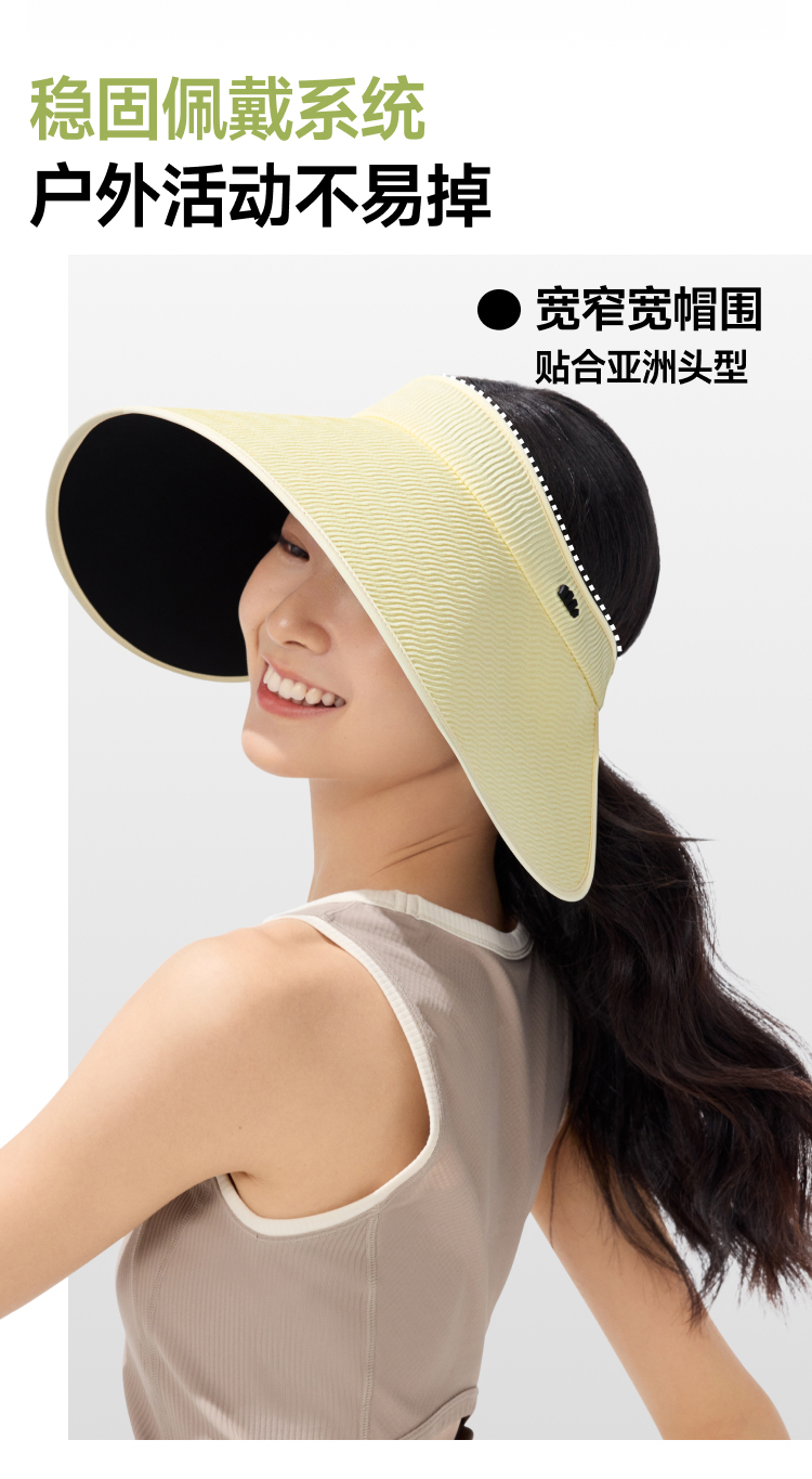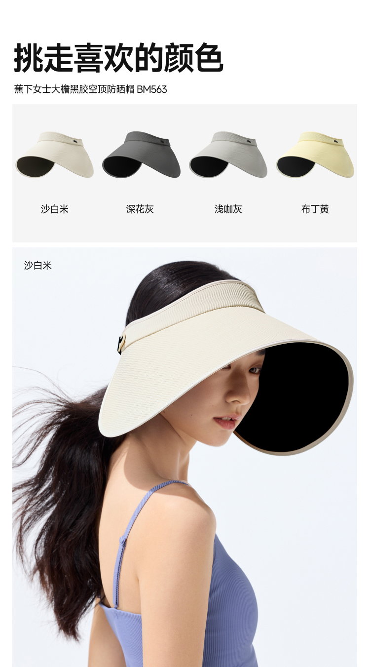 防晒帽!【蕉下女士空顶防晒帽】25SS-蕉下女士大檐黑胶空顶防晒帽BM563 0320