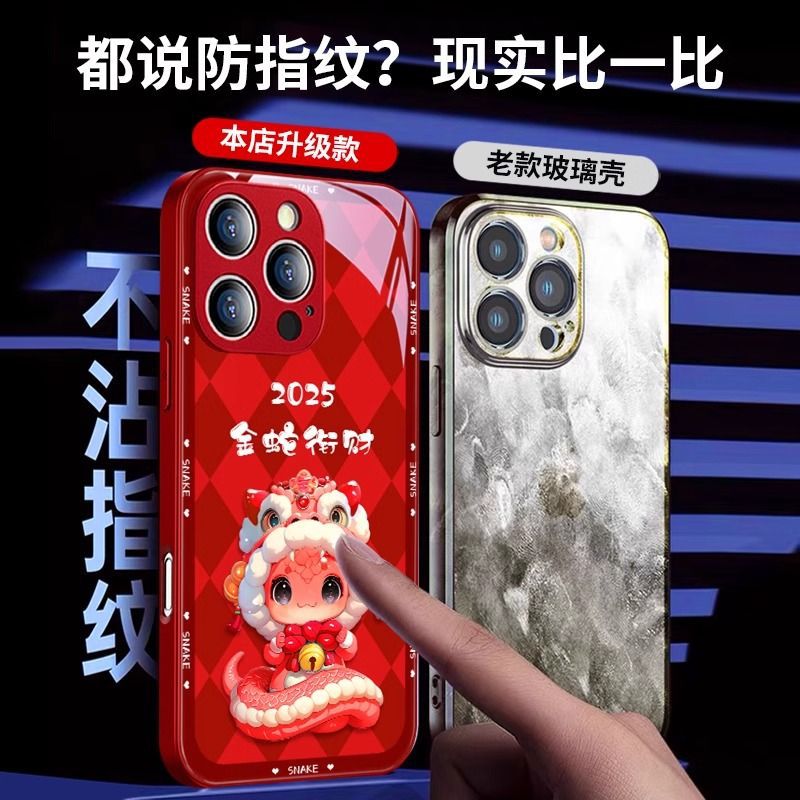 【新年快乐!蛇年限定款 苹果安卓手机壳】苹果16promax手机壳菱格暴富蛇iPhone16本命年15/14/13液态玻璃手机壳XS,全包镜头 磨砂软边。ry